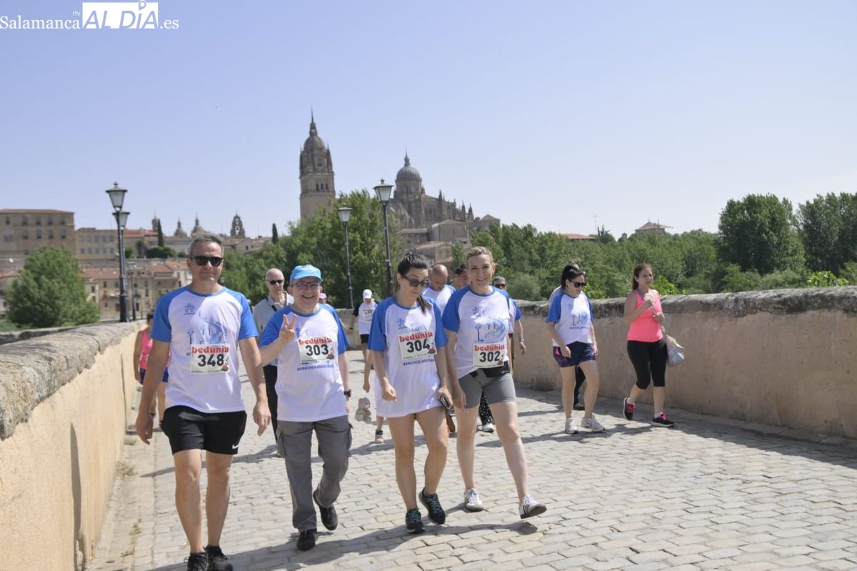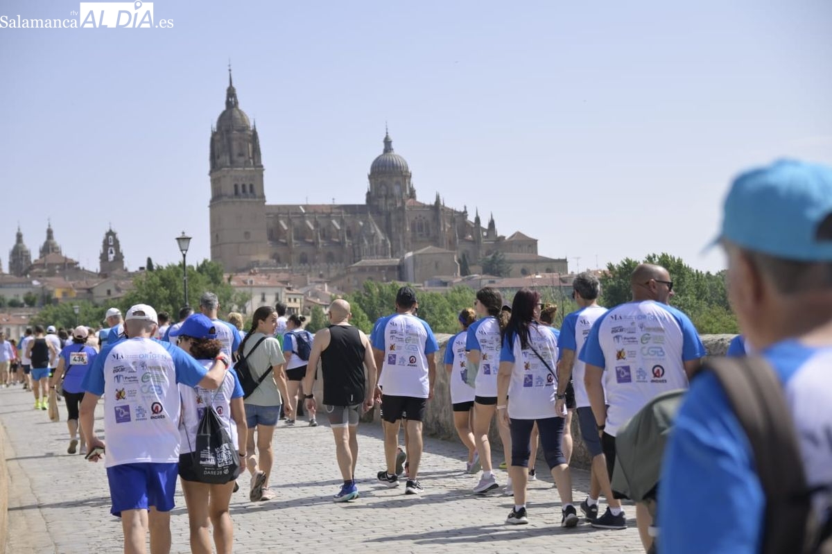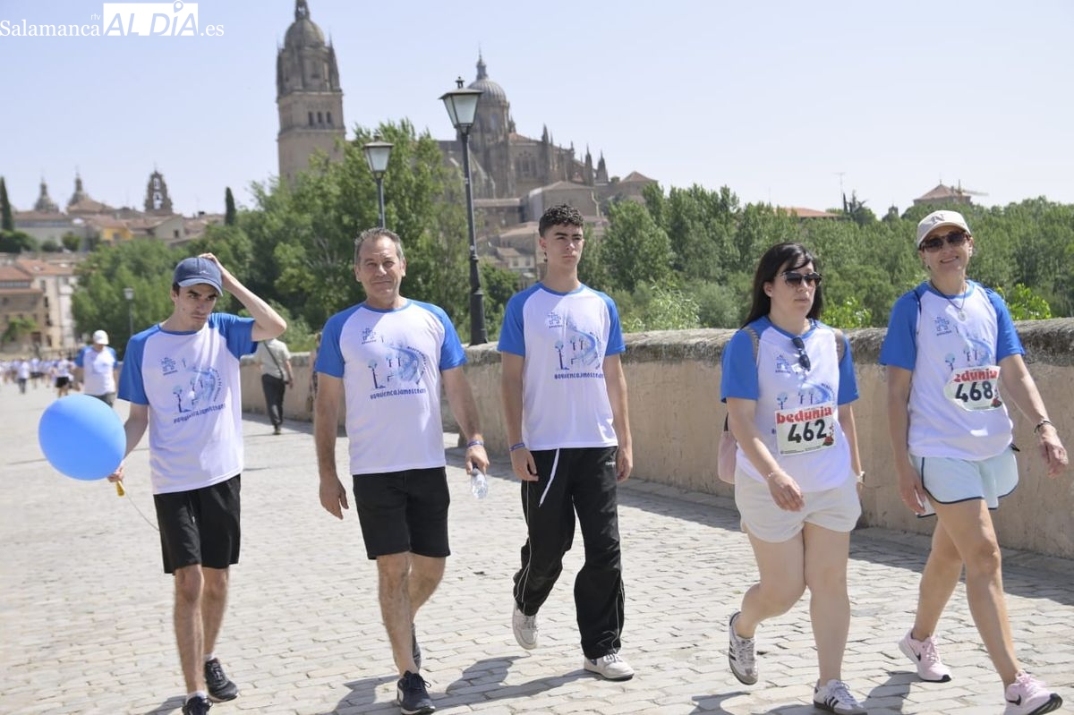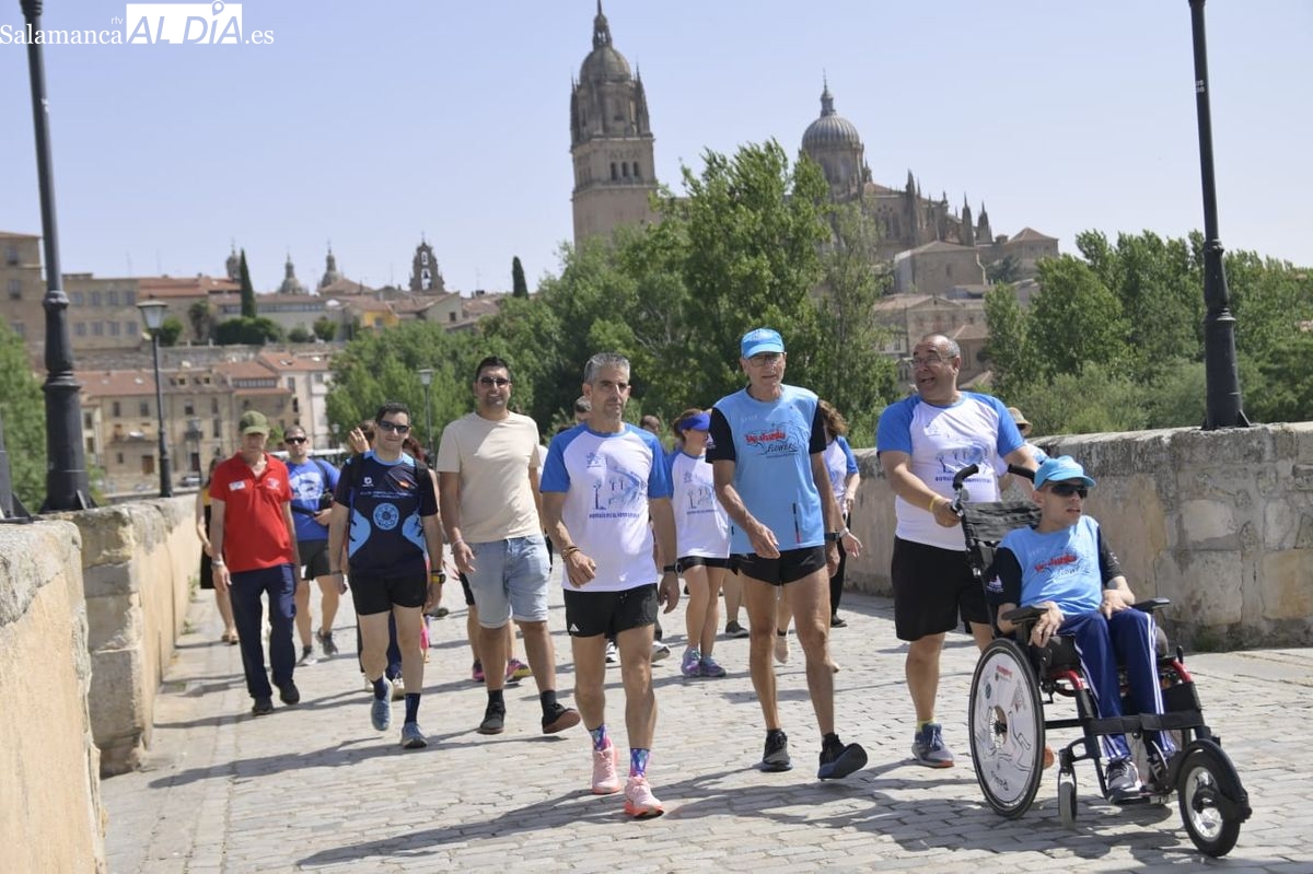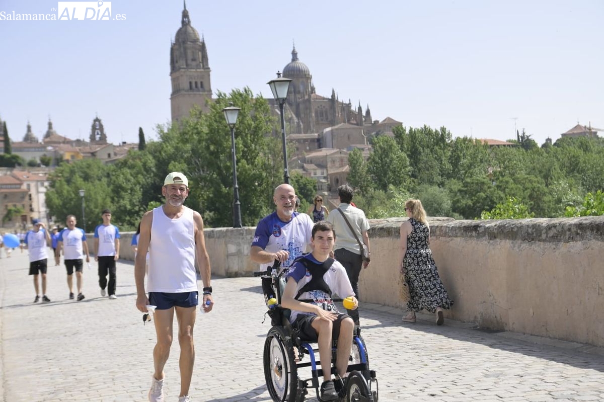 Muchos participantes tiñeron de azul, color simbólico del autismo, el trayecto que discurrió por el puente romano y el centro histórico de la ciudad, creando una imagen poderosa de unidad y apoyo.