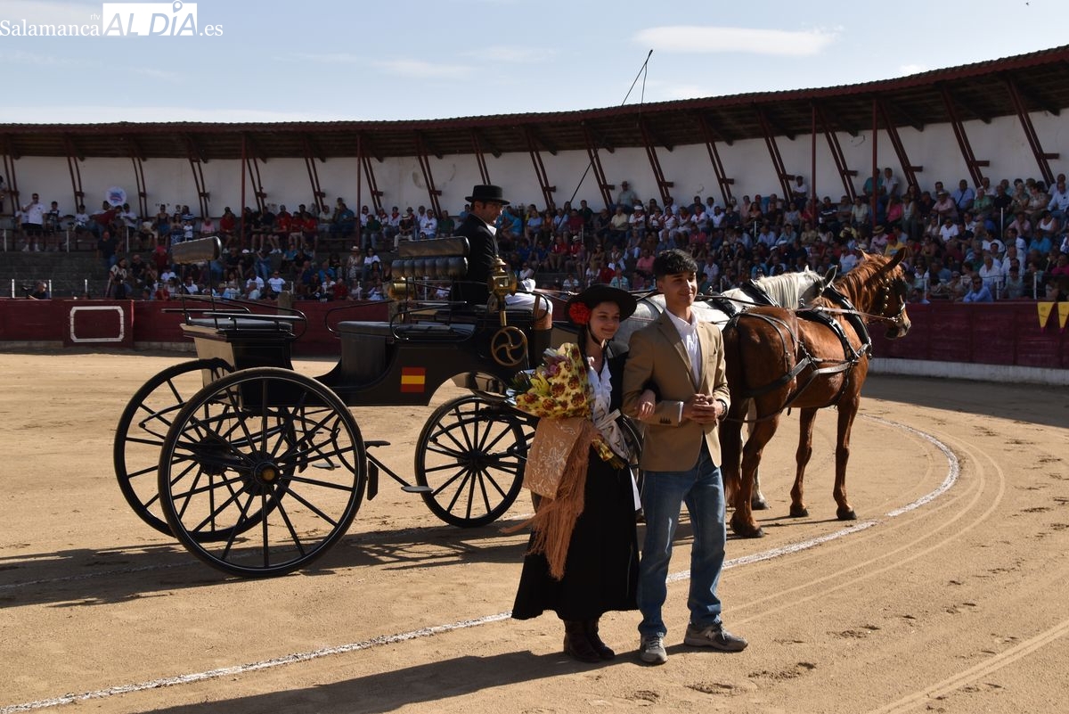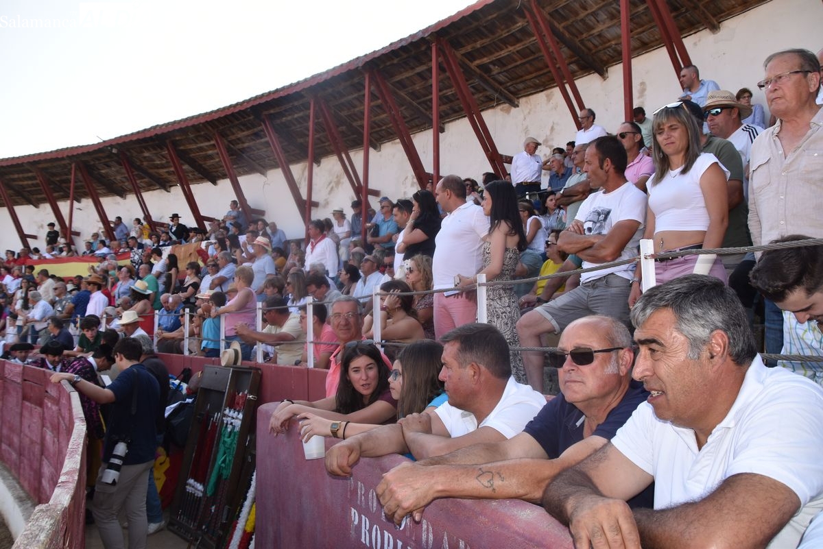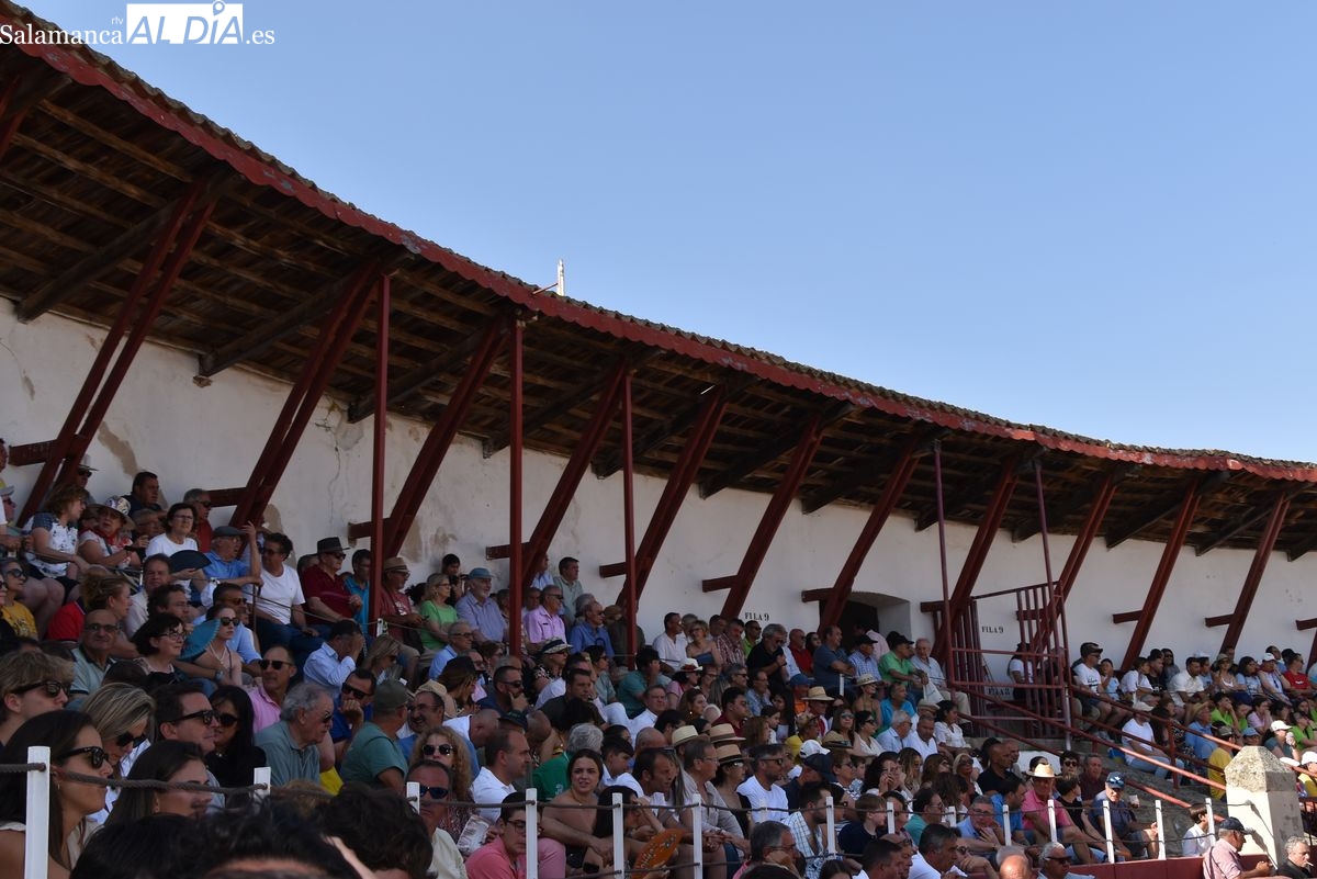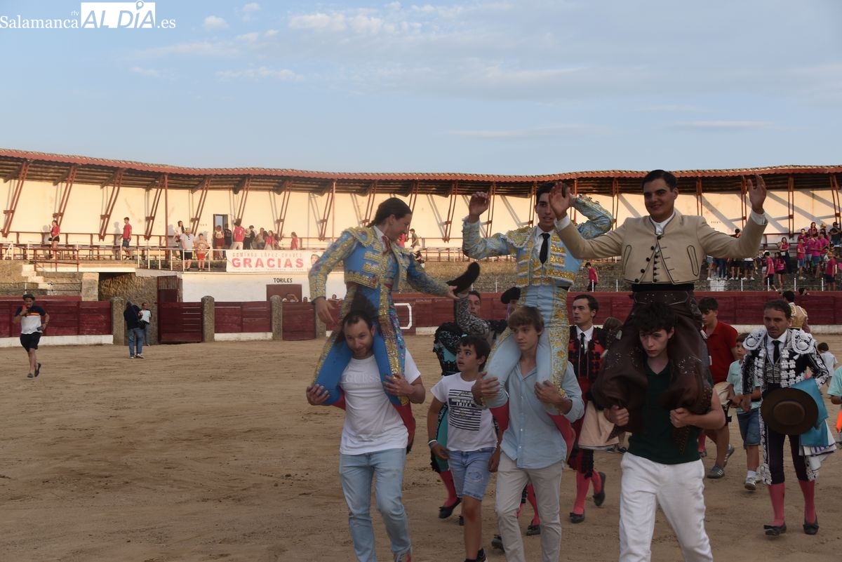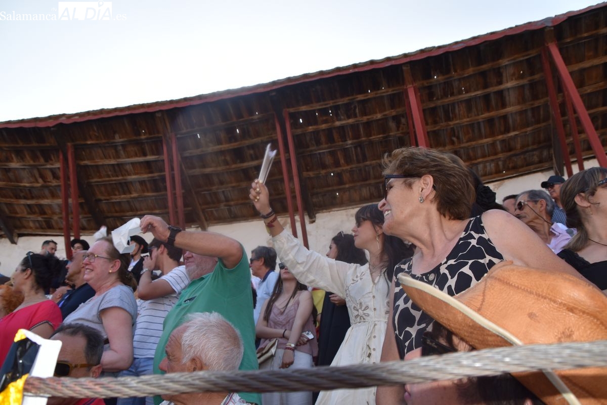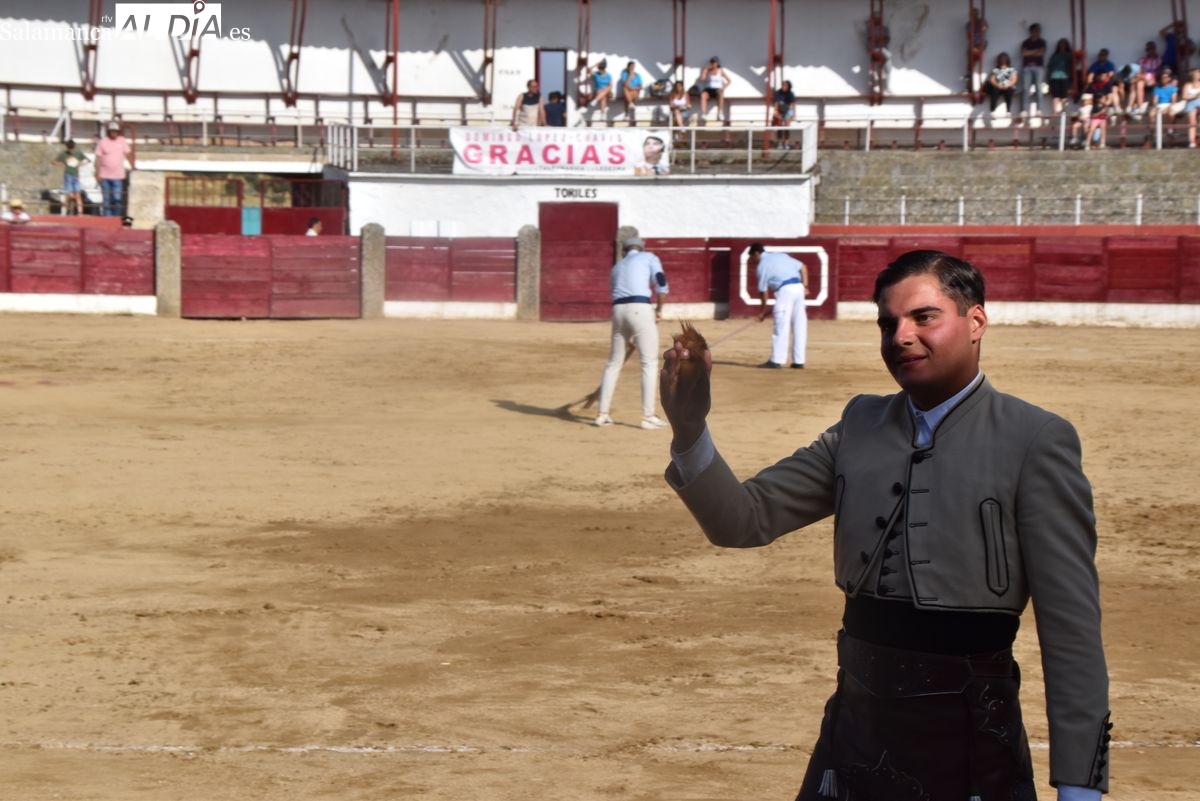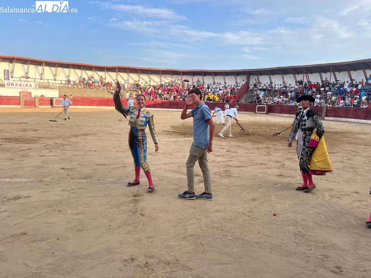Triunfo rotundo de Raquel Martín en Ledesma, donde indultó un extraordinario novillo de Lorenzo Rodríguez Espioja de nombre 'Lolito'. La salmantina compartió salida en hombros con el rejoneador Sergio Pérez de Gregorio y el novillero Julio Norte, que cortaron dos orejas cada uno.