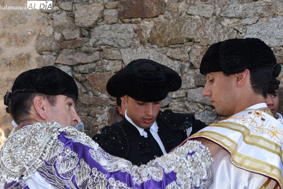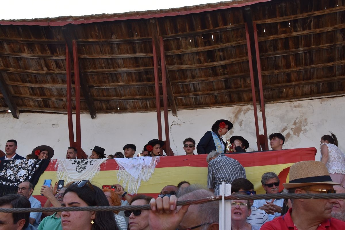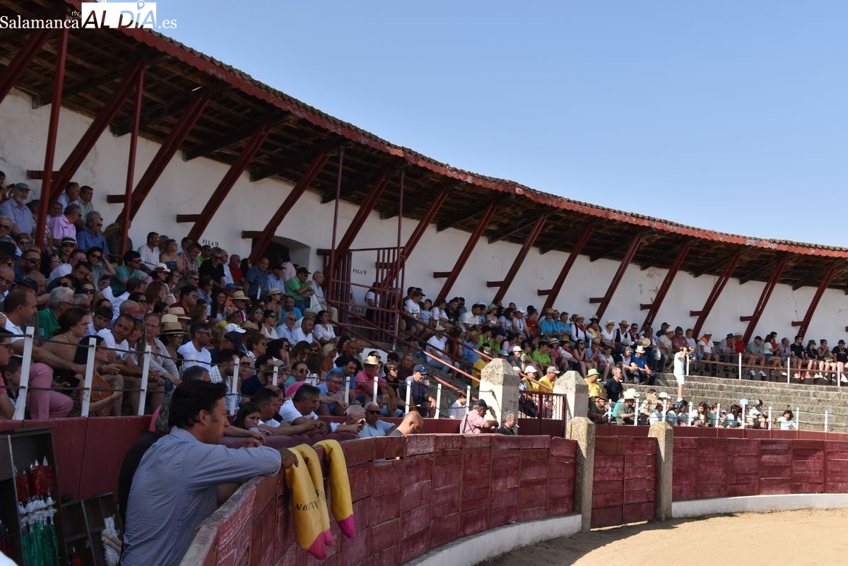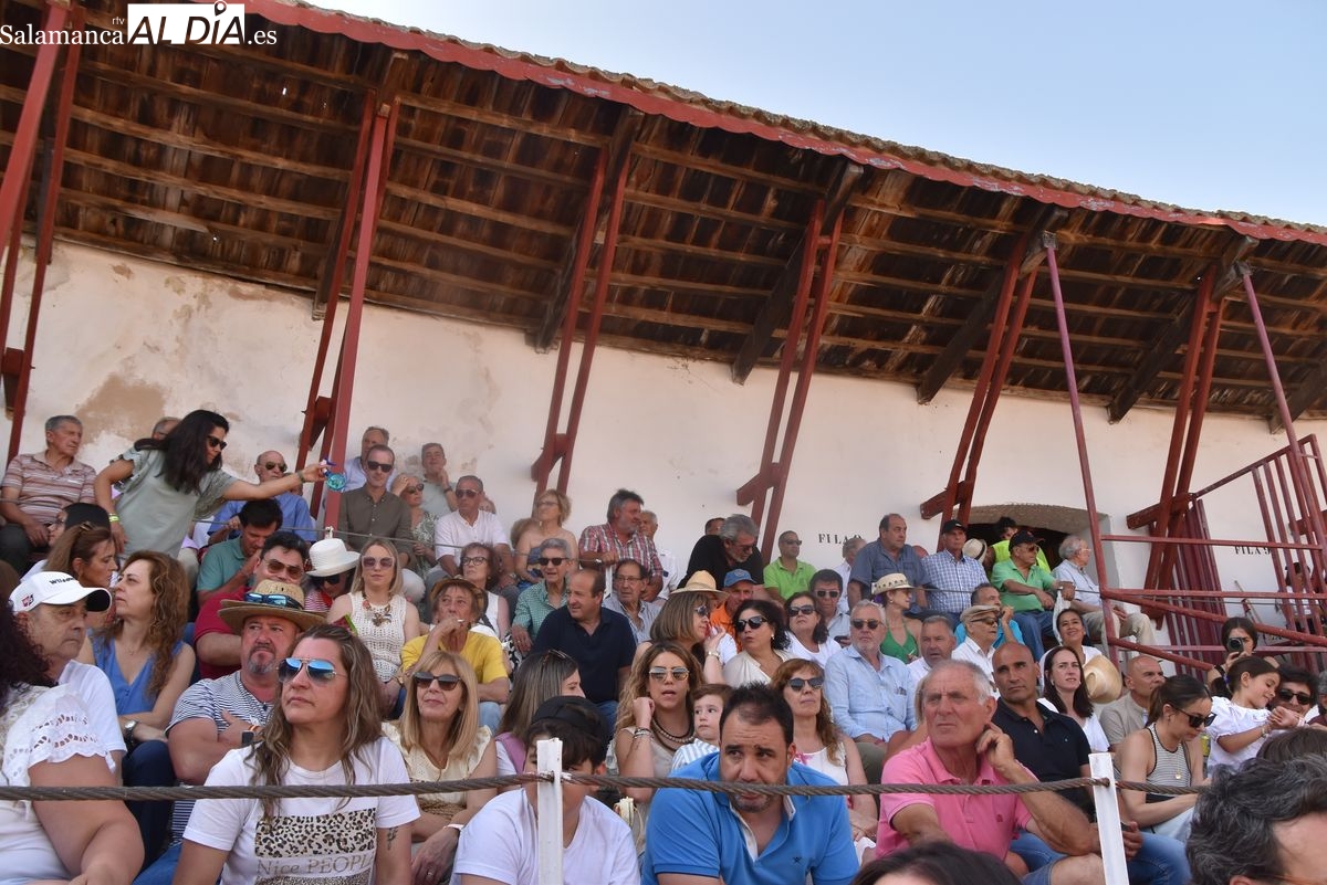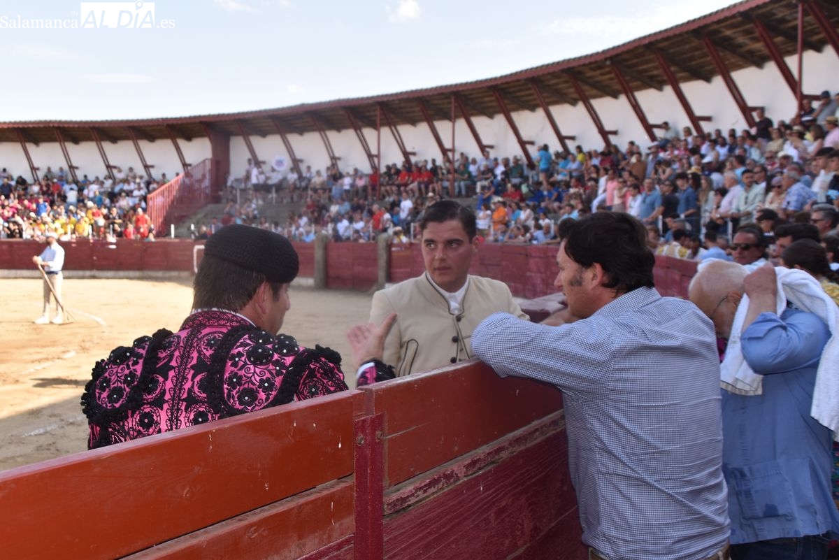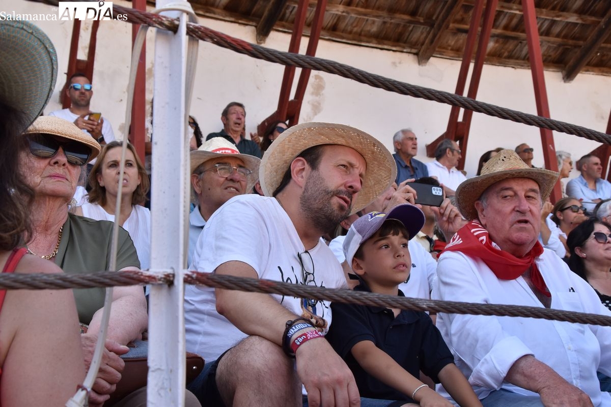 Triunfo rotundo de Raquel Martín en Ledesma, donde indultó un extraordinario novillo de Lorenzo Rodríguez Espioja de nombre 'Lolito'. La salmantina compartió salida en hombros con el rejoneador Sergio Pérez de Gregorio y el novillero Julio Norte, que cortaron dos orejas cada uno.