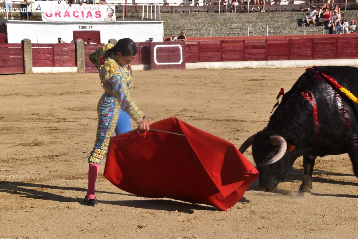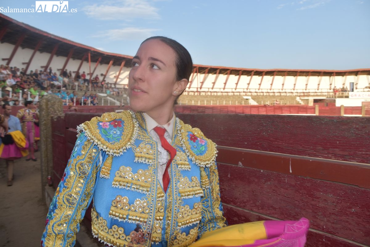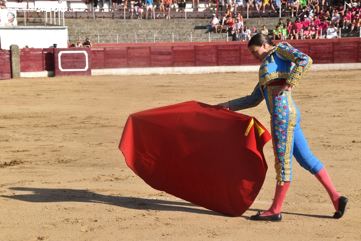 Raquel Martín dejó con el capote lo más destacado de su primera actuación. Toreó con gusto la salmantina con una rodilla flexionada, componiendo muy bien la figura. La faena de muleta fue una continua lucha por lograr limpiar los muletazos ante el molesto calamocheo de un astado manso, sin clase y sin entrega de La Campana.