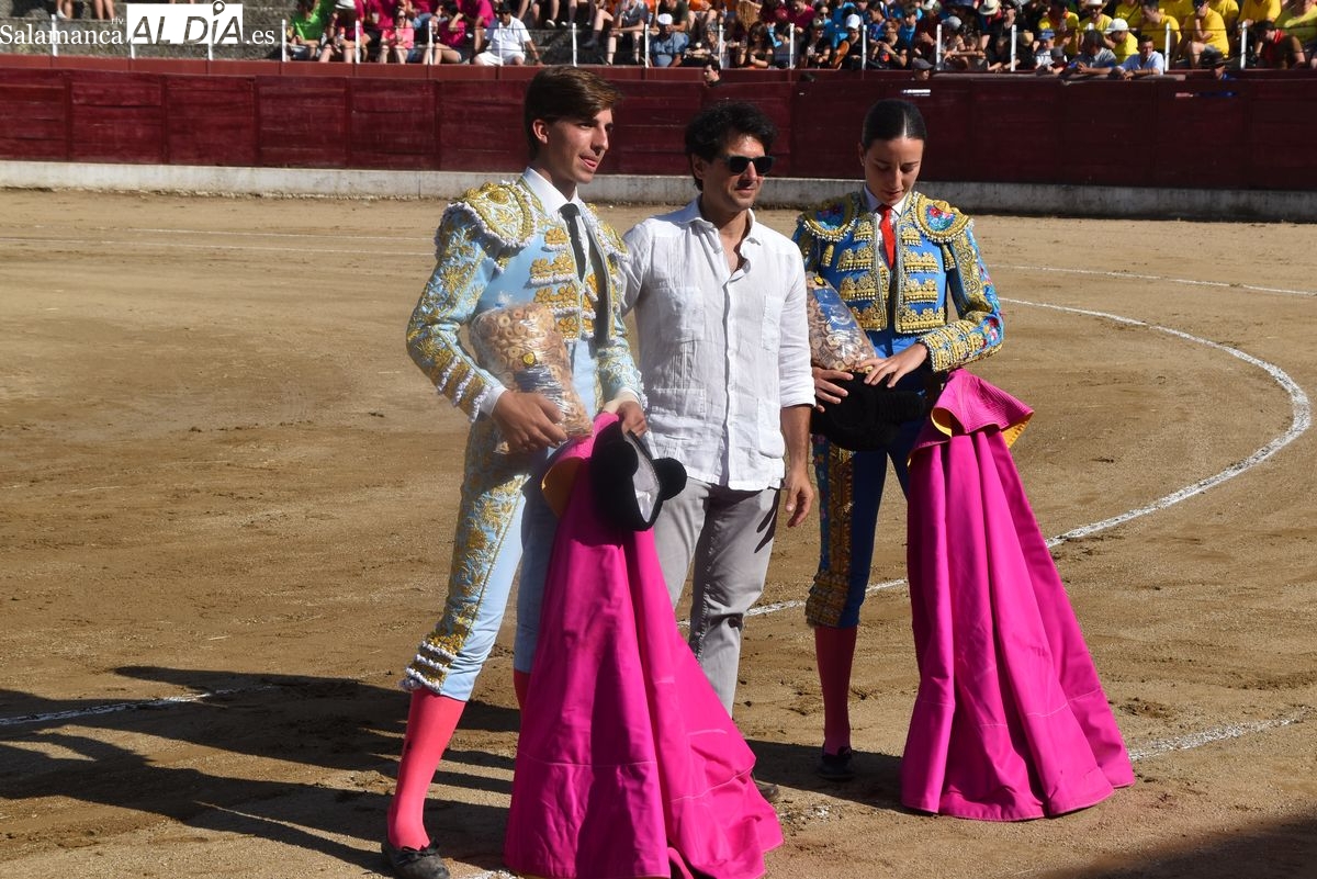 La novillera salmantina brilló frente a un excepcional astado y compartió salida en hombros con Pérez de Gregorio y Julio Norte