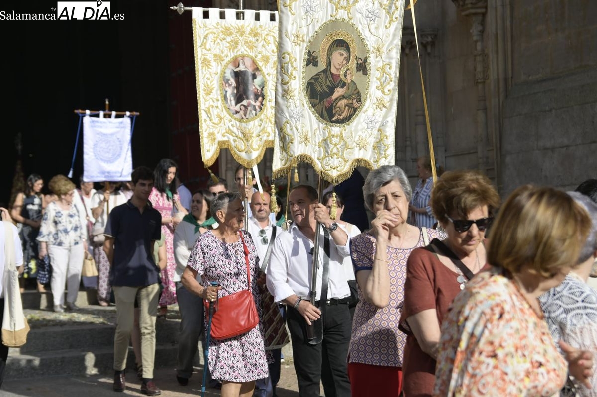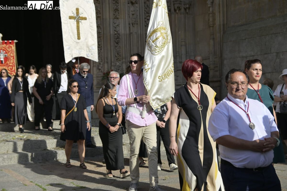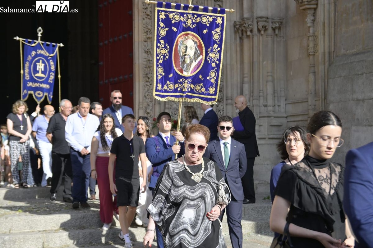 El recorrido de la procesión ha comenzado por la Puerta del Obispo y ha continuado por emblemáticas vías salmantinas. Se han realizado paradas devocionales en tres altares que habían sido cuidadosamente preparados y adornados por diversas hermandades de la ciudad. Estos altares se han ubicado en puntos significativos como la Rúa Mayor, la iglesia de San Sebastián y el atrio de la Catedral.
