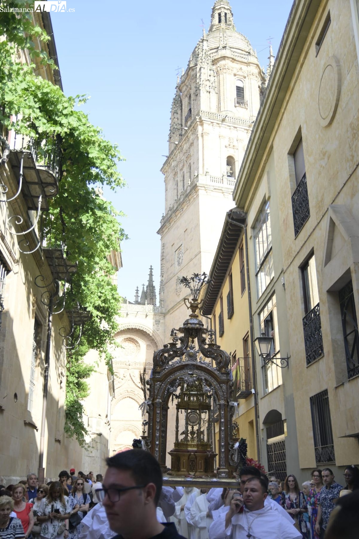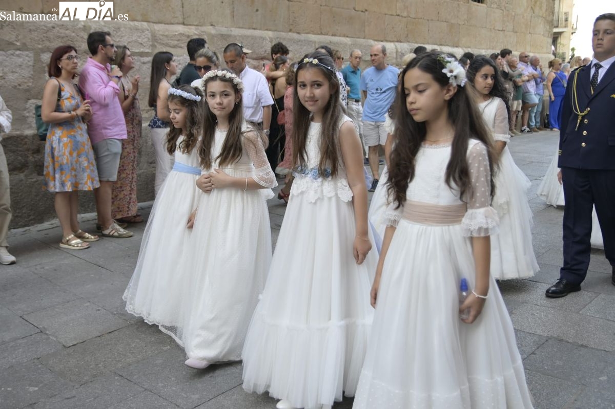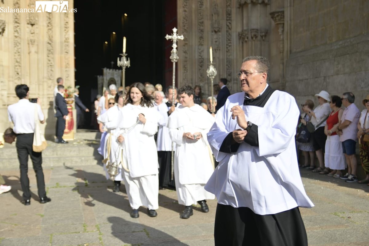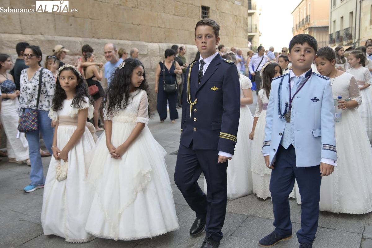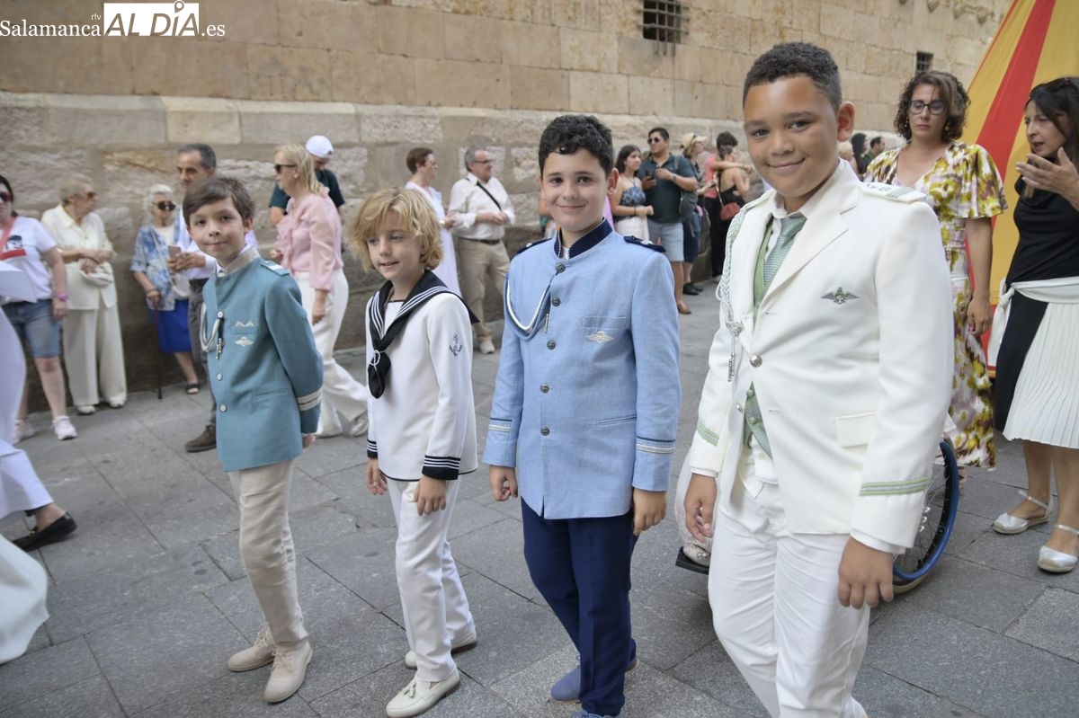 Tras la conclusión de la misa, ha tenido lugar uno de los momentos más esperados y vistosos: la tradicional procesión eucarística. El Santísimo Sacramento ha recorrido las calles del casco histórico de Salamanca, en un itinerario que ha contado con la participación destacada de los niños que han celebrado su Primera Comunión durante este año.
