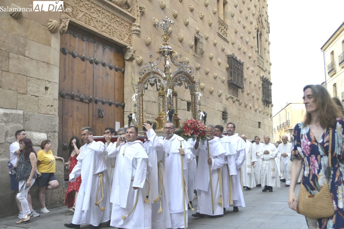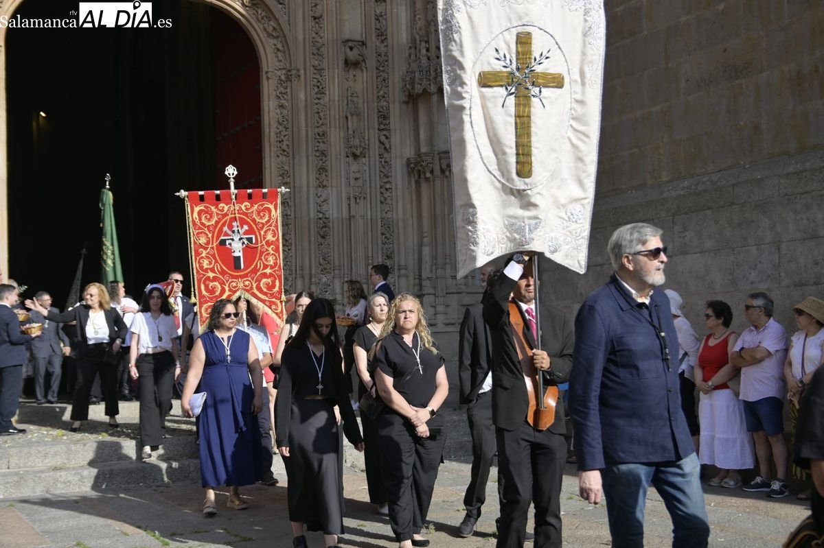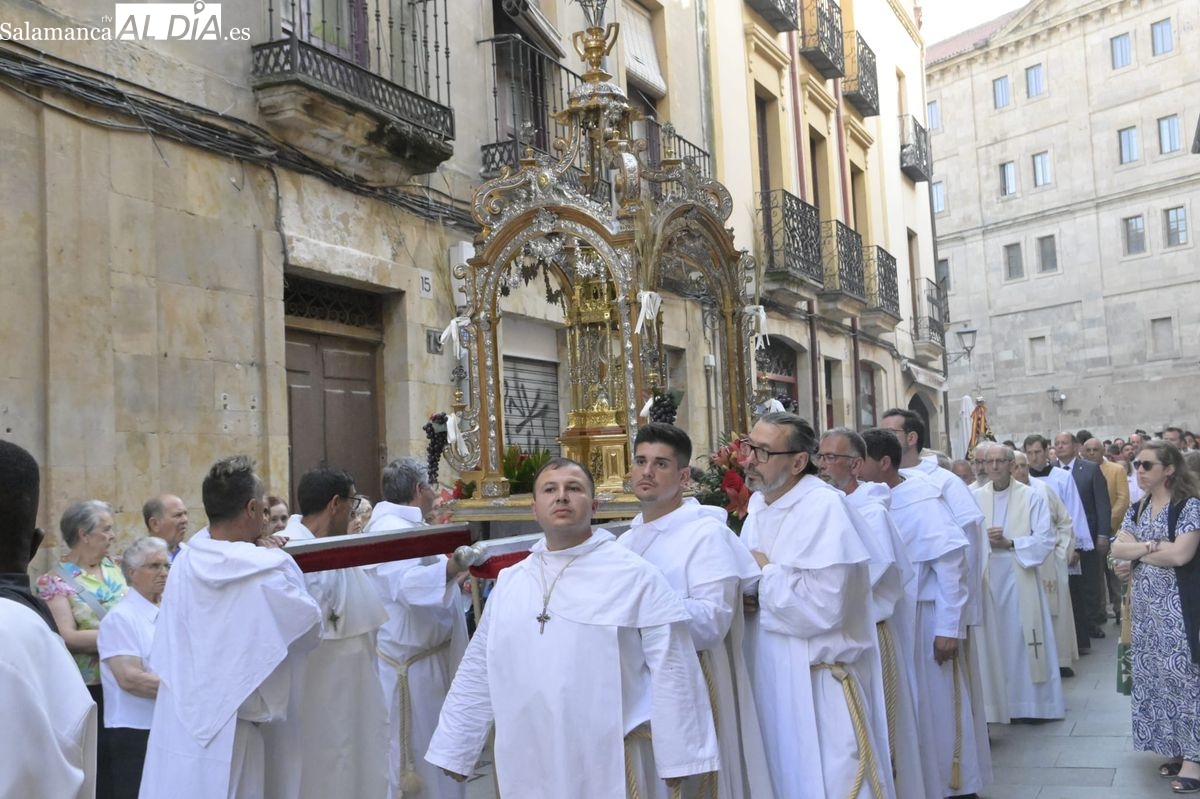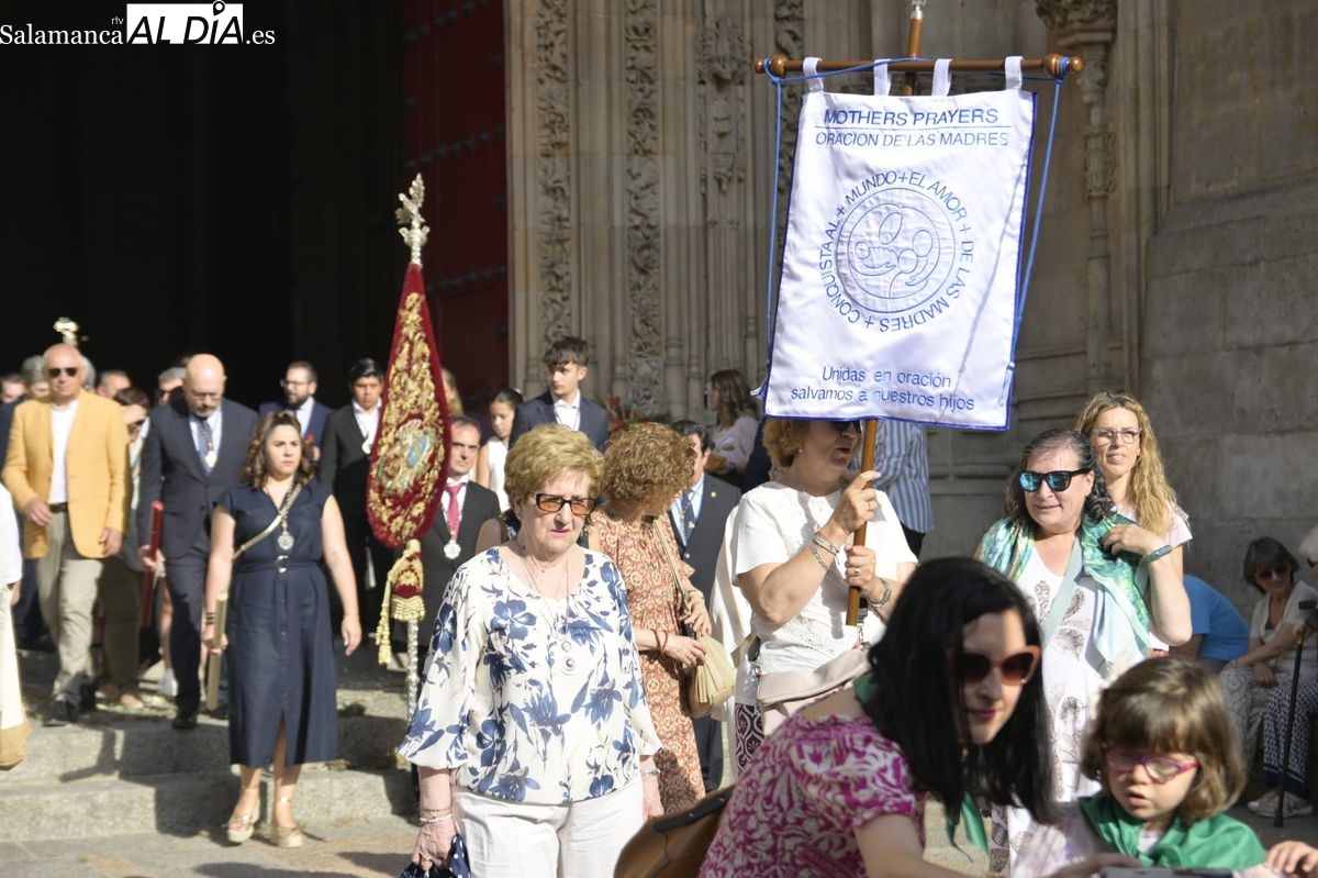 Tras la conclusión de la misa, ha tenido lugar uno de los momentos más esperados y vistosos: la tradicional procesión eucarística. El Santísimo Sacramento ha recorrido las calles del casco histórico de Salamanca, en un itinerario que ha contado con la participación destacada de los niños que han celebrado su Primera Comunión durante este año.