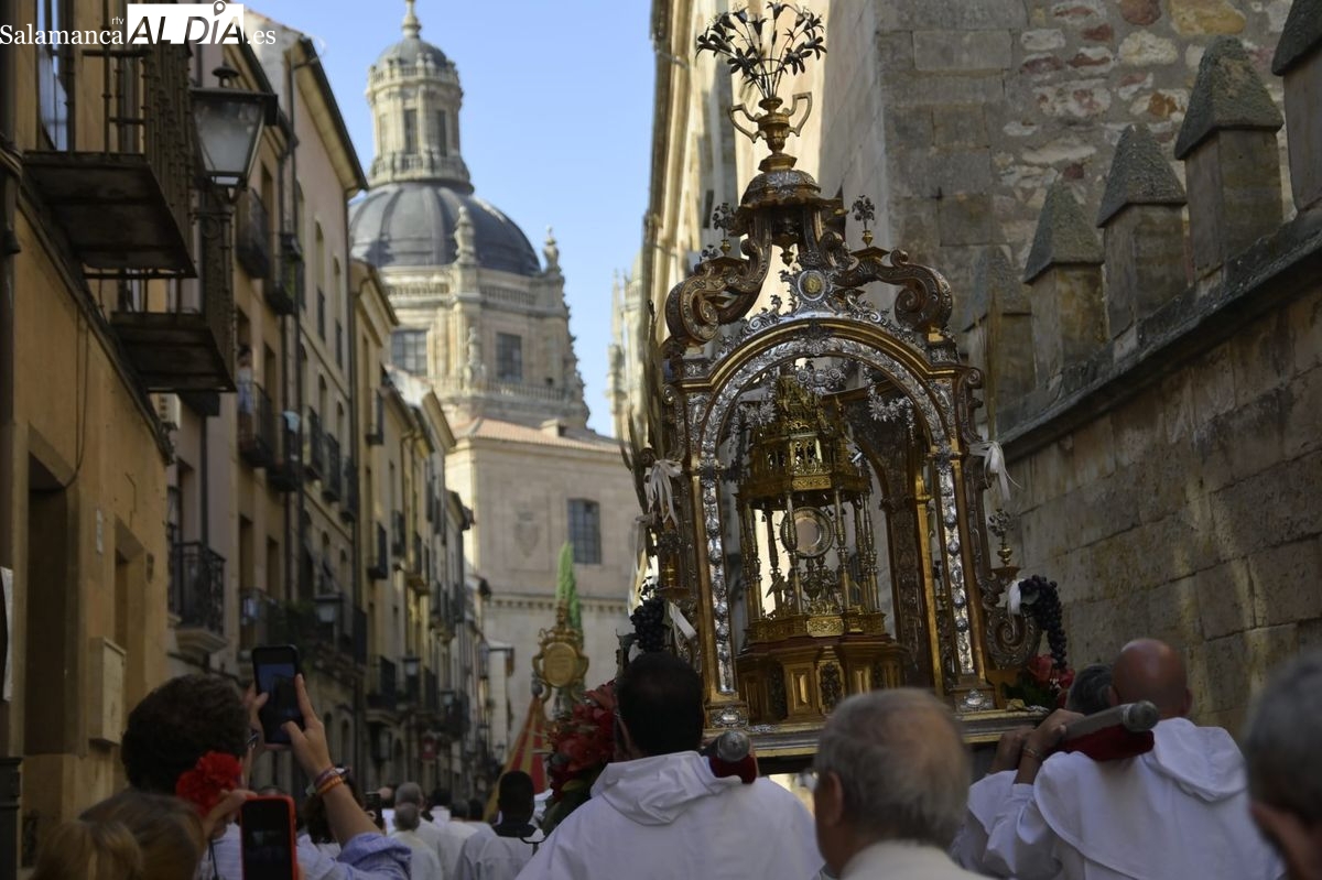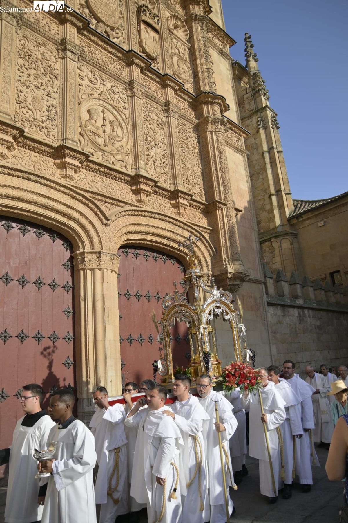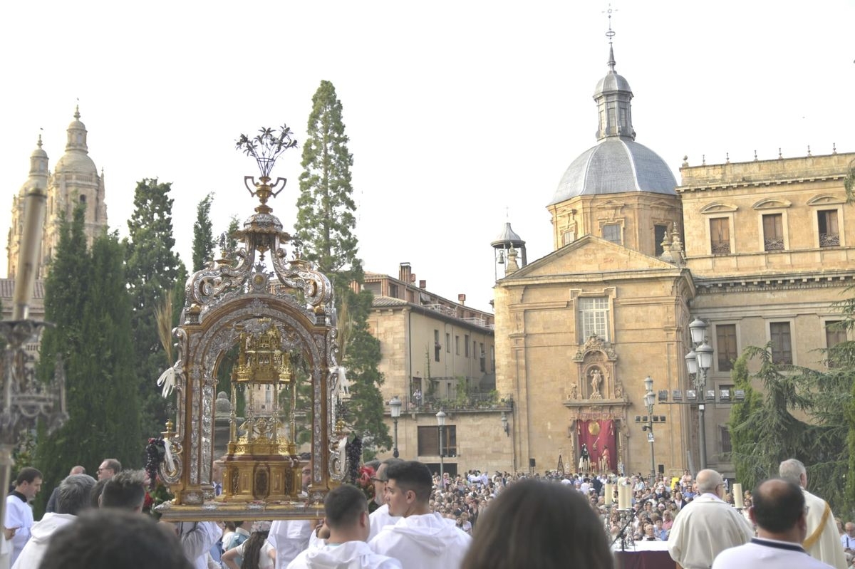 Las celebraciones centrales han comenzado con una misa solemne en la Catedral Nueva. La eucaristía ha estado presidida por el obispo de Salamanca, Mons. José Luis Retana, y concelebrada por numerosos sacerdotes del presbiterio diocesano. Durante la homilía, se ha puesto de relieve la importancia de la presencia real de Cristo en la Eucaristía y se ha renovado la llamada a vivir el amor fraterno, intensificando el compromiso con las personas más necesitadas de la sociedad.