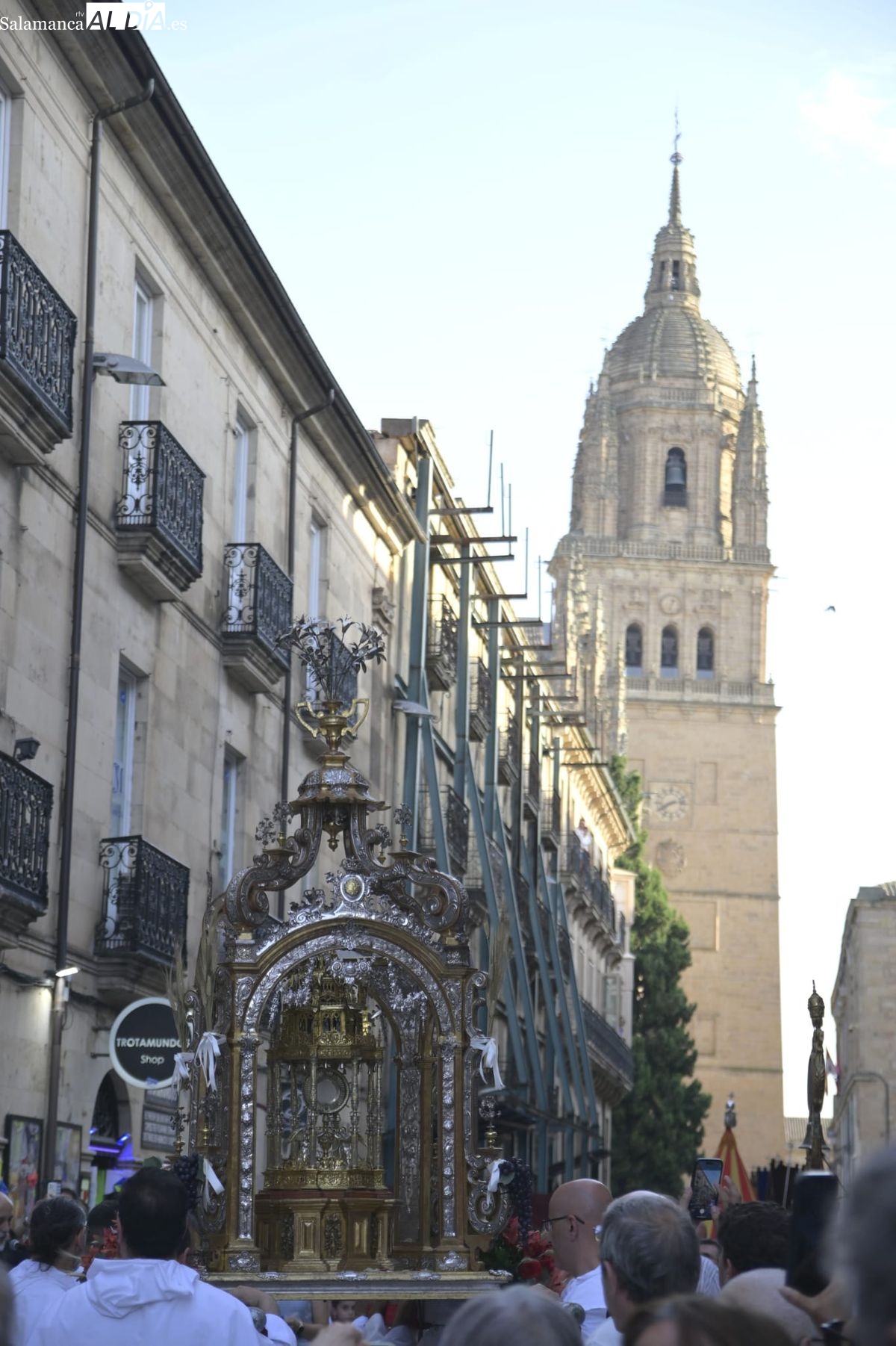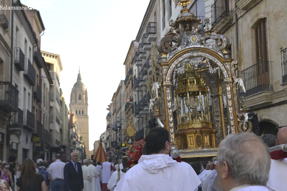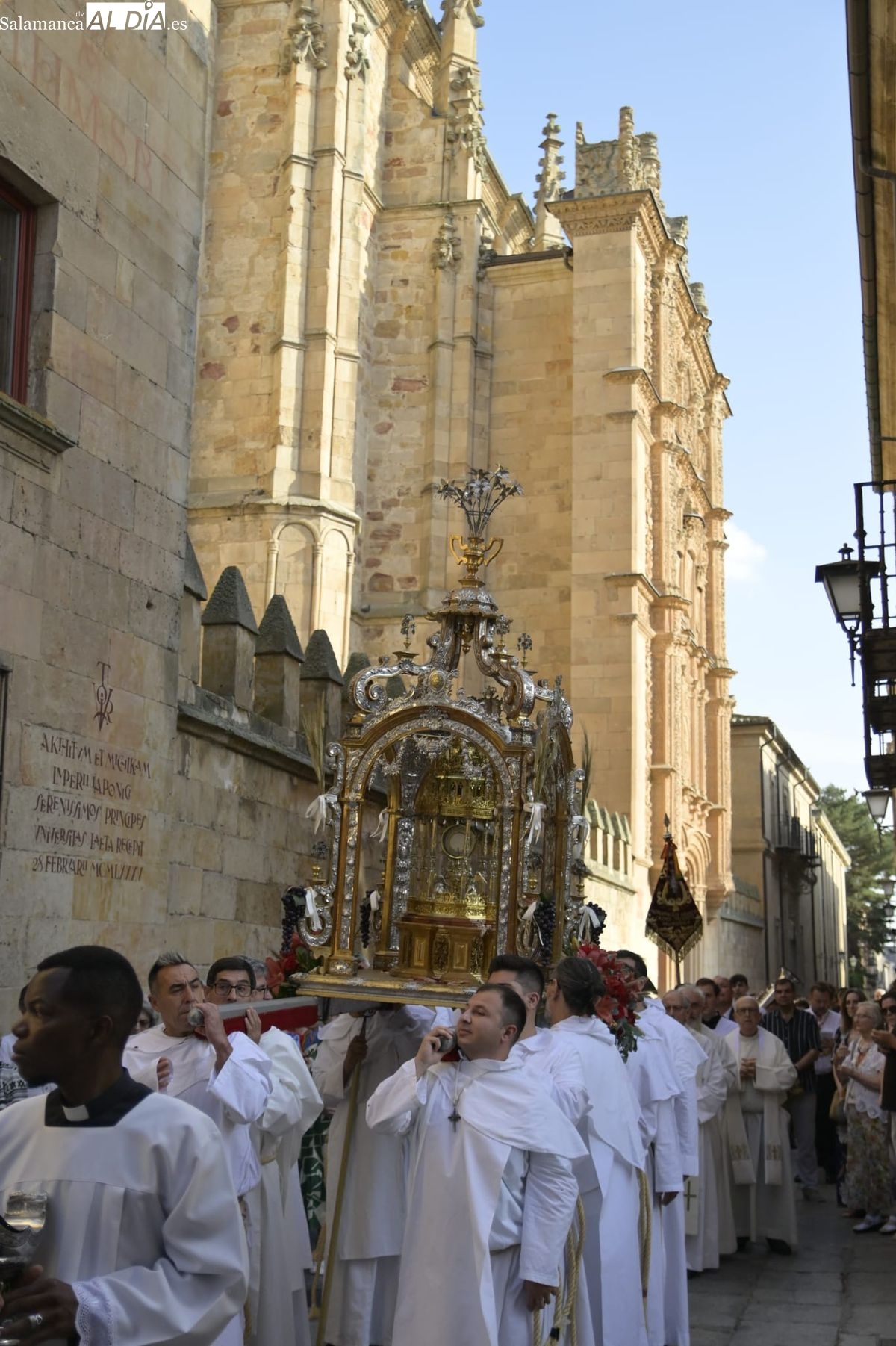 Las celebraciones centrales han comenzado con una misa solemne en la Catedral Nueva. La eucaristía ha estado presidida por el obispo de Salamanca, Mons. José Luis Retana, y concelebrada por numerosos sacerdotes del presbiterio diocesano. Durante la homilía, se ha puesto de relieve la importancia de la presencia real de Cristo en la Eucaristía y se ha renovado la llamada a vivir el amor fraterno, intensificando el compromiso con las personas más necesitadas de la sociedad.