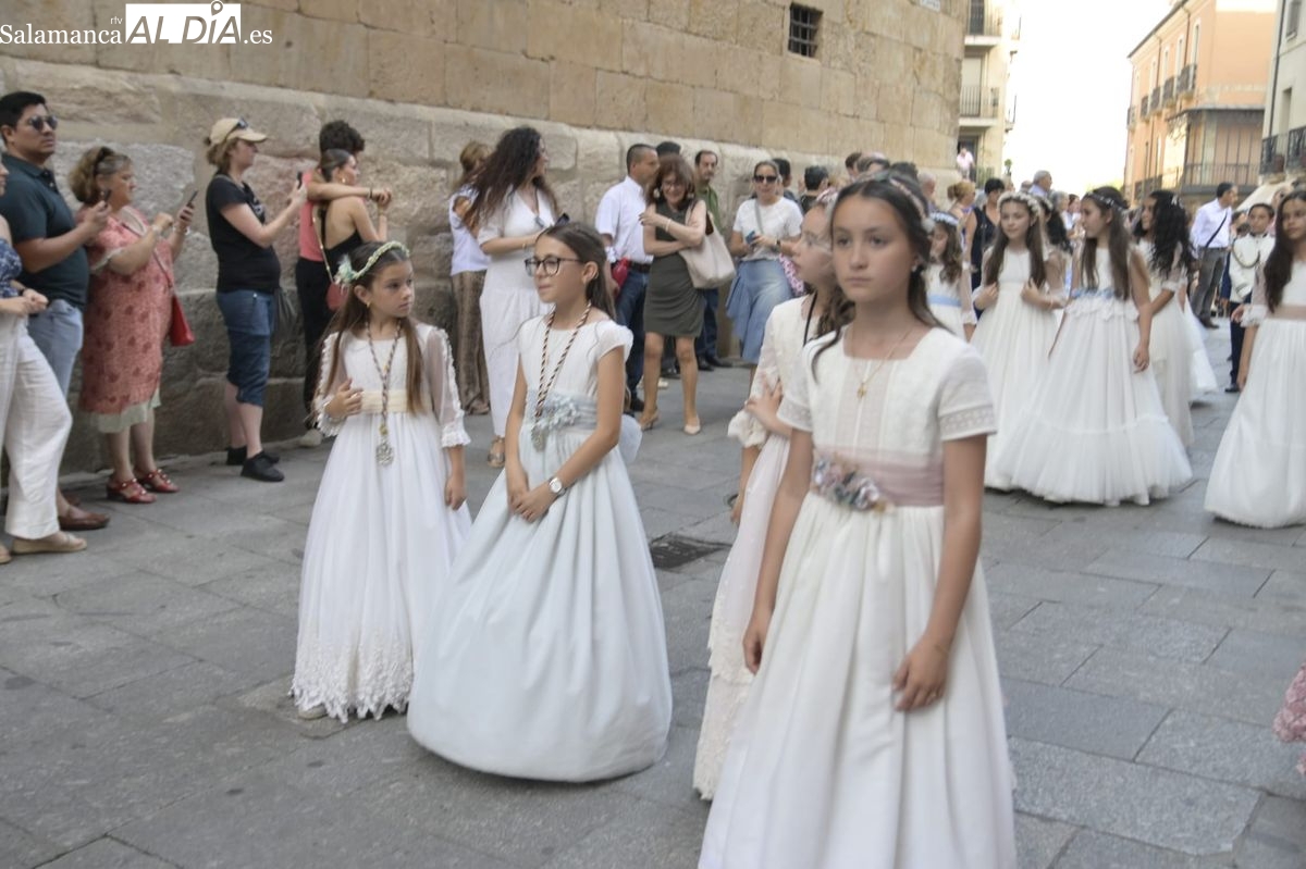 La ciudad de Salamanca ha vivido este domingo, 22 de junio, una jornada de profunda significación religiosa con la celebración de la solemnidad del Corpus Christi, también conocida como el Día de la Caridad. Los actos, organizados por la Diócesis de Salamanca, han estado marcados por una gran participación de los fieles y, de manera muy especial, por la alegría e ilusión de los niños y niñas que han recibido este año su Primera Comunión.
