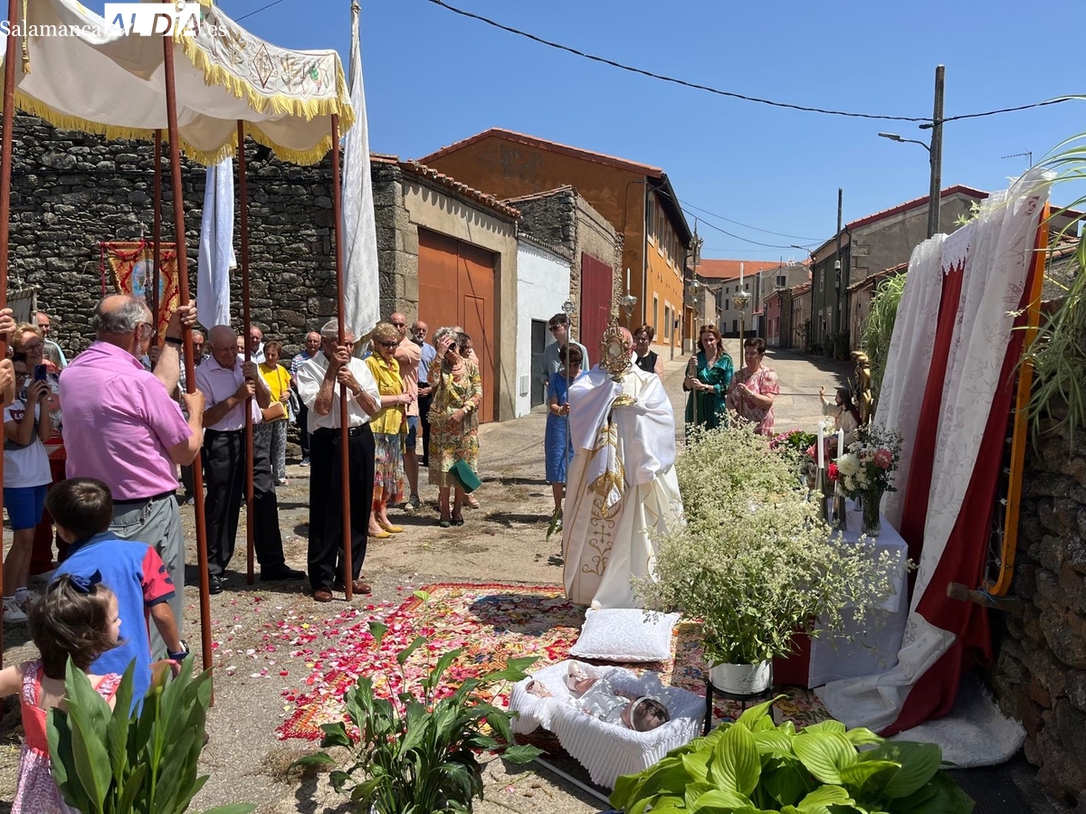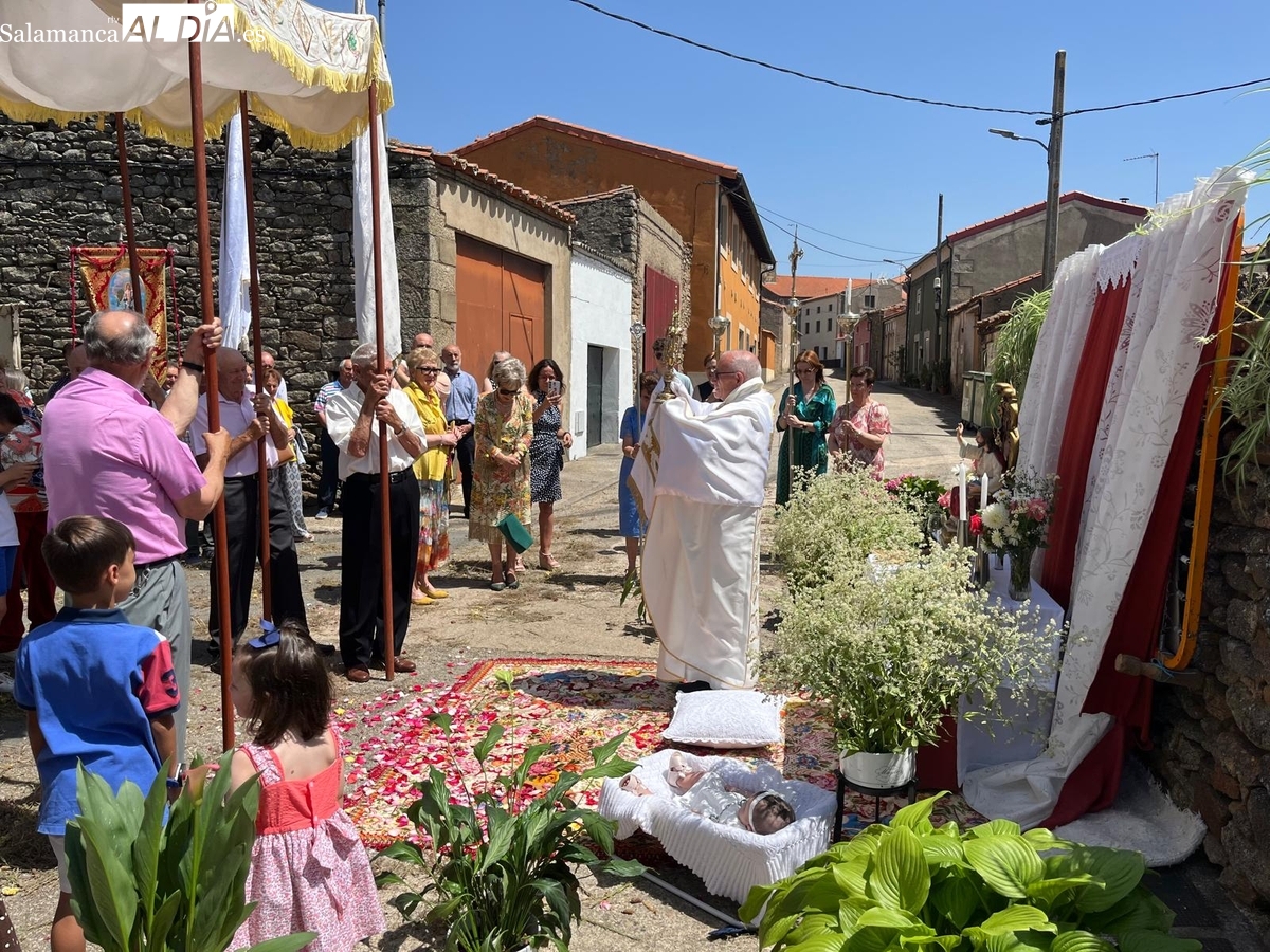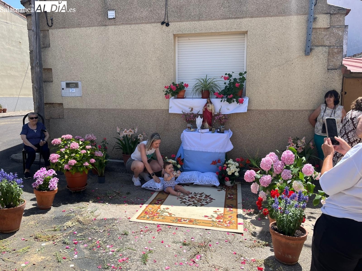 La localidad vibró con la solemne eucaristía y la posterior procesión, en la que dos niños fueron bendecidos en los altares dispuestos por los vecinos y participó el neocomulgante de este año.