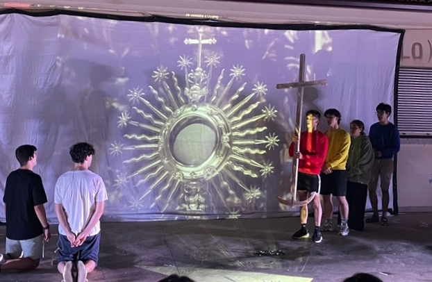 Tras la representación, la veintena de jóvenes tuvo un tiempo de adoración nocturna en la Iglesia de El Maíllo como víspera del Corpus Christi, en cuya celebración en el municipio (con la misa y la posterior procesión) tomaron parte de forma activa en la mañana del domingo, junto al resto de fieles de la localidad.
