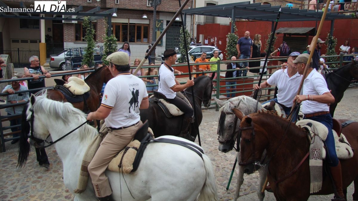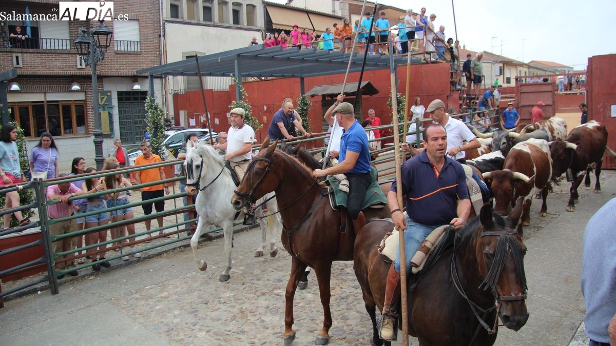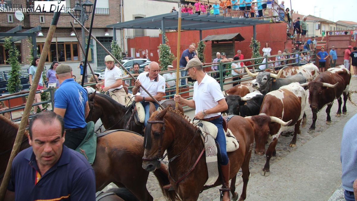 Los 3 erales de la ganadería de Miranda de Pericalvo y 6 cabestros fueron conducidos con maestría por una decena de caballistas
