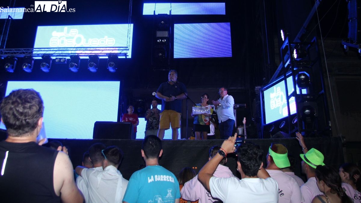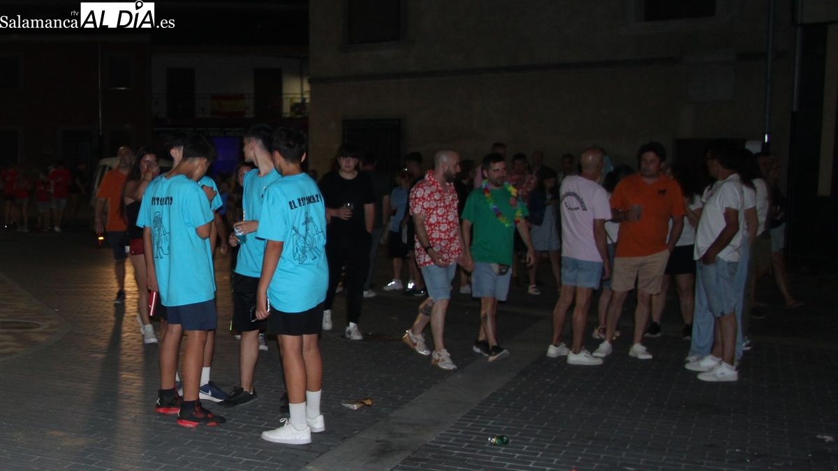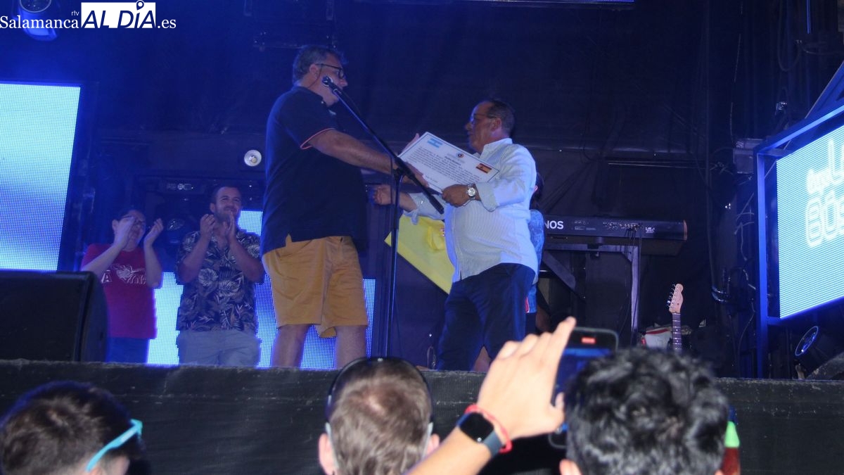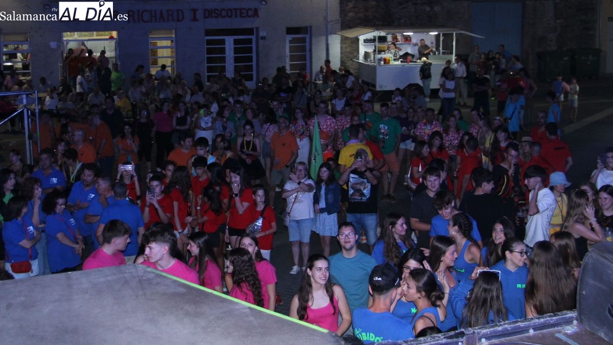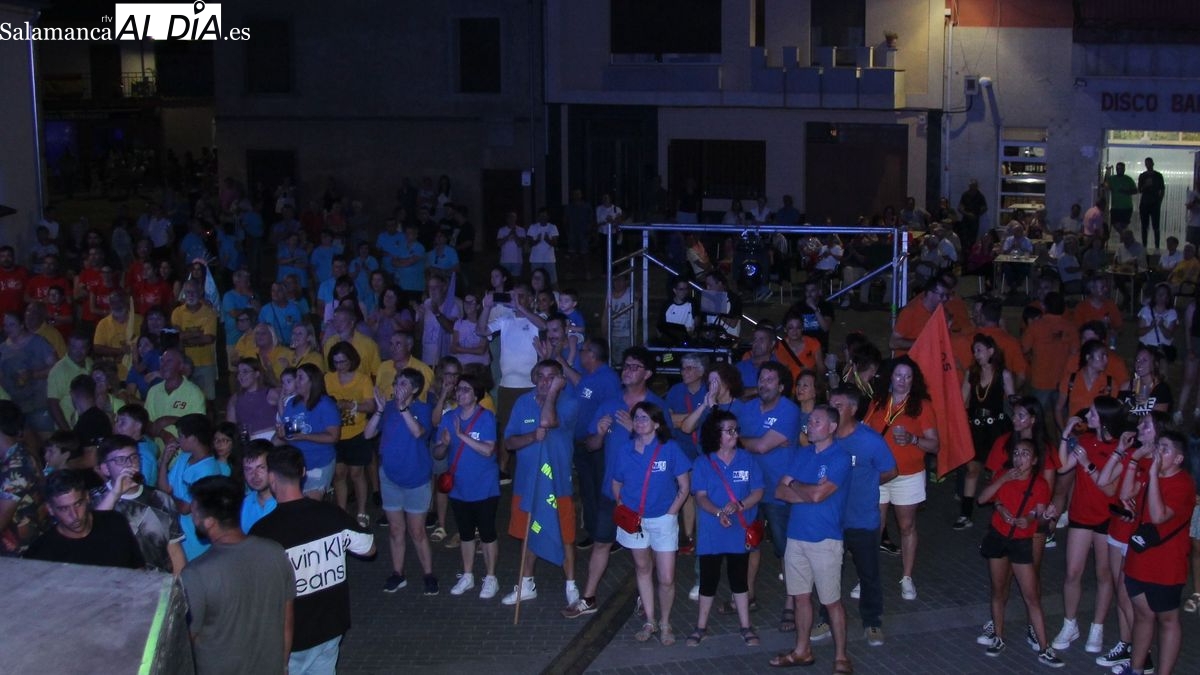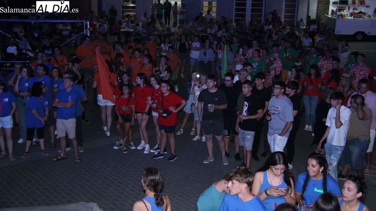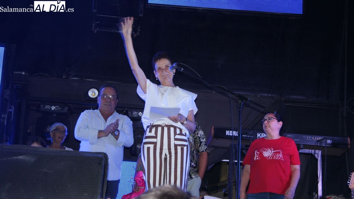 Ya con los peñistas en la plaza, el alcalde, Jesús Pata, saludó a los asistentes desde el escenario y dio las "gracias a las personas que han colaborado en la organización de estas fiestas". A continuación, el alcalde presentó a la encargada de pronunciar el Pregón de fiestas de 2025, "una persona que ha dedicado su vida durante 40 años a Hinojosa de Duero, la farmaceútica María Victoria Melgar Velasco".