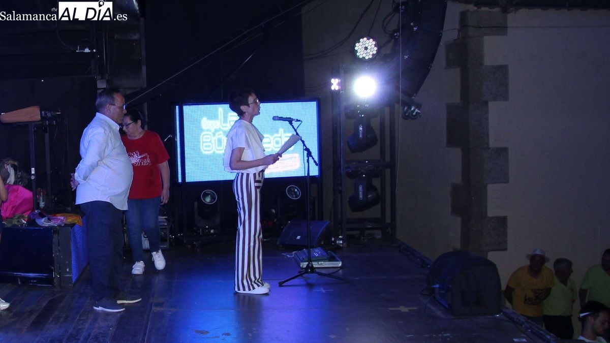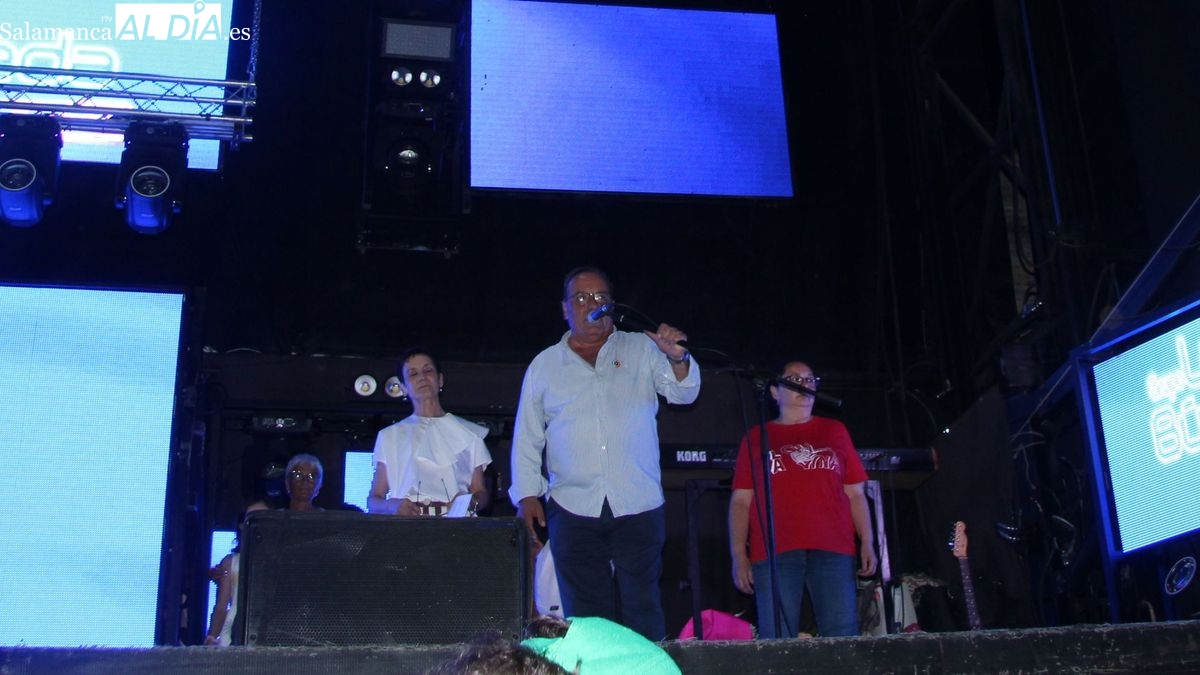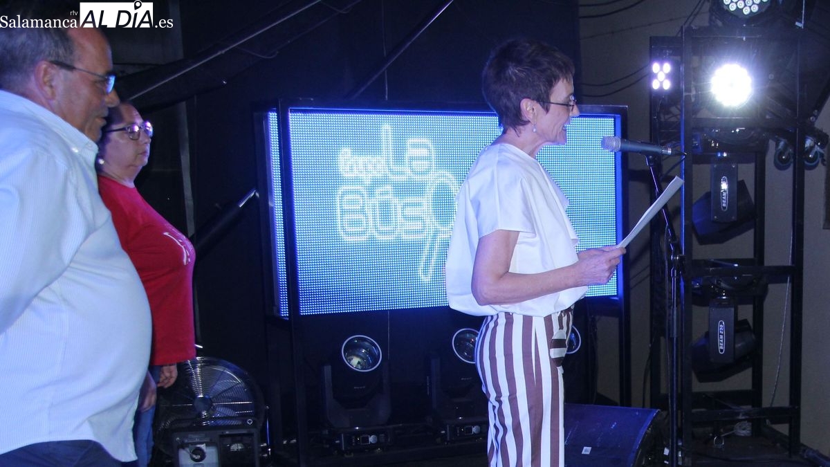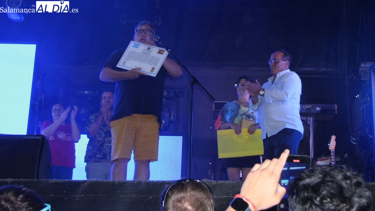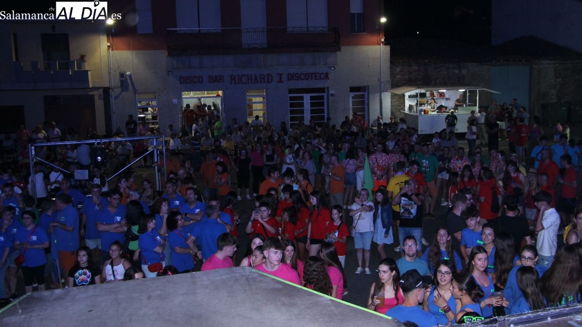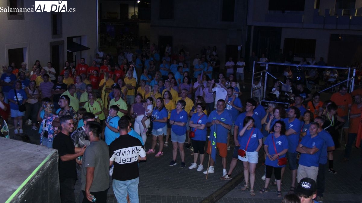 Ya con los peñistas en la plaza, el alcalde, Jesús Pata, saludó a los asistentes desde el escenario y dio las "gracias a las personas que han colaborado en la organización de estas fiestas". A continuación, el alcalde presentó a la encargada de pronunciar el Pregón de fiestas de 2025, "una persona que ha dedicado su vida durante 40 años a Hinojosa de Duero, la farmaceútica María Victoria Melgar Velasco".