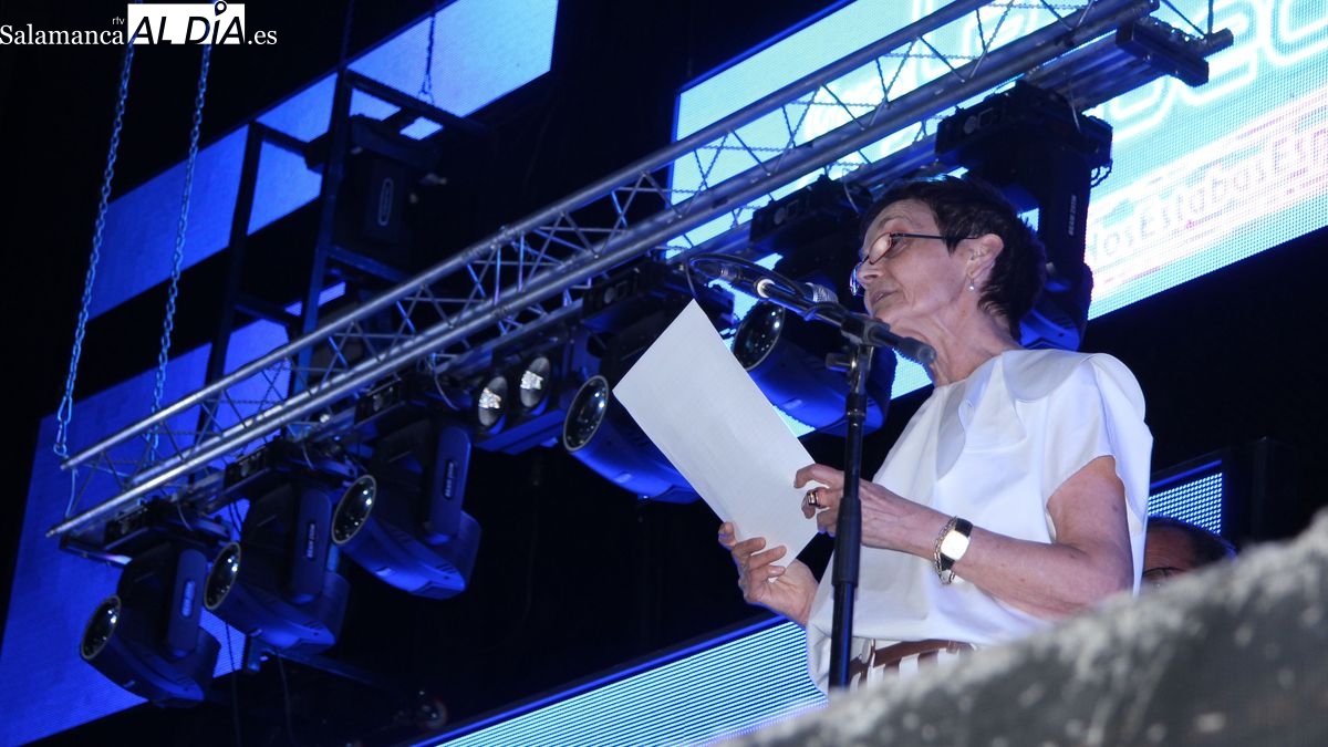 La pregonera inició su interveción manifestando su ilusión por vivir este momento: "Hoy es un dia muy especial para mi por dos motivos: el primero, estar aquí con vosotros para dar comienzo un año más a las fiestas de San Juan y el segundo porque me despido a vuestro lado como farmaceútica titular de Hinojosa de Duero. Cuando veía llegar ese momento sabía que necesitaba compartir con vosotros los sentimientos encontrados que ahora tengo y que mejor manera de hacerlo desde aquí en esta noche tan mágica para todos" afirmó Victoria Melgar, que mostró su "agradecimiento al alcalde y a la corporacion municipal por acordarse de mí".
