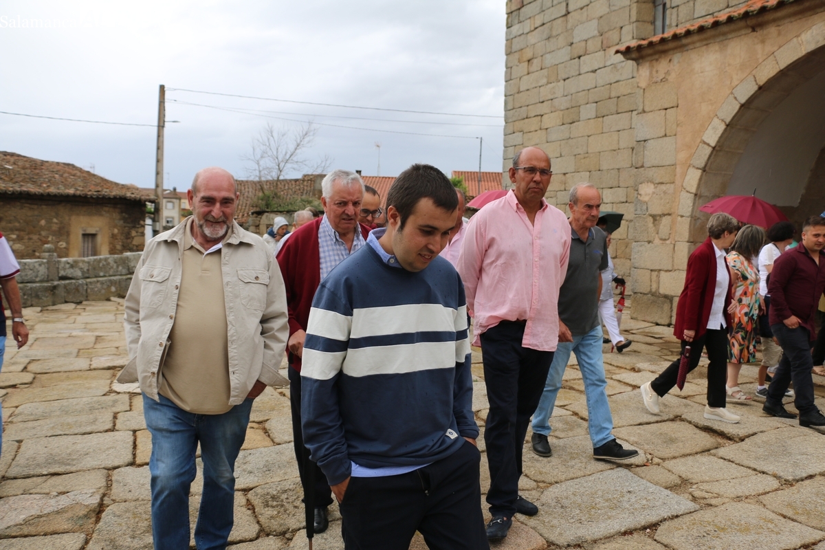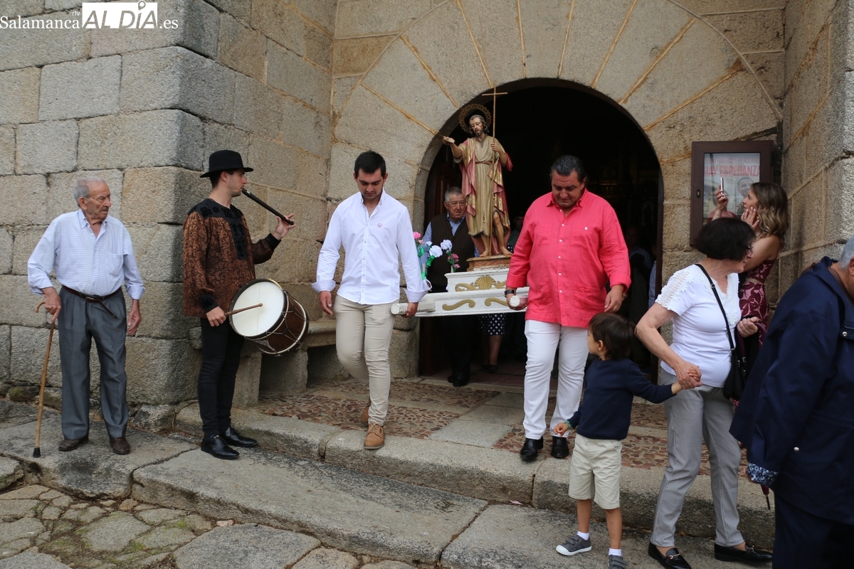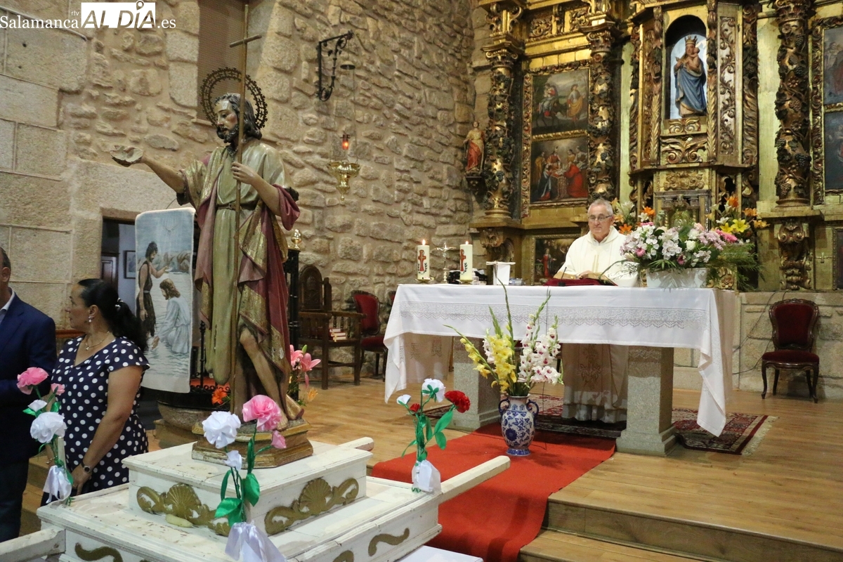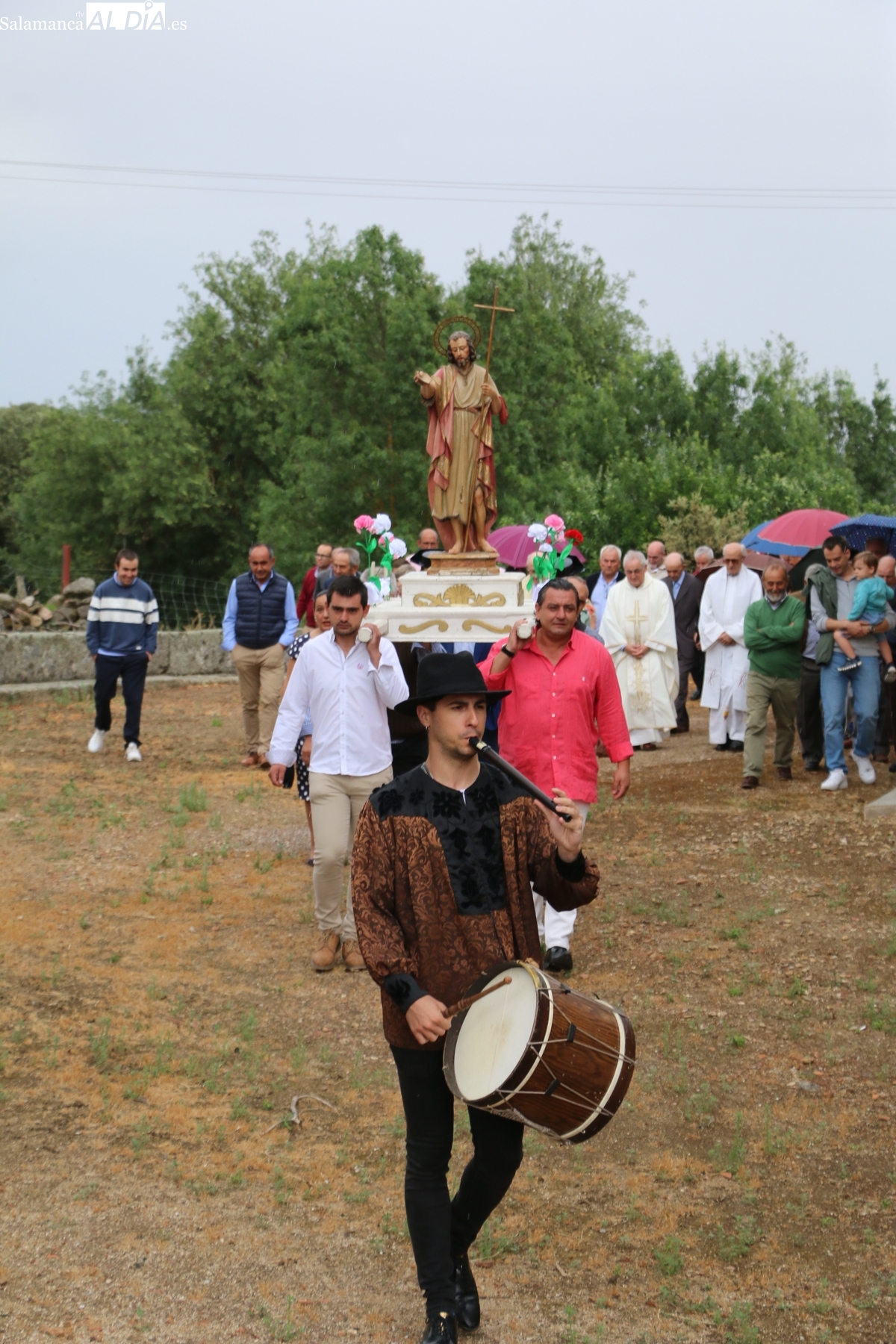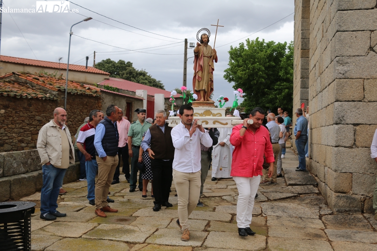 Las celebraciones arrancaban este martes, día grande dedicado a San Juan Bautista, con los actos más solemnes. A las 12:00 horas, la iglesia parroquial acogía una misa concelebrada y oficiasda por el párroco Jesús Gutiérrez, a la que seguía la procesión, en esta ocasión alrededor de la iglesia ante la aparición de lluvia, lo que motivó que el ofertorio se celebrase también en el interior del templo, actos presididos por la Corporación municipal, con el alcalde, Javier Castro al frente empuñando la vara de mayordomo. Entre las autoridades presentes también estaba representada la Guardia Civil por medio de la teniente de la demarcación de Vitigudino, Irene Campanario, y el sargento del cuartel de Villavieja de Yeltes. Tanto la misa como la procesión estuvieron amenizadas por los sonidos de la gaita y el tamboril del tamborilero de Villavieja de Yeltes, Juan Vázquez.