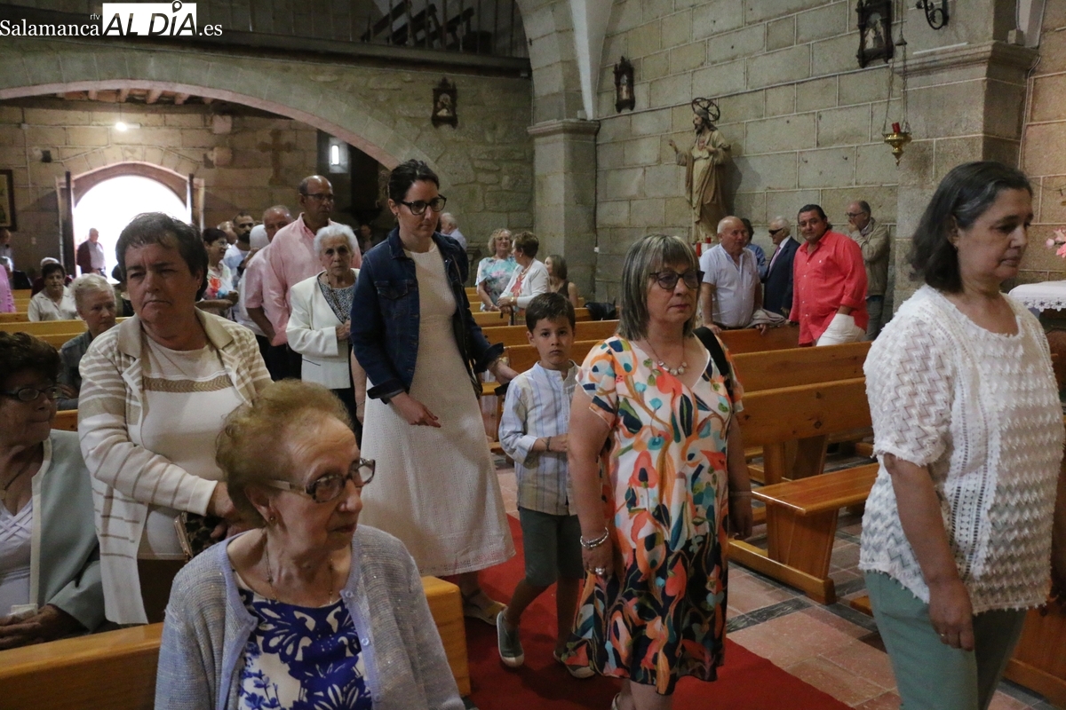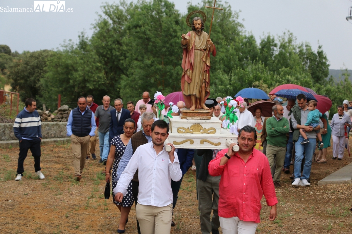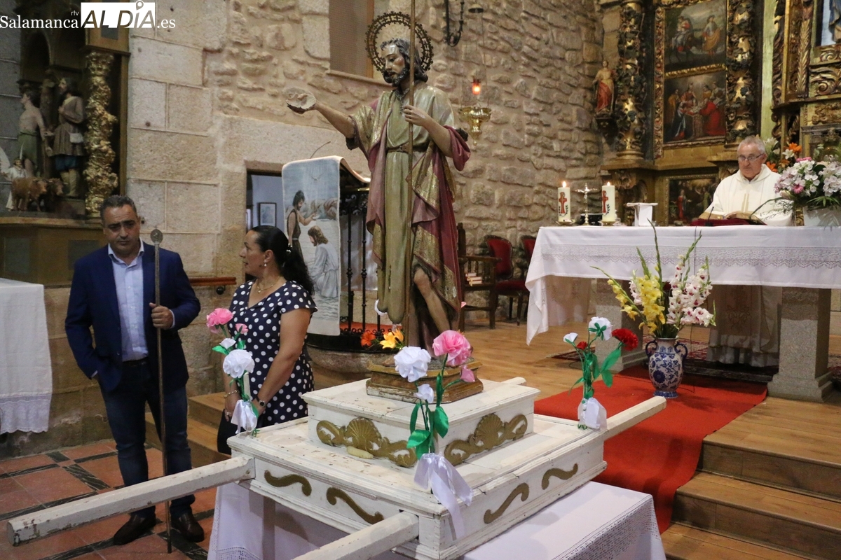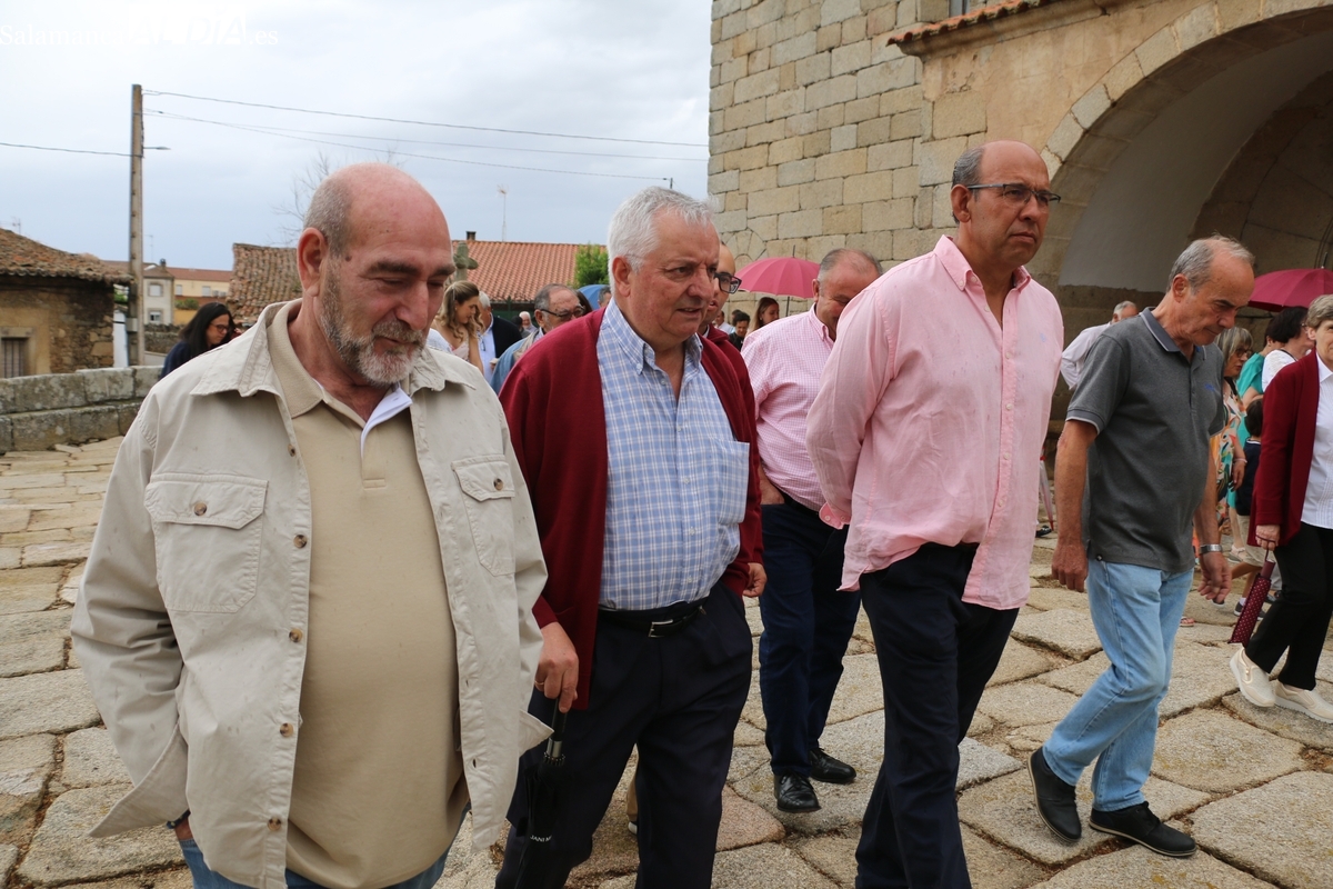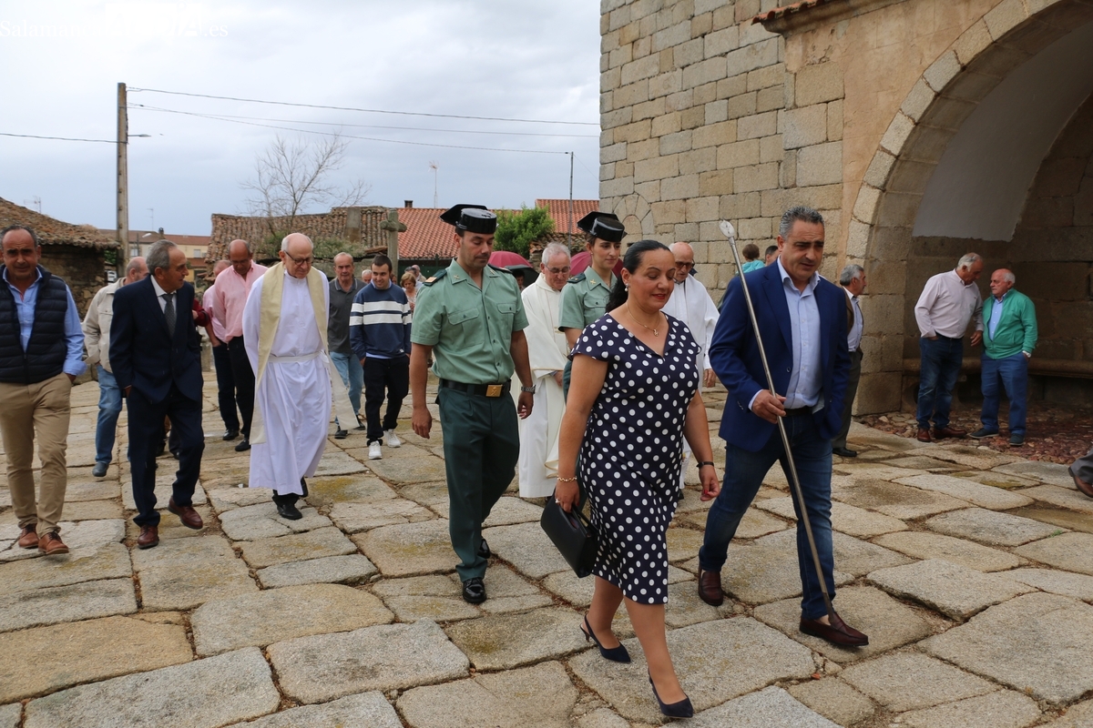Las celebraciones arrancaban este martes, día grande dedicado a San Juan Bautista, con los actos más solemnes. A las 12:00 horas, la iglesia parroquial acogía una misa concelebrada y oficiasda por el párroco Jesús Gutiérrez, a la que seguía la procesión, en esta ocasión alrededor de la iglesia ante la aparición de lluvia, lo que motivó que el ofertorio se celebrase también en el interior del templo, actos presididos por la Corporación municipal, con el alcalde, Javier Castro al frente empuñando la vara de mayordomo. Entre las autoridades presentes también estaba representada la Guardia Civil por medio de la teniente de la demarcación de Vitigudino, Irene Campanario, y el sargento del cuartel de Villavieja de Yeltes. Tanto la misa como la procesión estuvieron amenizadas por los sonidos de la gaita y el tamboril del tamborilero de Villavieja de Yeltes, Juan Vázquez.