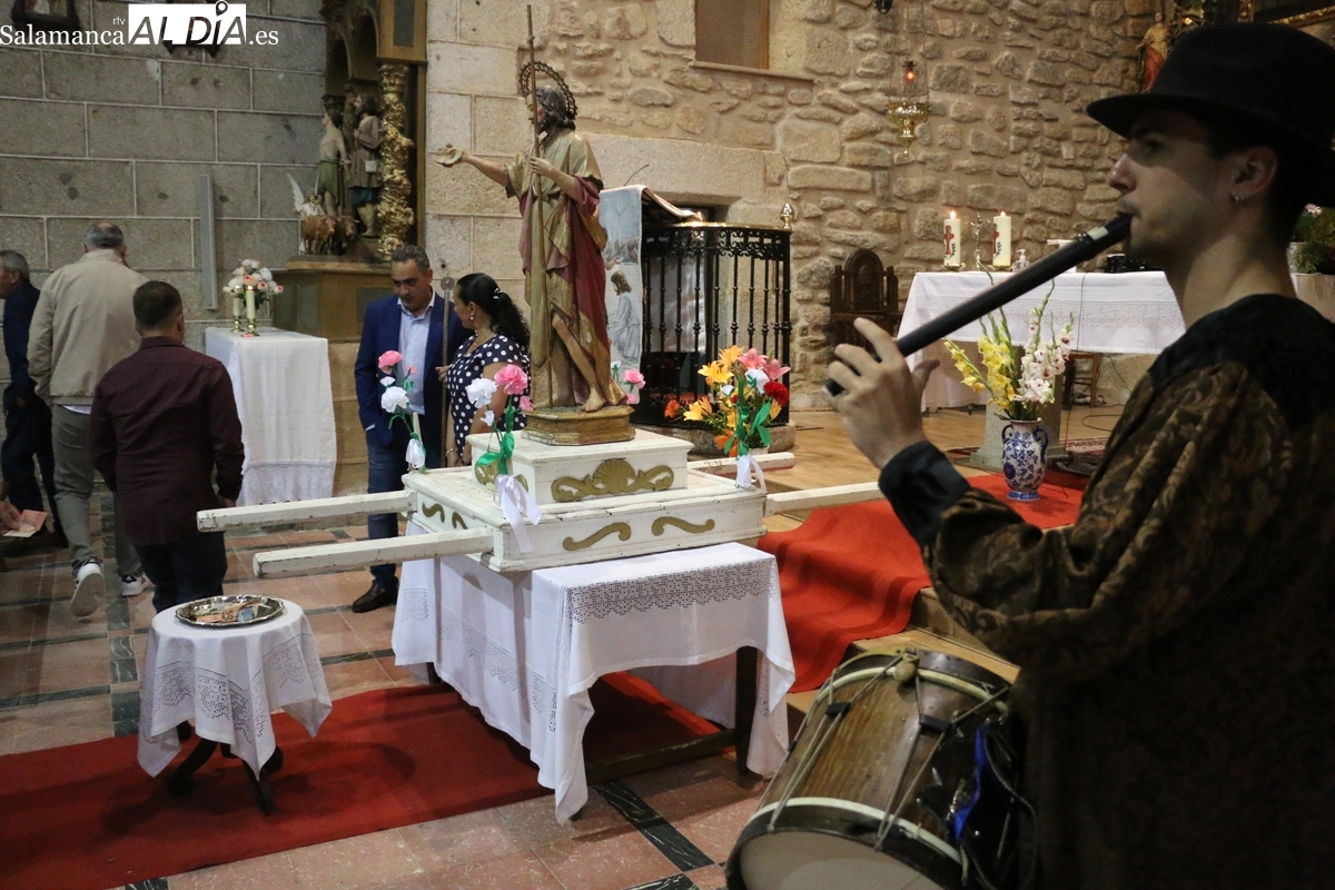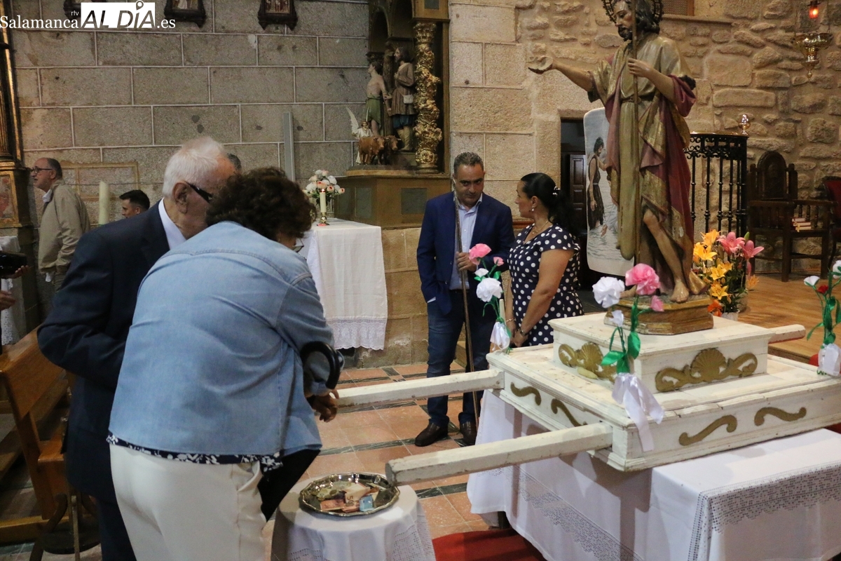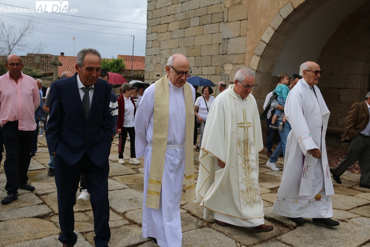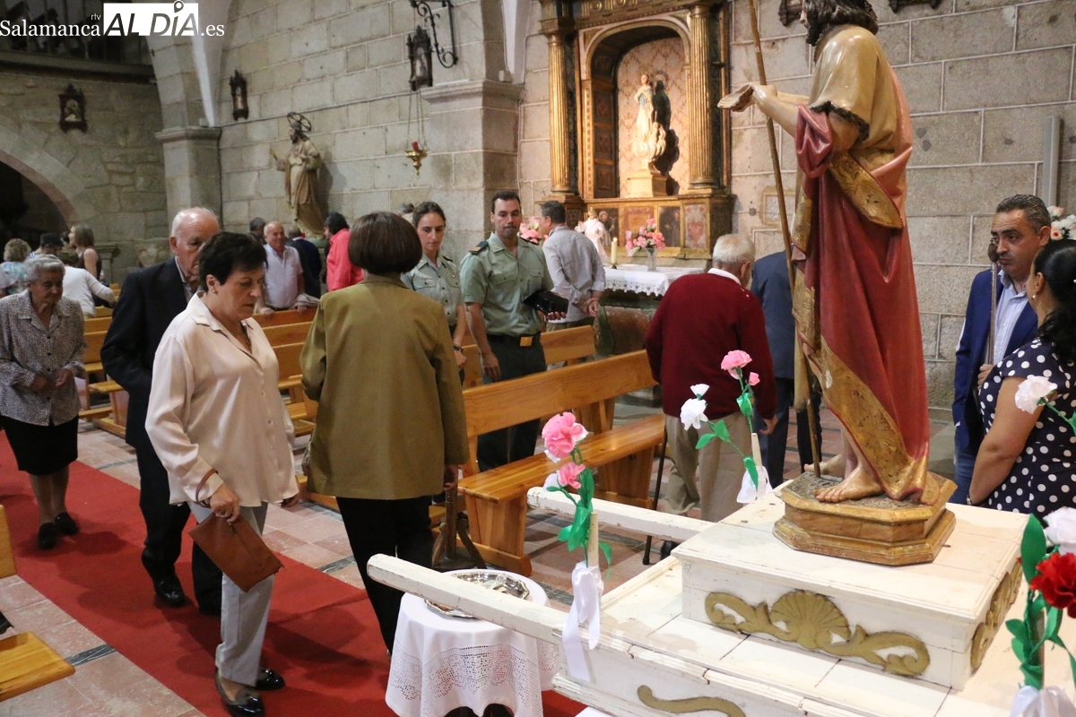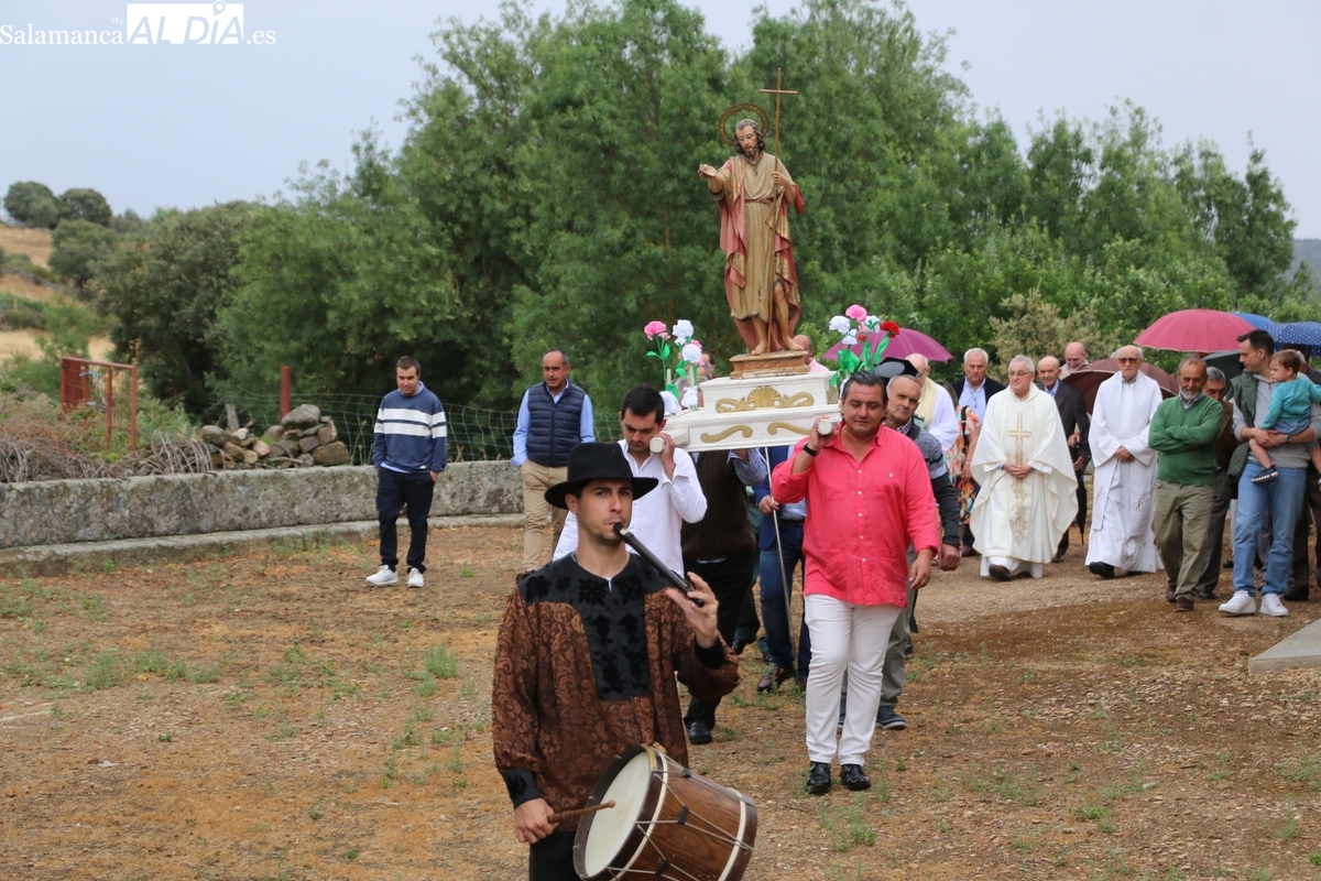 Las celebraciones arrancaban este martes, día grande dedicado a San Juan Bautista, con los actos más solemnes. A las 12:00 horas, la iglesia parroquial acogía una misa concelebrada y oficiasda por el párroco Jesús Gutiérrez, a la que seguía la procesión, en esta ocasión alrededor de la iglesia ante la aparición de lluvia, lo que motivó que el ofertorio se celebrase también en el interior del templo, actos presididos por la Corporación municipal, con el alcalde, Javier Castro al frente empuñando la vara de mayordomo. Entre las autoridades presentes también estaba representada la Guardia Civil por medio de la teniente de la demarcación de Vitigudino, Irene Campanario, y el sargento del cuartel de Villavieja de Yeltes. Tanto la misa como la procesión estuvieron amenizadas por los sonidos de la gaita y el tamboril del tamborilero de Villavieja de Yeltes, Juan Vázquez.