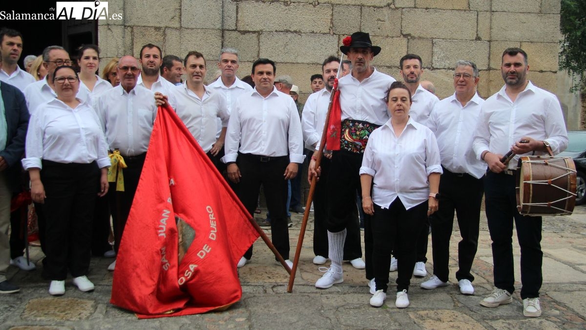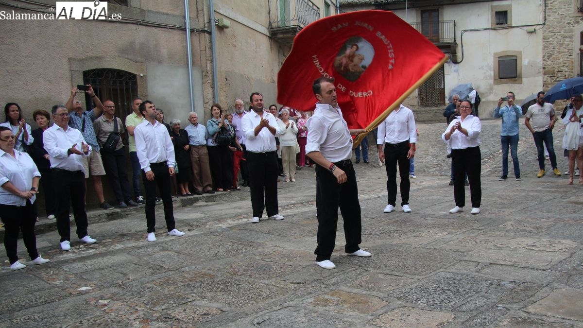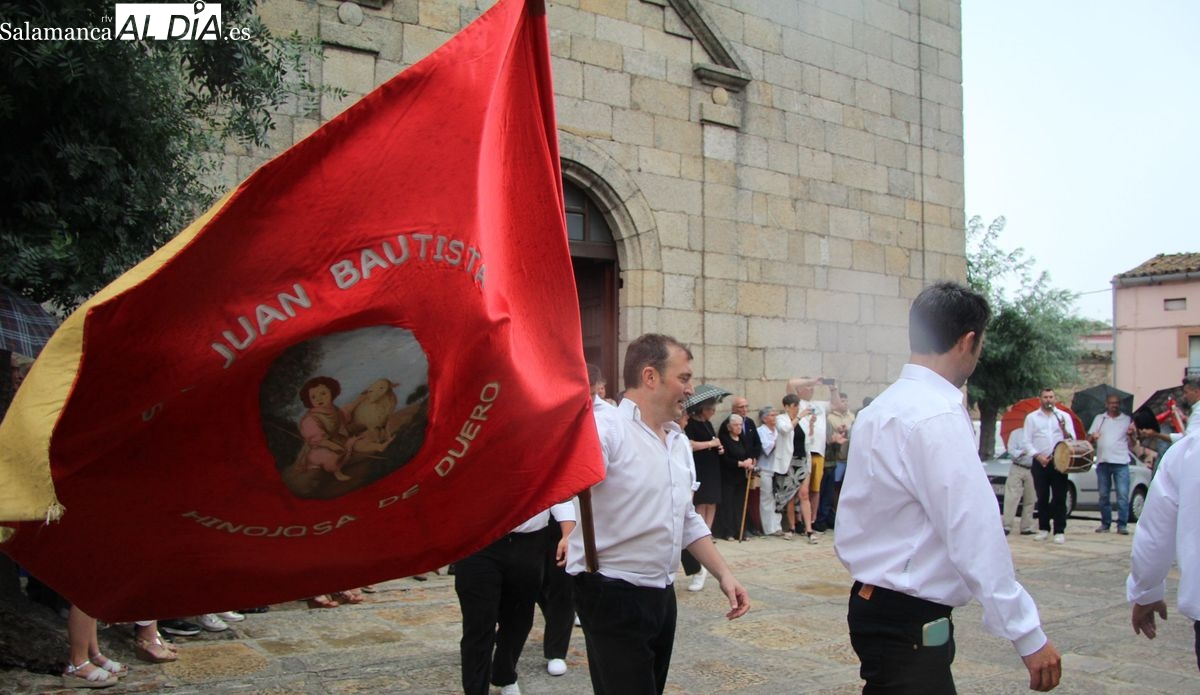 La bandera, símbolo de la victoria del pueblo de Hinojosa de Duero frente a la tiranía del feudal, ha ondeado con más vigor que nunca hoy, día de San Juan, impulsada no solo por el fuerte viento reinante, sino también por la fuerza mental, la ilusión y el compromiso con la tradición del abanderado, José Manuel Bautista, y el grupo de vecinos de Hinojosa que se han involucrado (a falta de mayordomos) para 'echar la bandera' un año más en las fiestas de San Juan.