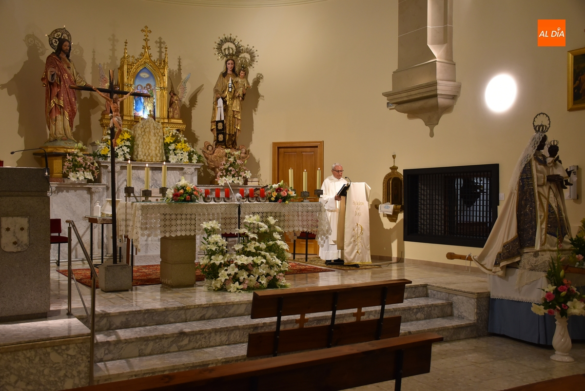 Esta primera sesión del Triduo fue presidida por el capellán de las Carmelitas, Manolo Peláez, quién tuvo justo delante la imagen de la Virgen que acercaron hace unos días desde la Ermita del Alto de Valhondo los romeros, que asistieron en un aceptable número (junto a otros devotos de la Virgen Morena) a esta sesión inicial, que estuvo dedicada a María, Madre de la Iglesia.