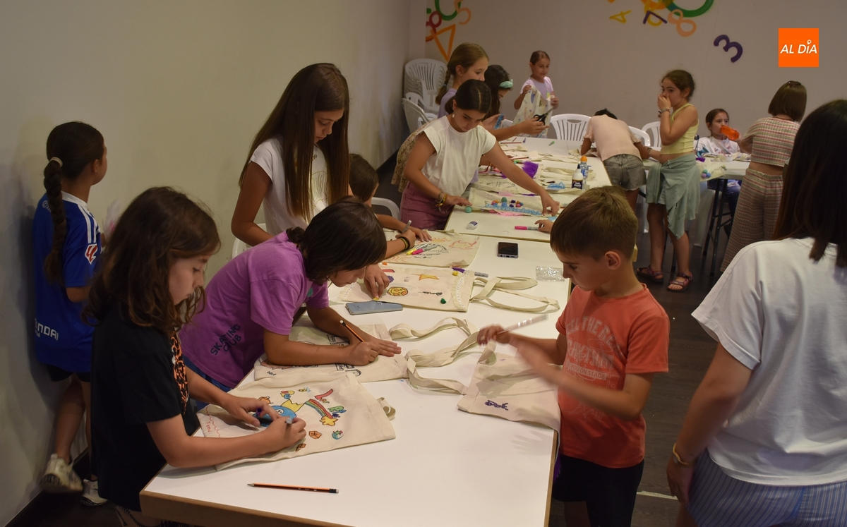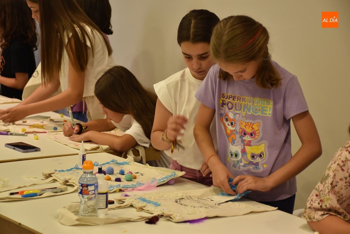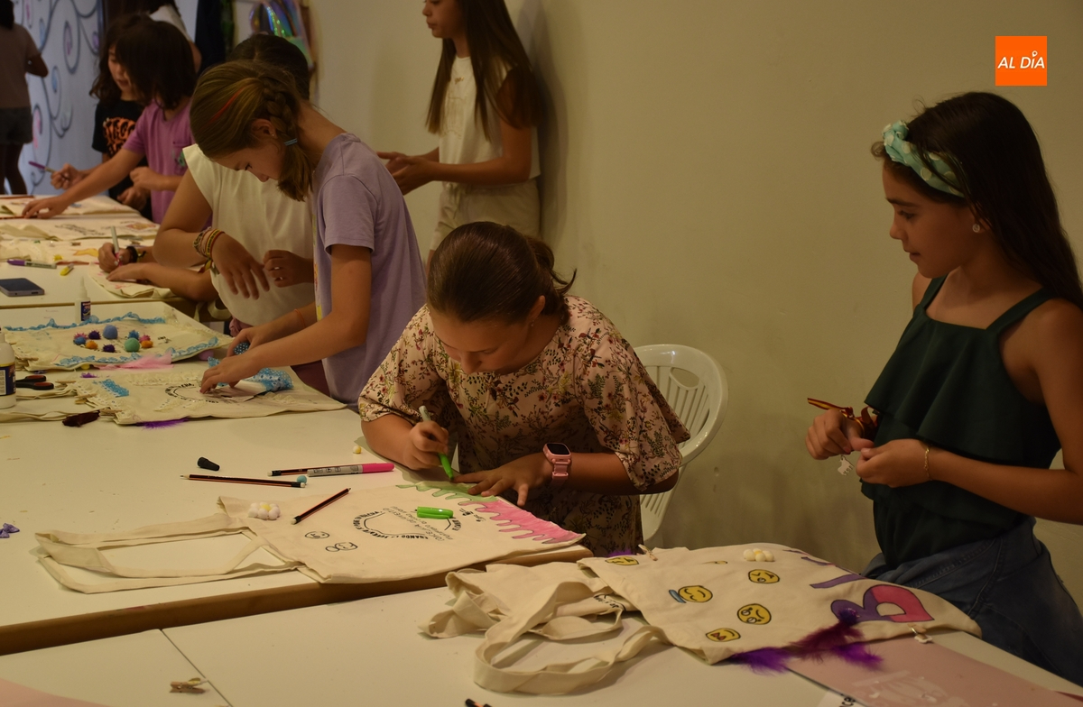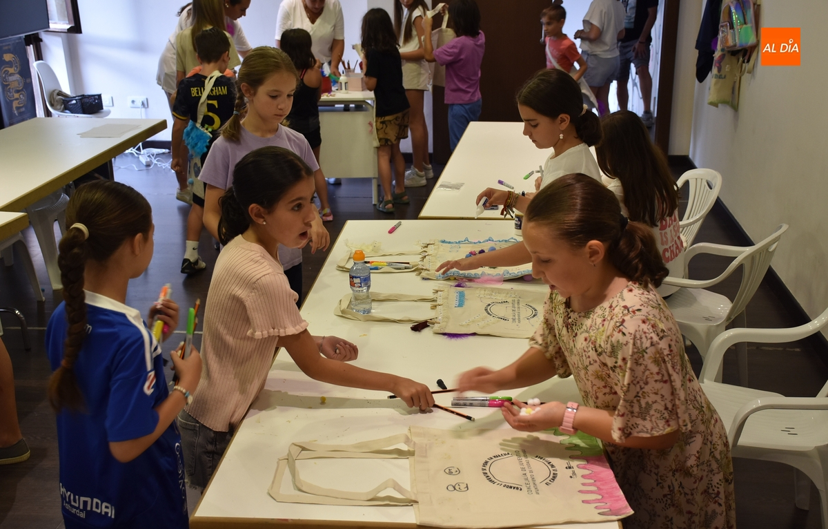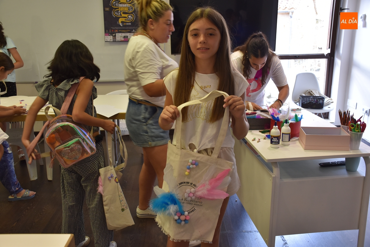 Una treintena de chavales tomó parte en la tarde del martes en el taller de decoración de tote bags promovido por las concejalías de Infancia y Juventud del Ayuntamiento de Ciudad Rodrigo, cuyas delegadas, Paola Martín Muñoz y Ana María Castaño, participaron de forma activa en la cita.