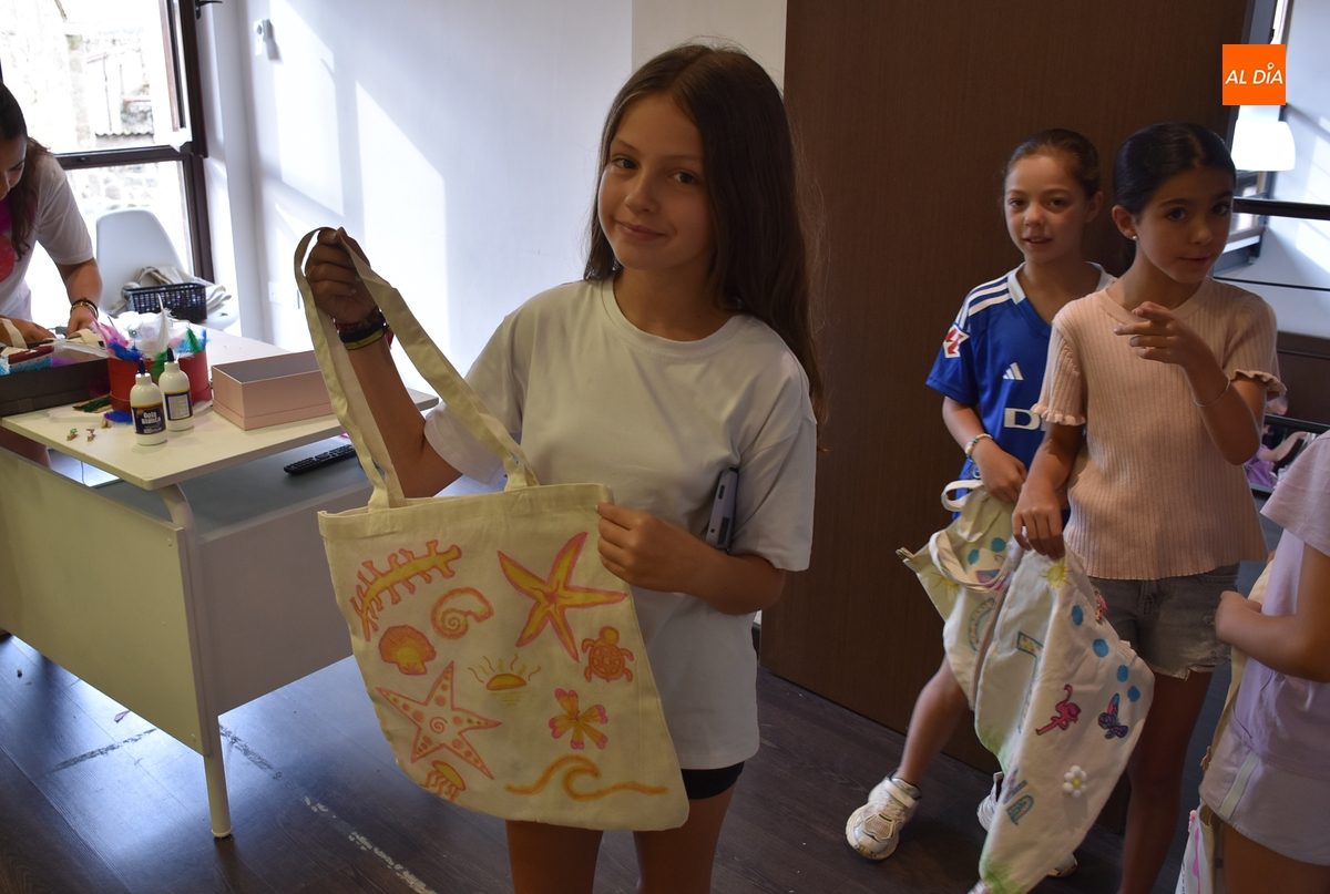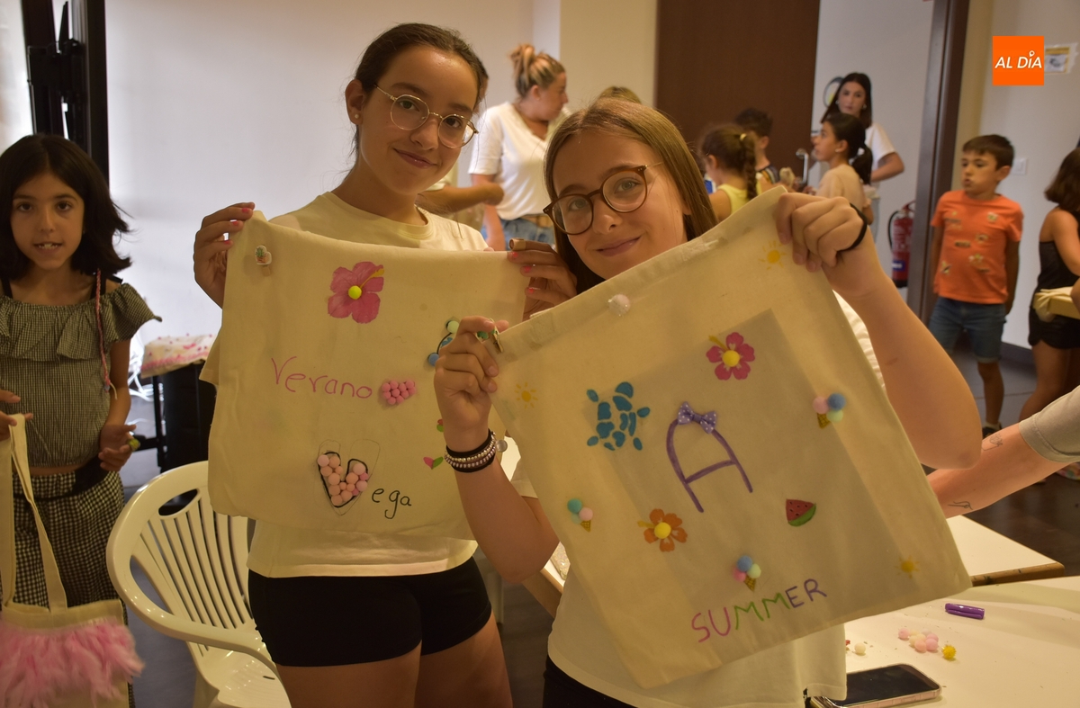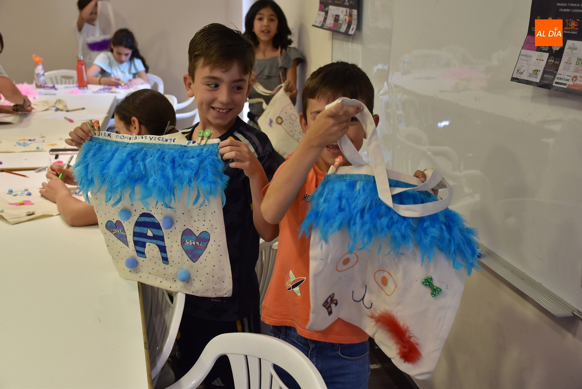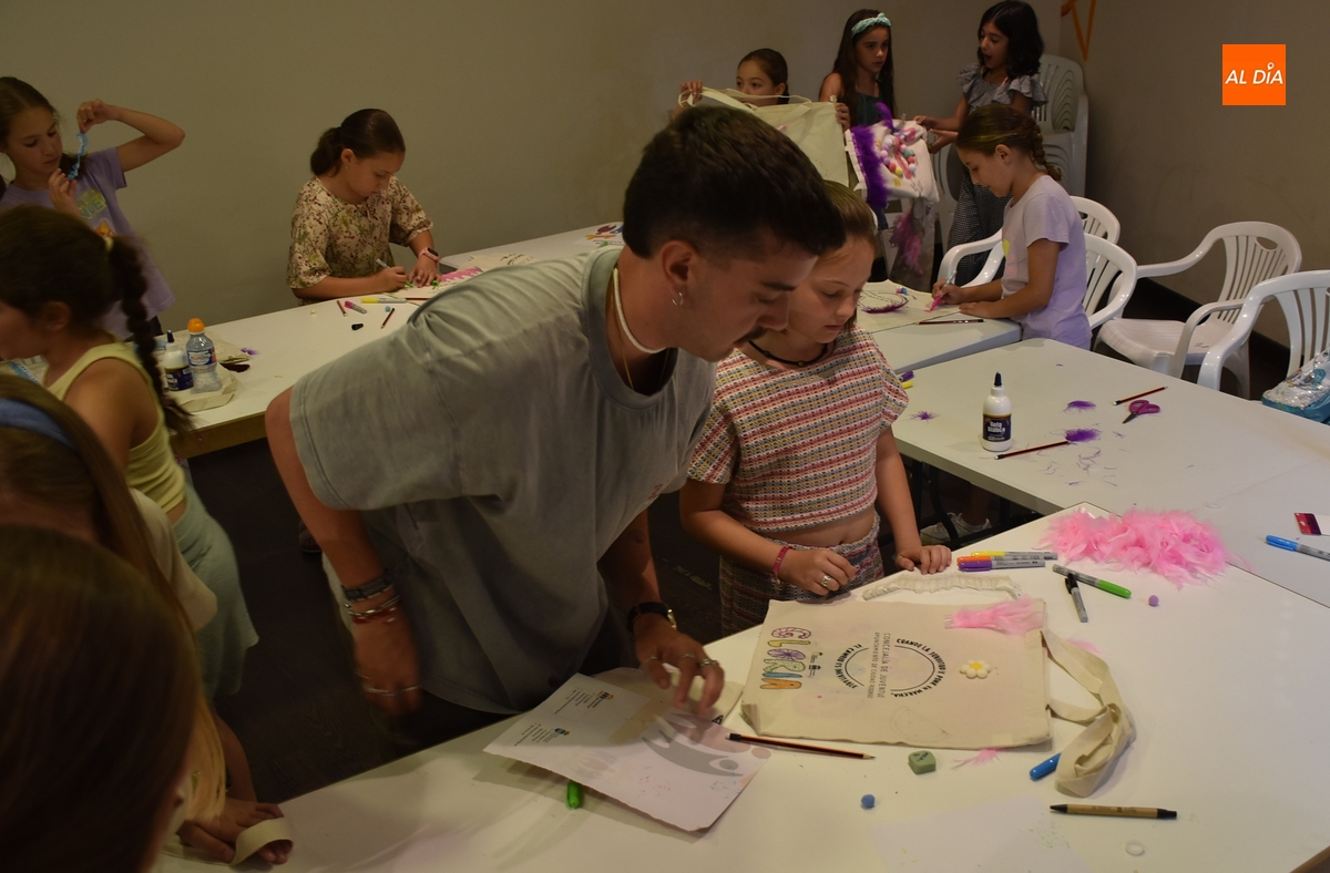 Una treintena de chavales tomó parte en la tarde del martes en el taller de decoración de tote bags promovido por las concejalías de Infancia y Juventud del Ayuntamiento de Ciudad Rodrigo, cuyas delegadas, Paola Martín Muñoz y Ana María Castaño, participaron de forma activa en la cita.