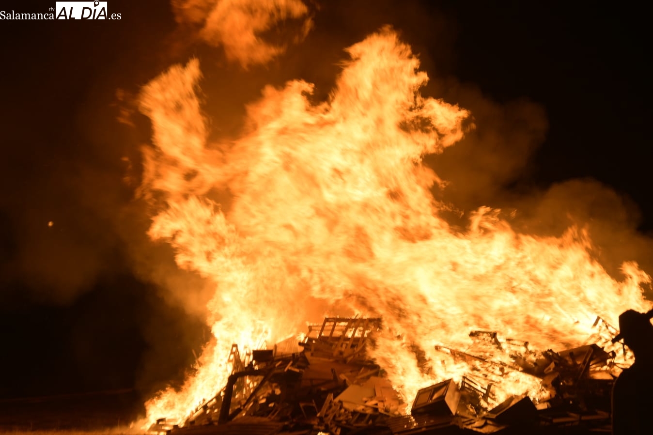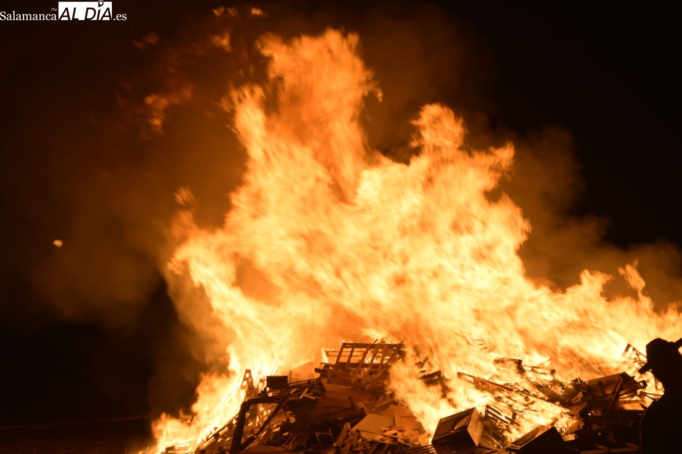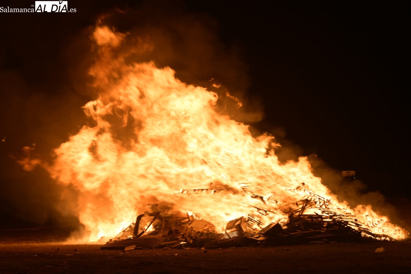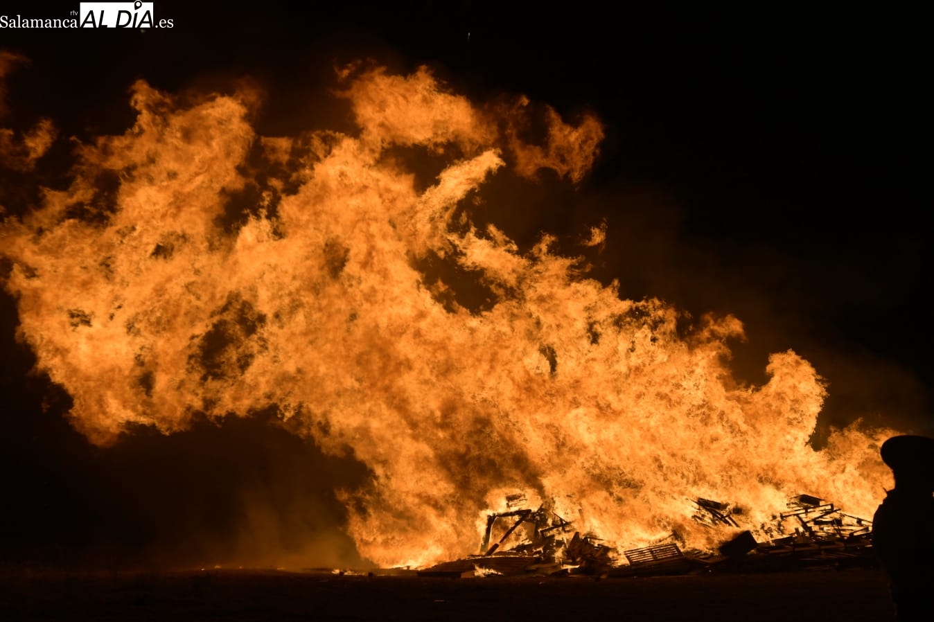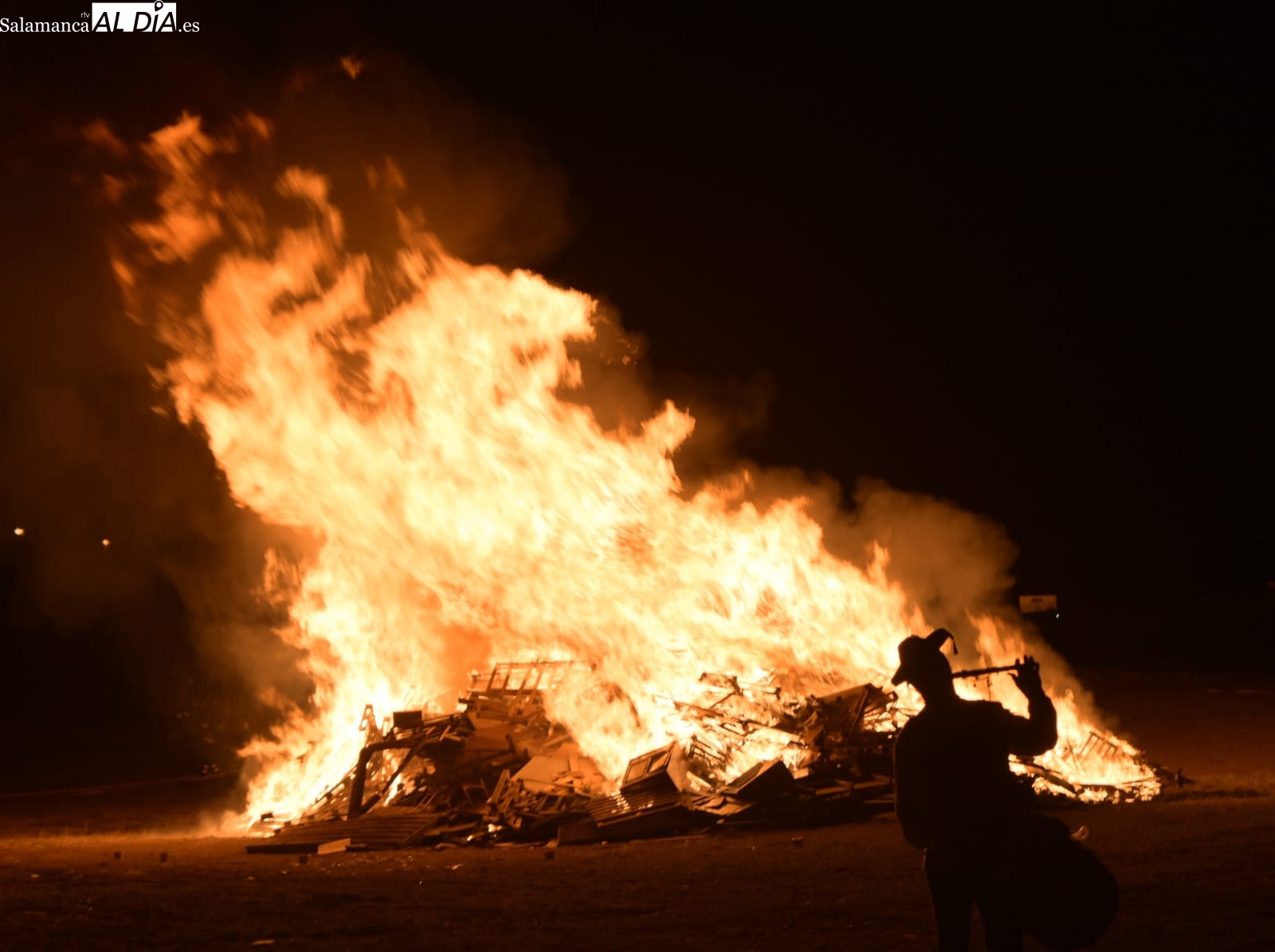 La celebración arrancó a las 23:00 horas con la propuesta musical de la orquesta SMS, que vio condicionada su actuación por la tormenta que se desató tras la hoguera. Poco antes de la medianoche, el folclore charro tomó el protagonismo con la actuación de Ángel Rufino de Haro, 'El Mariquelo'. Al filo de las 00:00 horas, con la llegada del 24 de junio, se procedió a la quema de la hoguera, momento culminante de la velada. Para garantizar la seguridad de los asistentes, el Ayuntamiento había acotado previamente el perímetro y desplegó un dispositivo con efectivos de la Policía Local y Bomberos. Posteriormente, una vez que las condiciones de seguridad lo permitieron, el Consistorio llevó a cabo las labores de recogida de los restos de la hoguera.