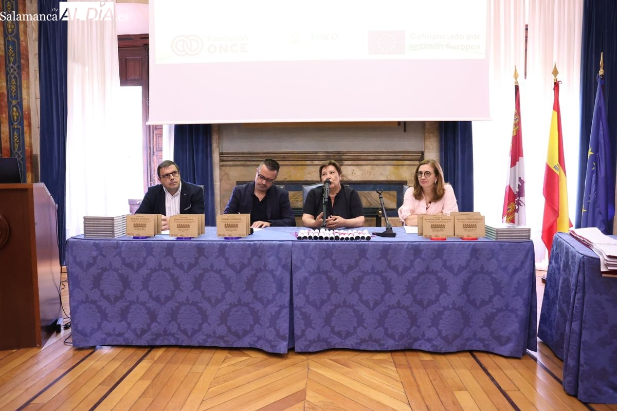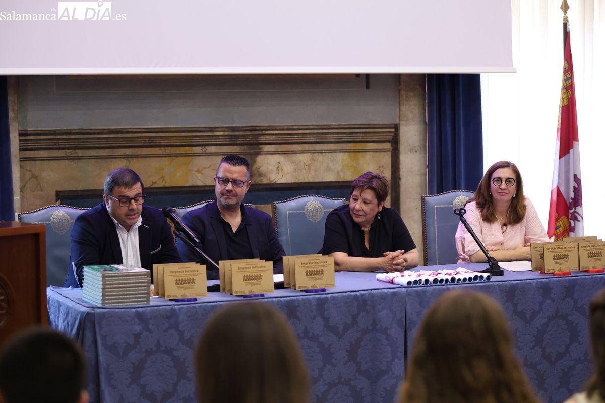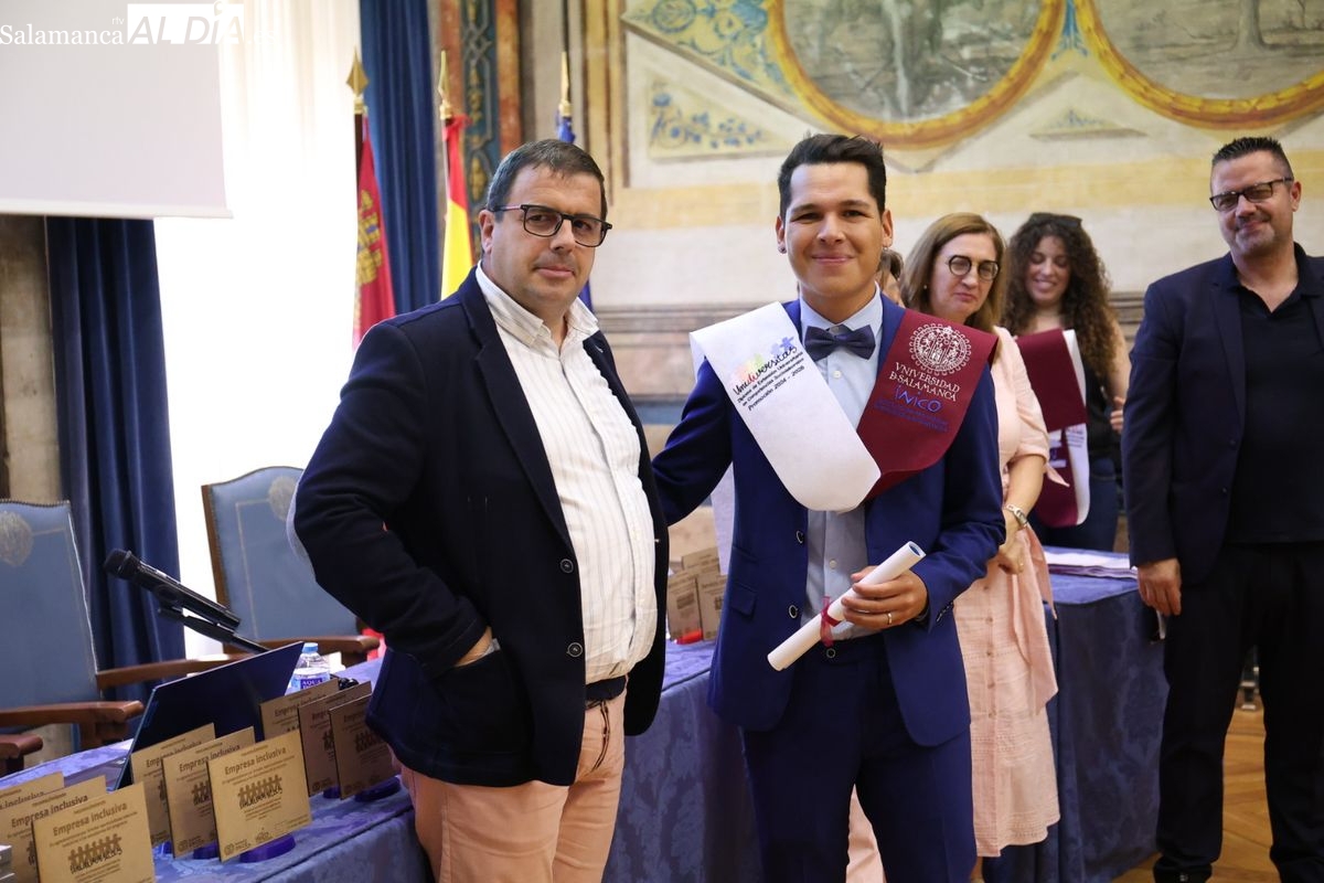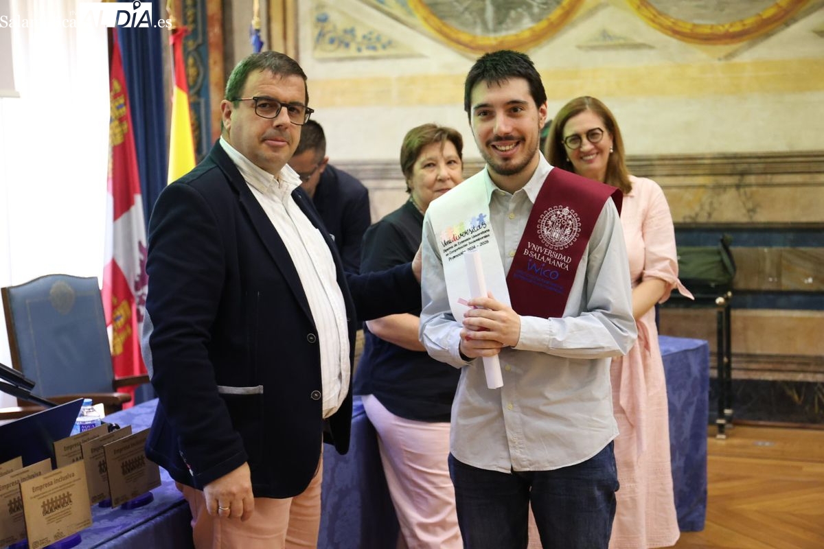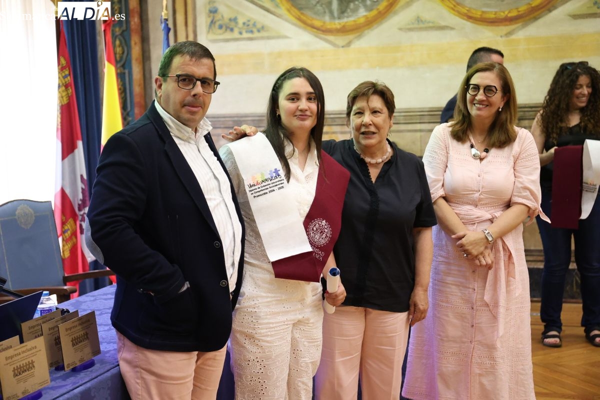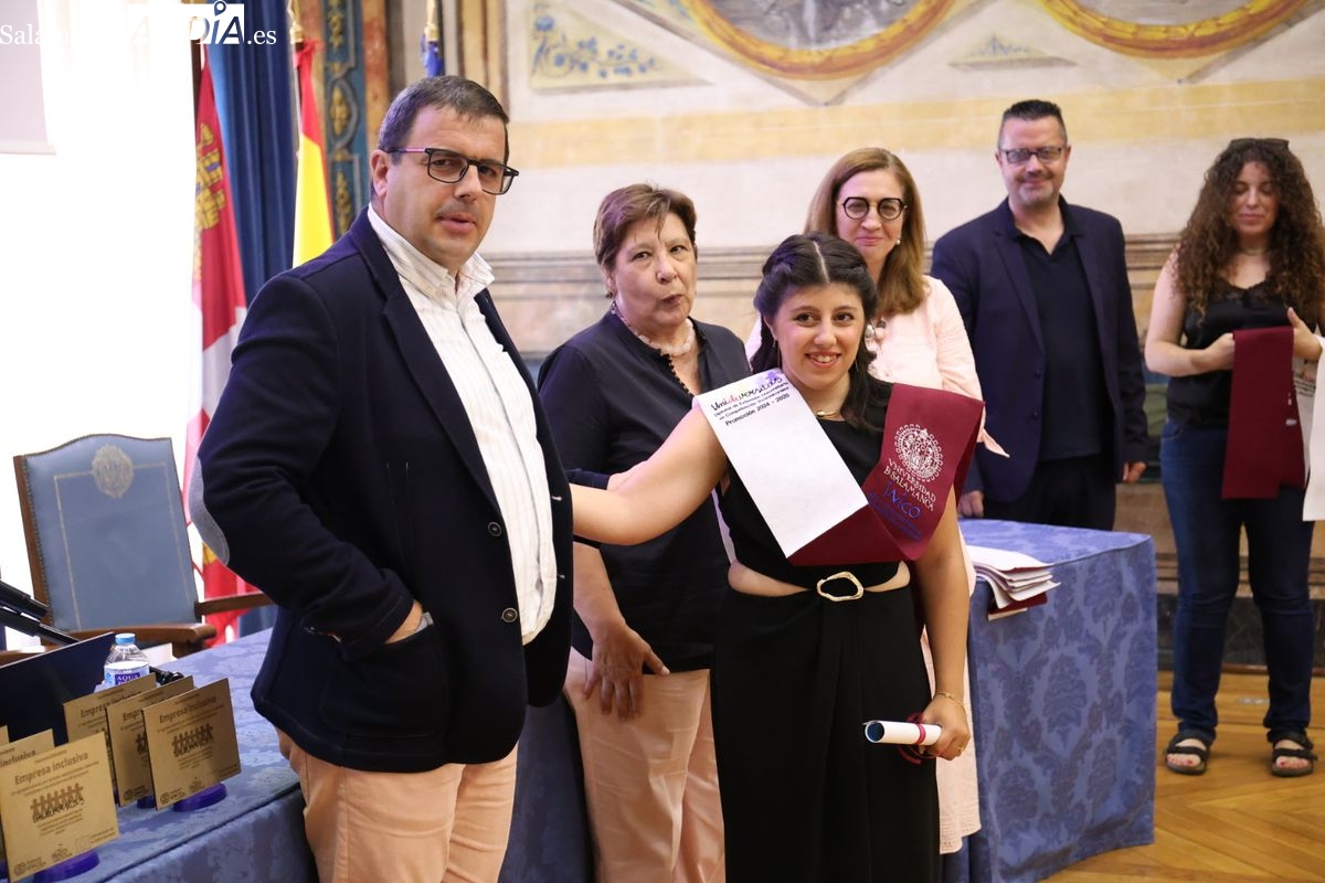 El evento ha contado con la presencia de Emiliano Díez, director del Instituto Universitario de Integración en la Comunidad (INICO) y también director del título propio UNIdiVERSITAS. Junto a él, Isabel Martínez Lozano, directora de programas con universidades y promoción del Talento Joven de Fundación ONCE, entidad financiadora, así como José Manuel García Mateos, director de Operaciones del Grupo Limcasa, mostrando el apoyo del tejido empresarial.