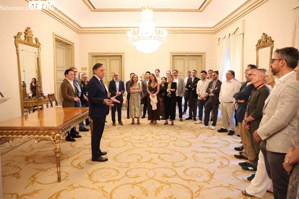El alcalde de Salamanca, Carlos García Carbayo, ha ejercido de anfitrión en el Salón de Recepciones del Ayuntamiento para dar la bienvenida a una representación de los participantes del Salamanca Tech Summit. Este encuentro subraya el compromiso municipal con un evento que, en su segunda edición, consolida a la ciudad como un referente en el ámbito tecnológico.