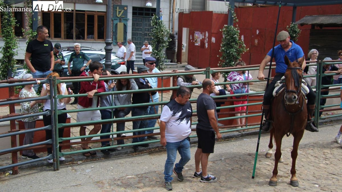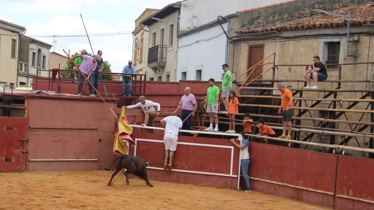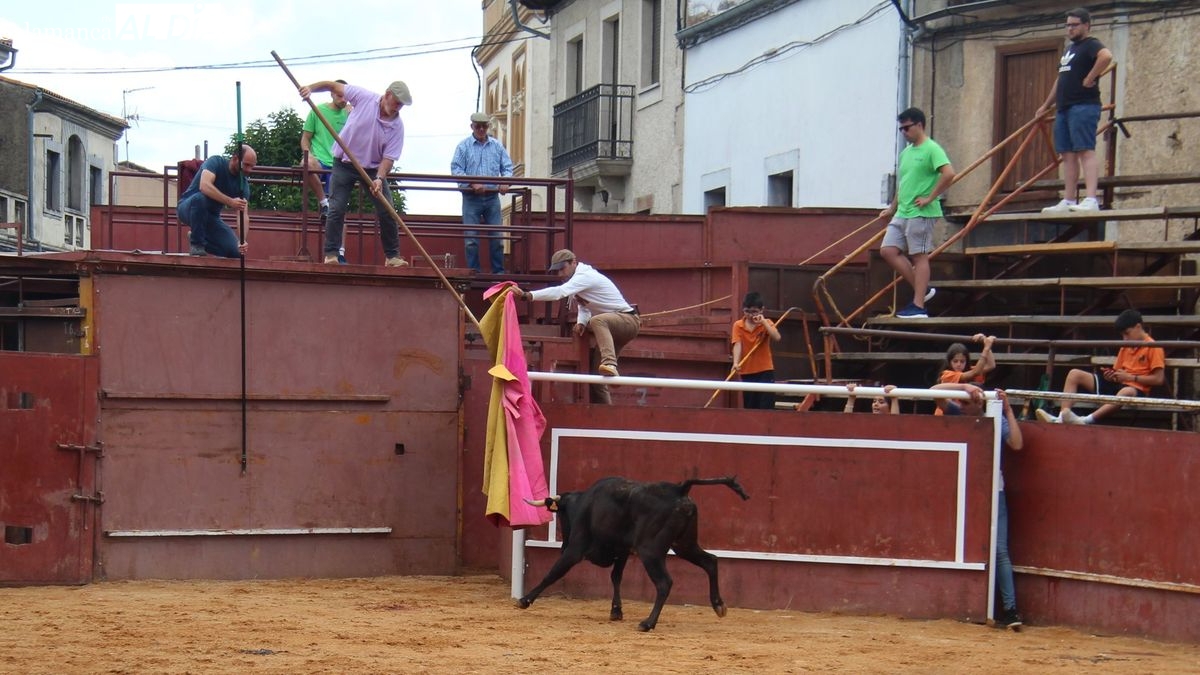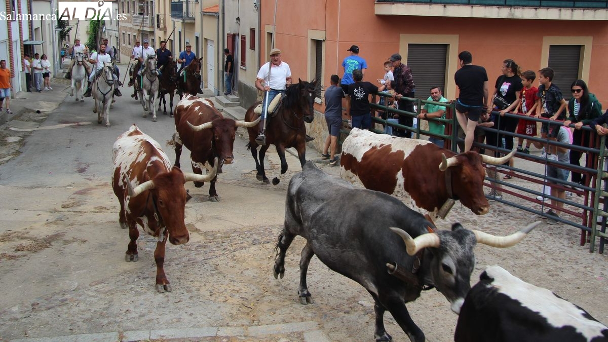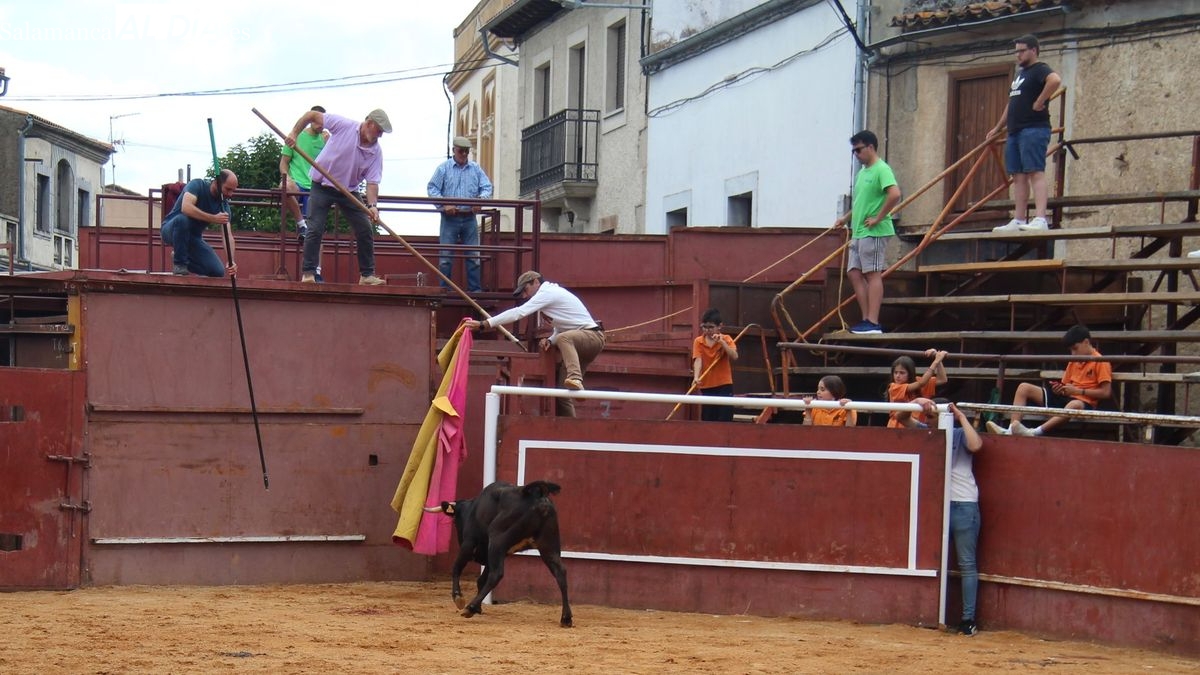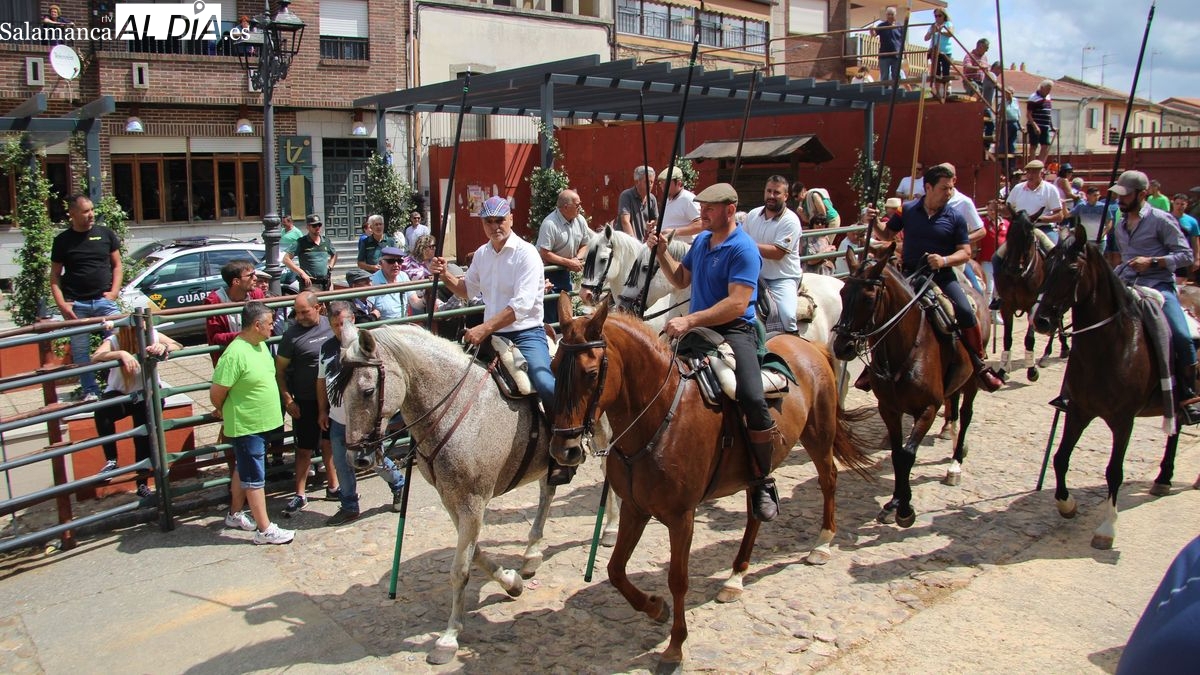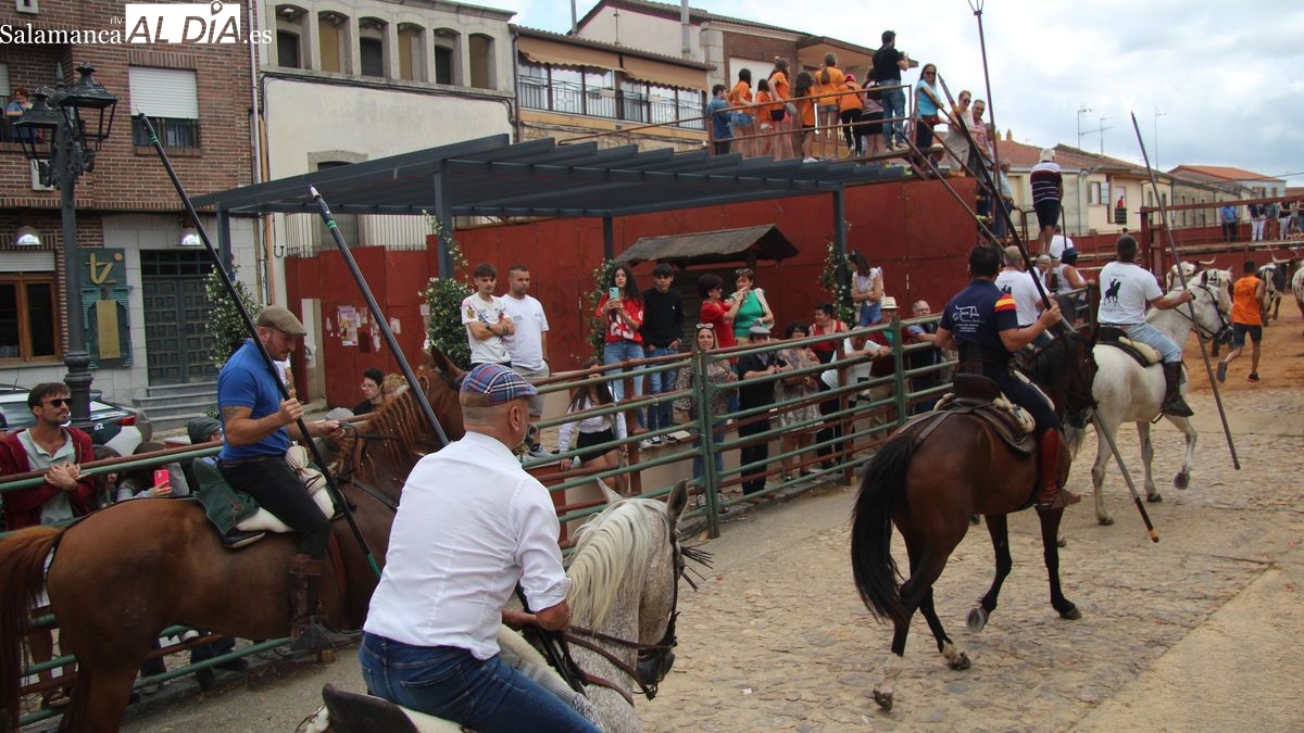 Un encierro a caballo de tres añojos y la suelta de vaquillas abrieron la jornada festiva que se despedirá con una clase práctica de toreo de los alumnos de la escuela de tauromaquia de Salamanca