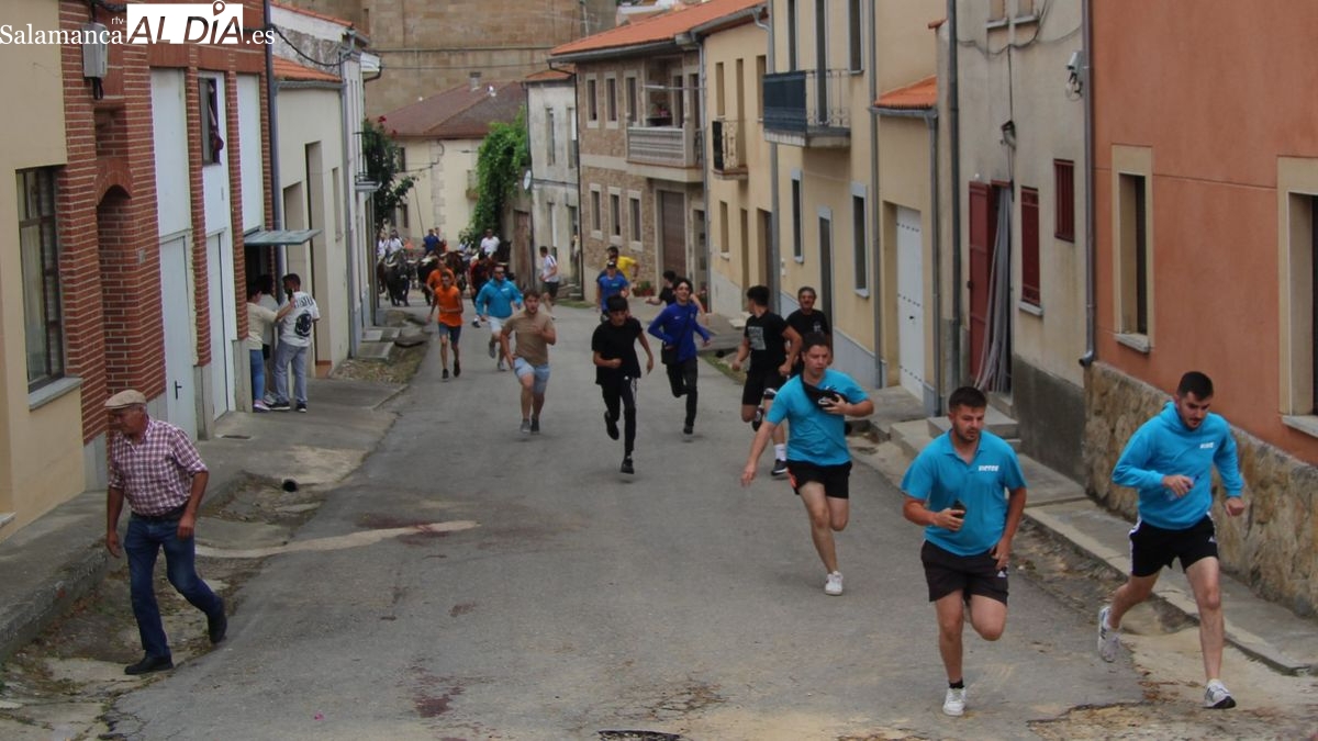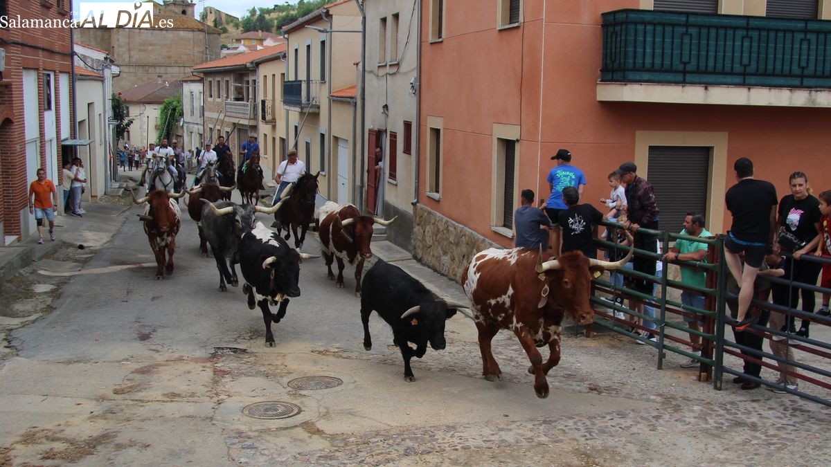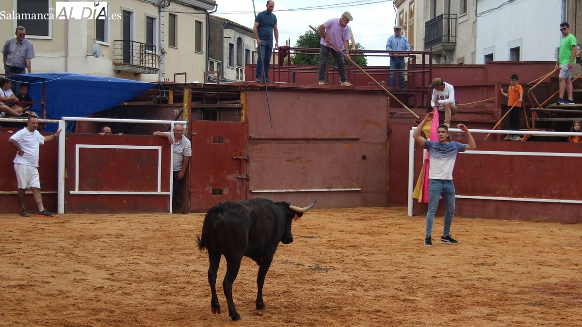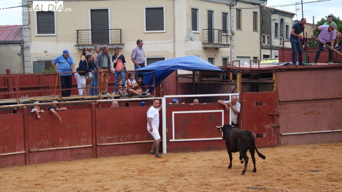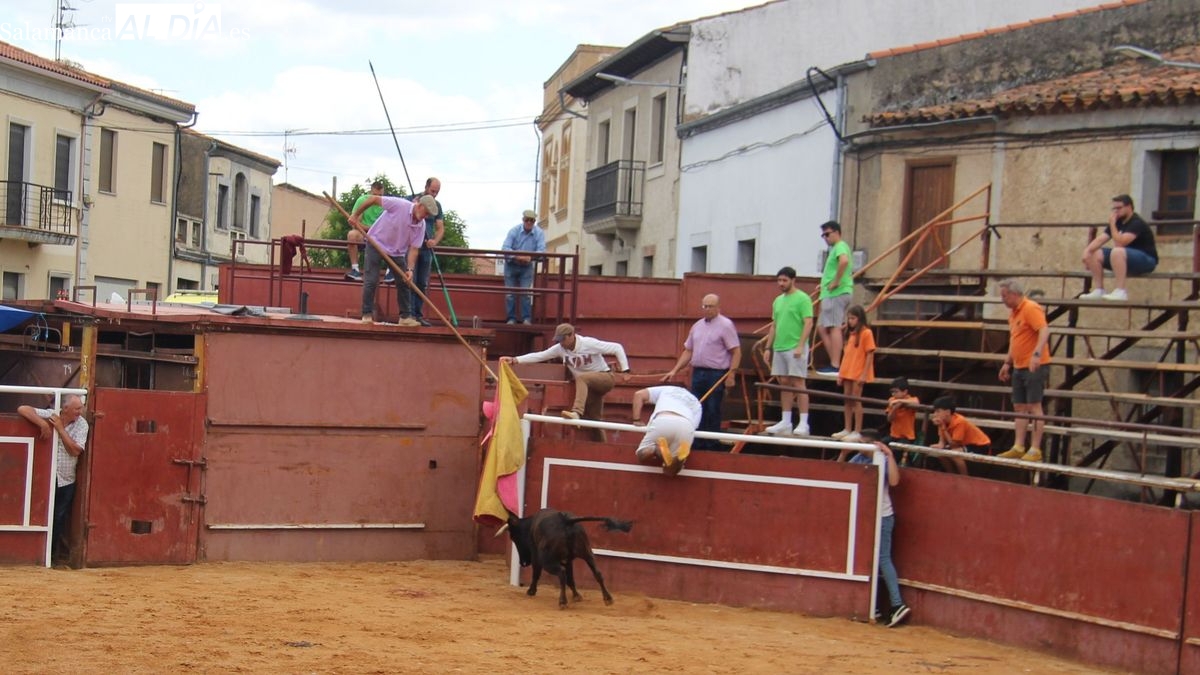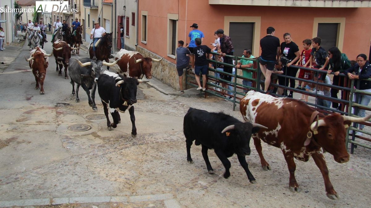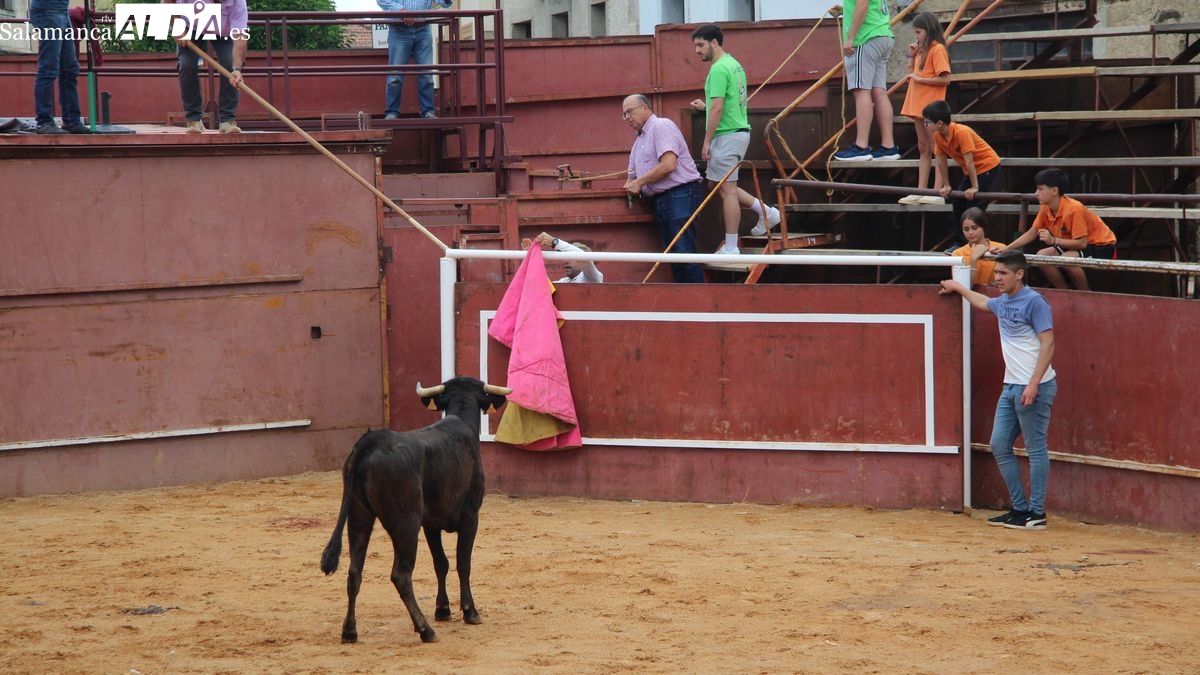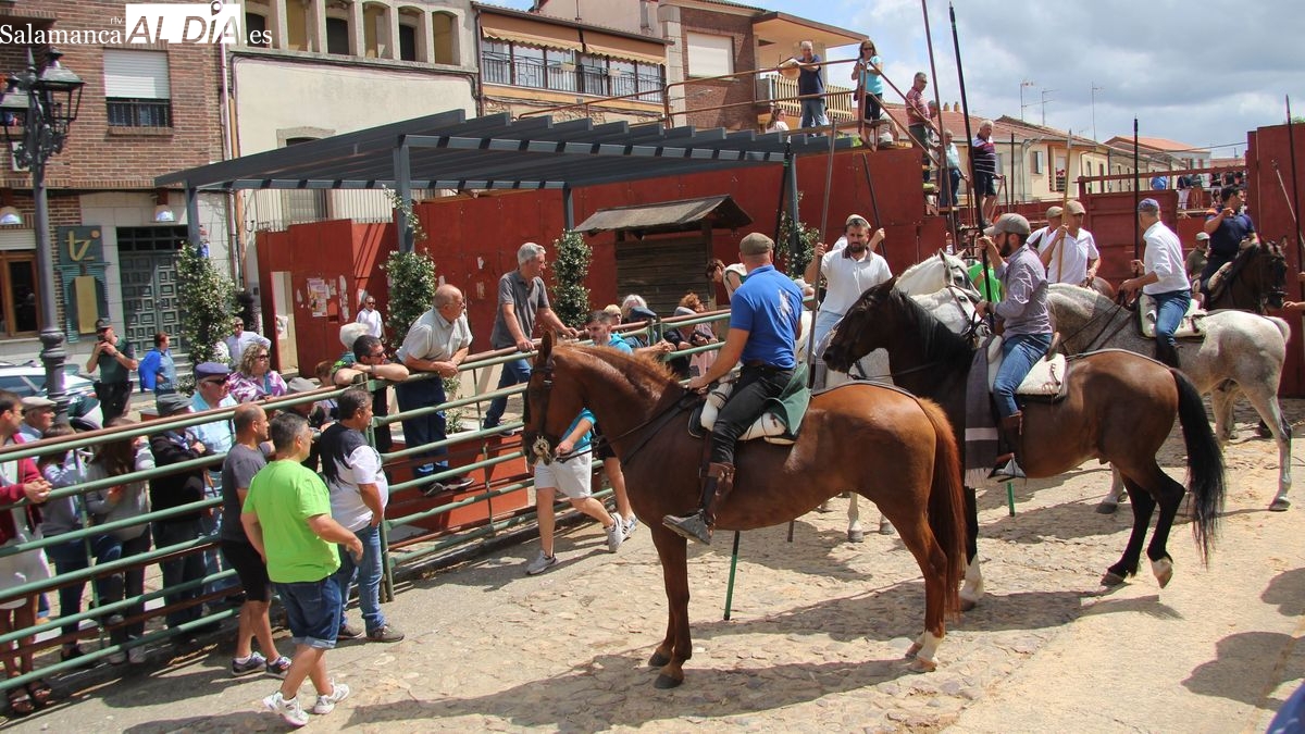 Un encierro a caballo de tres añojos y la suelta de vaquillas abrieron la jornada festiva que se despedirá con una clase práctica de toreo de los alumnos de la escuela de tauromaquia de Salamanca