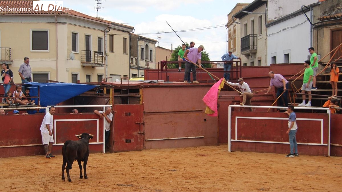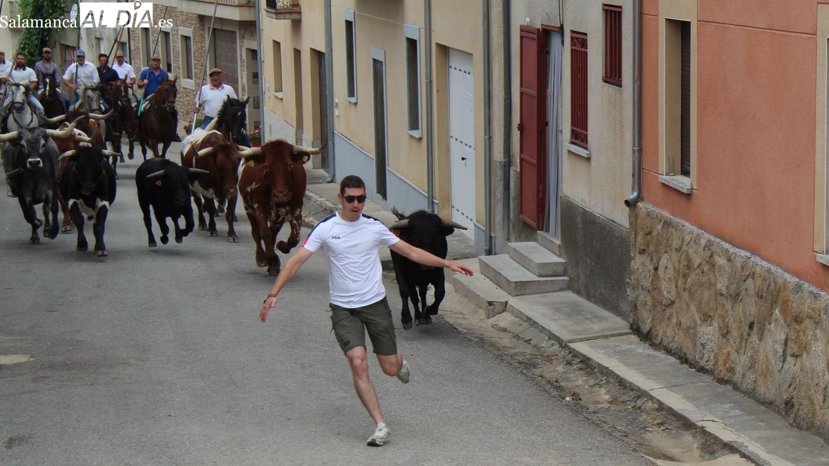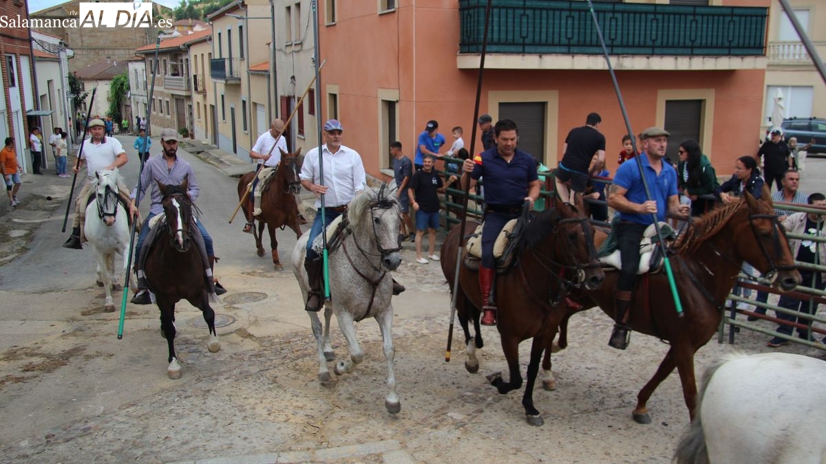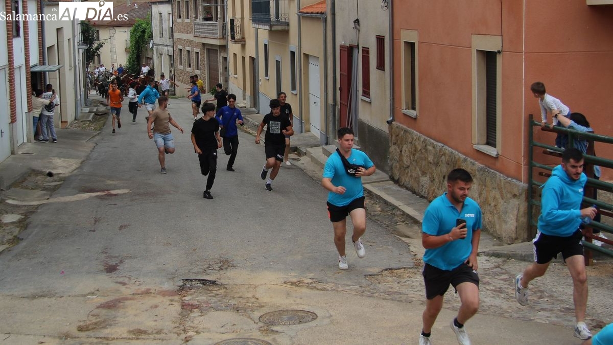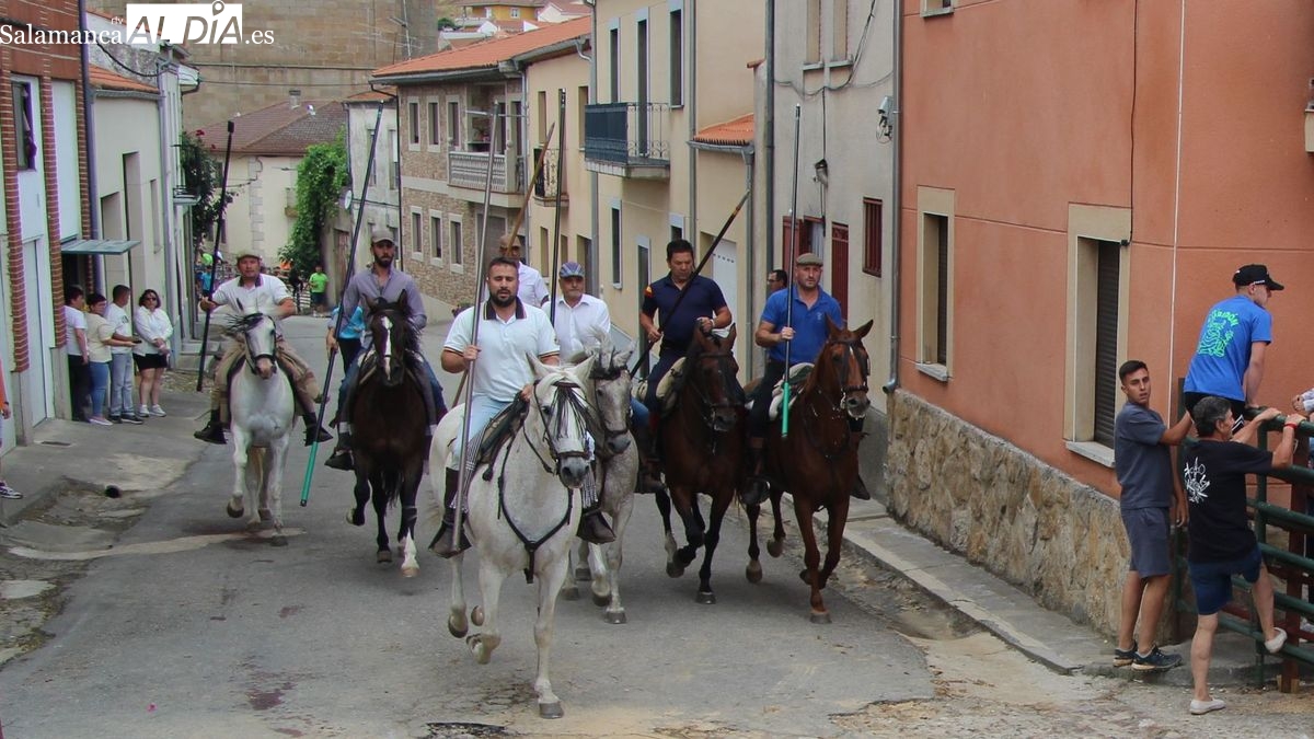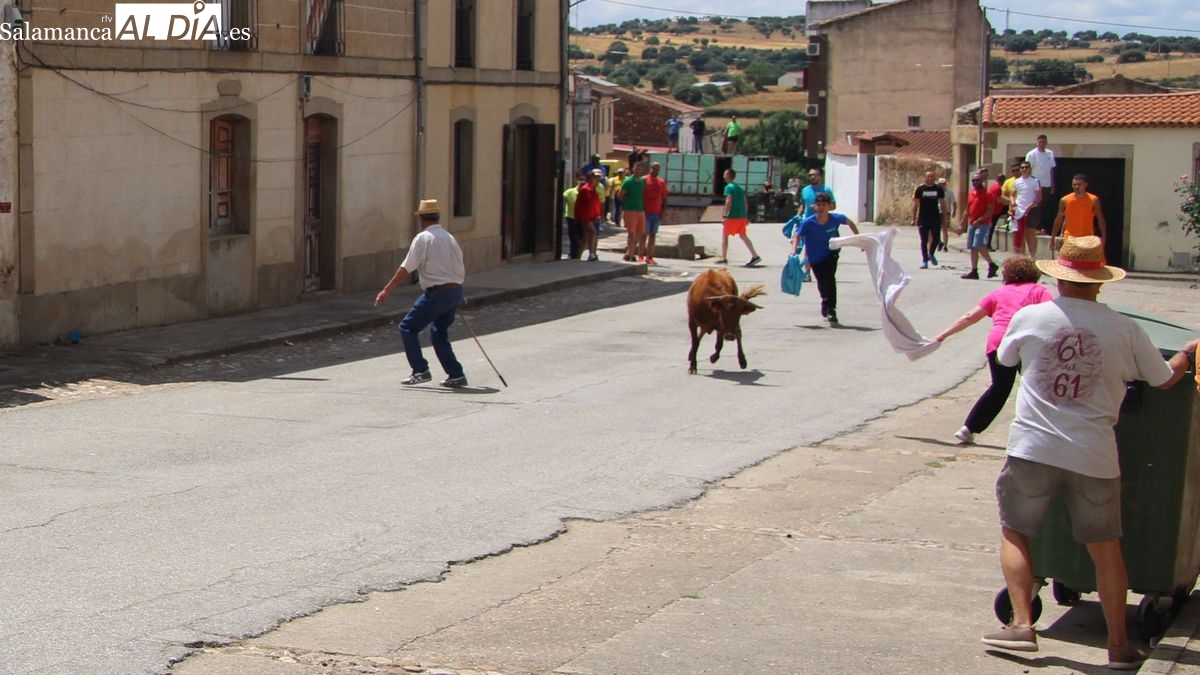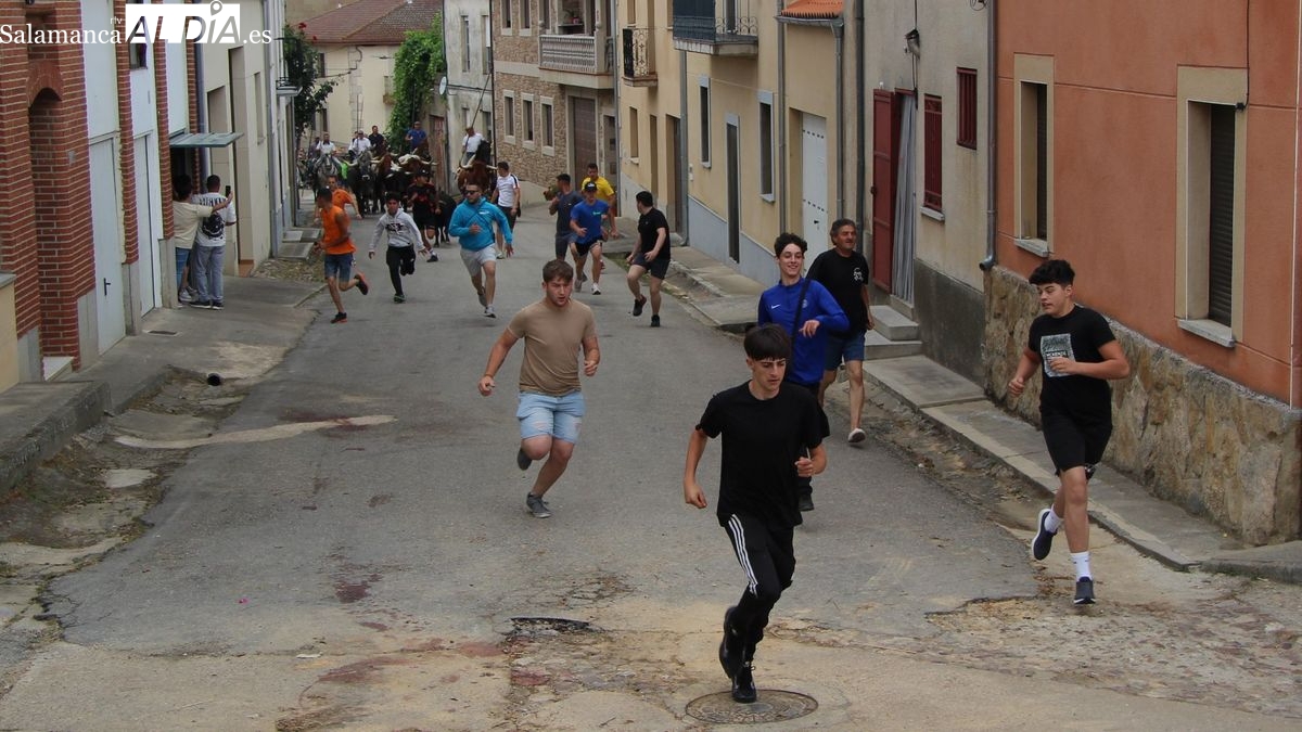 Un encierro a caballo de tres añojos y la suelta de vaquillas abrieron la jornada festiva que se despedirá con una clase práctica de toreo de los alumnos de la escuela de tauromaquia de Salamanca