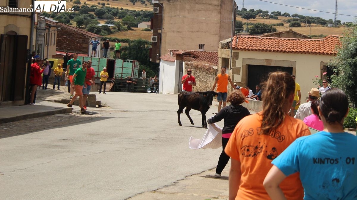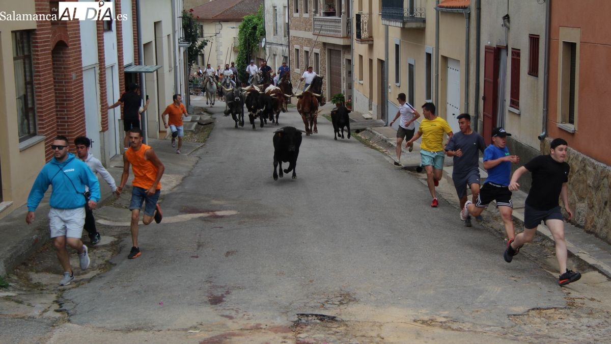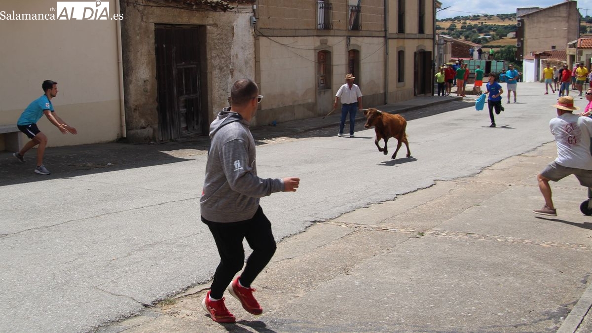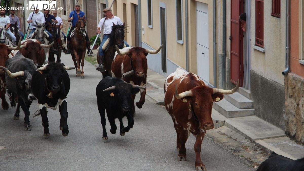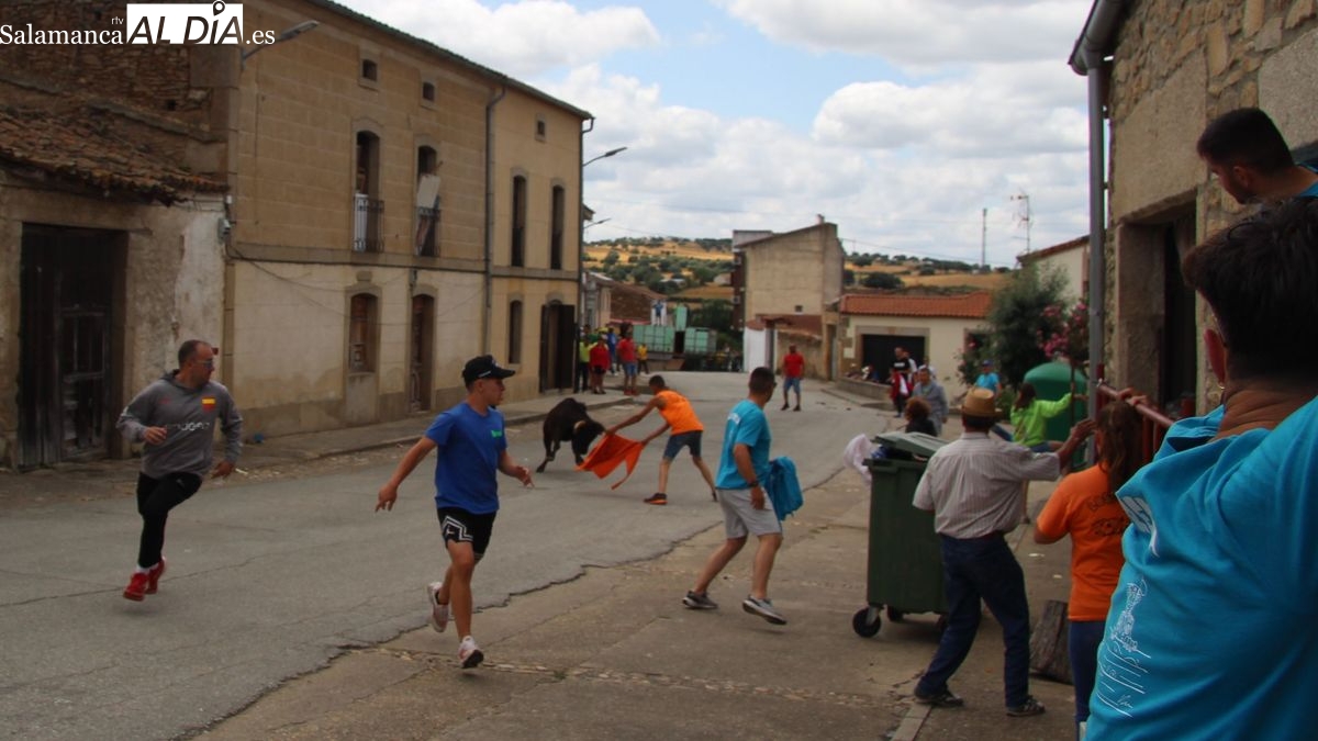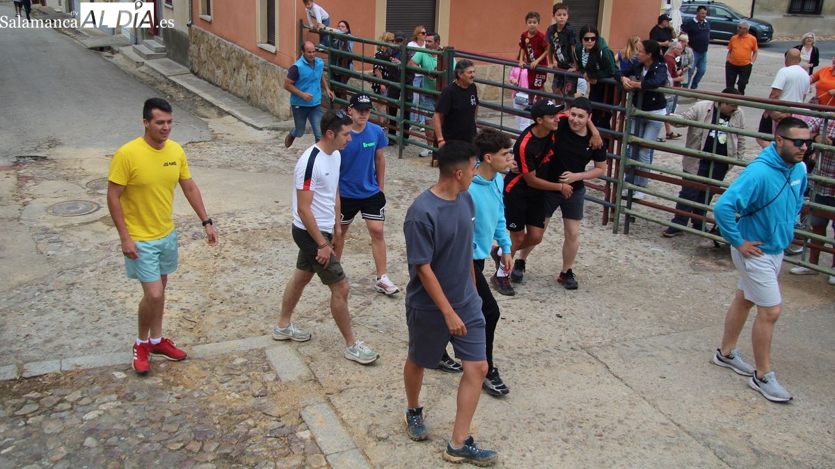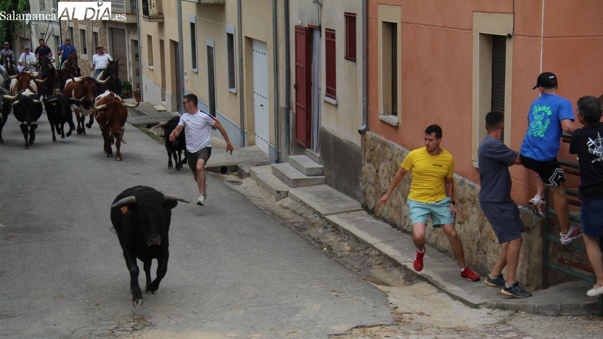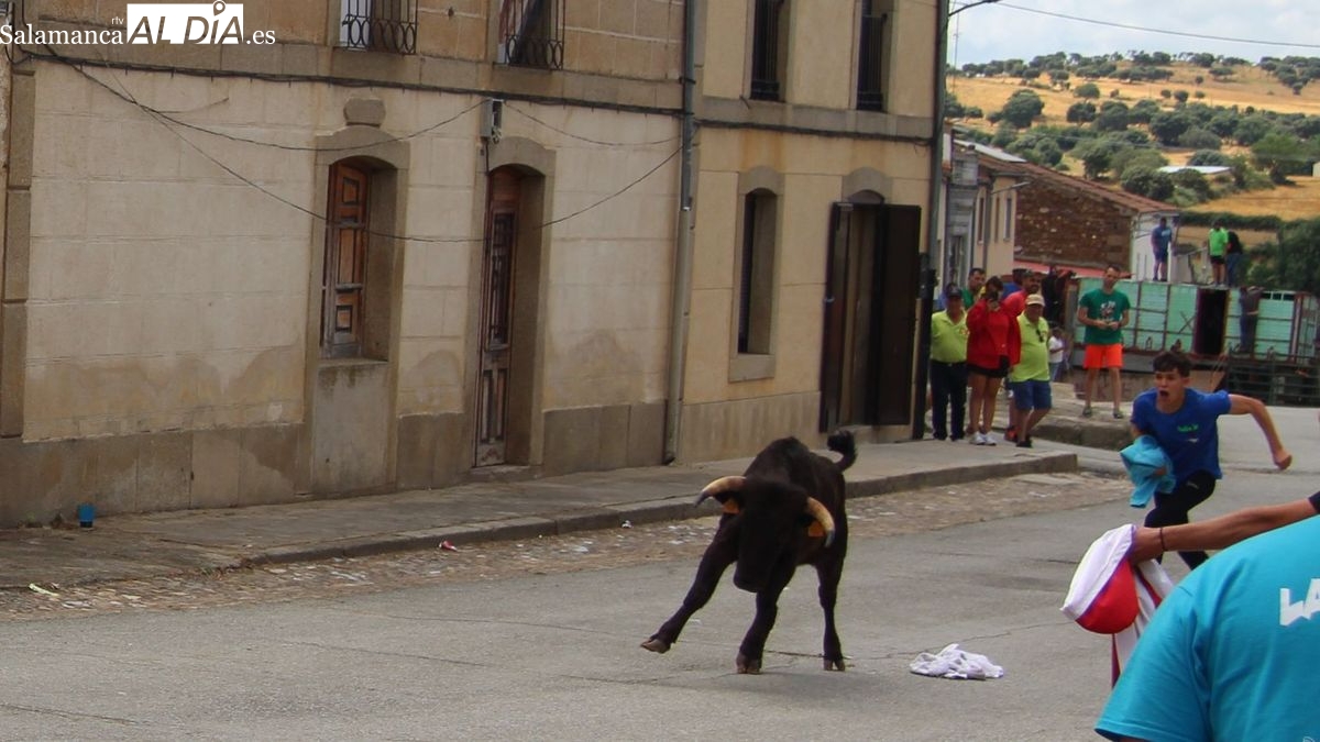 Un encierro a caballo de tres añojos y la suelta de vaquillas abrieron la jornada festiva que se despedirá con una clase práctica de toreo de los alumnos de la escuela de tauromaquia de Salamanca