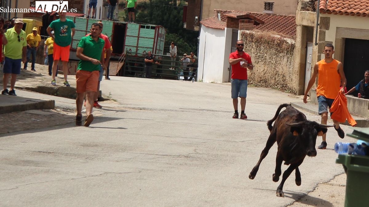 La última jornada festiva se abría a las 12:00 horas con un encierro a caballo de tres añojos de la ganadería de El Collado, que, junto a seis cabestros, fueron conducidos con maestría por una decena de caballistas desde la finca de los Charcos hasta el coso taurino instalado en la plaza Juego de Pelota. El encierro fue rápido y vistoso y discurrió sin incidencias, permitiendo a los aficionados correr sin problemas delante de los astados, corredores jóvenes y menos jóvenes de Hinojosa y de otros pueblos del entorno, como Lumbrales, Sobradillo y La Fregeneda.