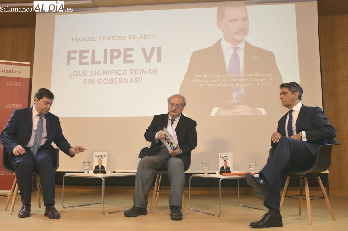 El periodista Manuel Ventero ha presentado en el Centro Internacional del Español su ensayo ‘Felipe VI. ¿Qué significa reinar sin gobernar?’; el acto ha contado con la presencia del presidente de la Junta, Alfonso Fernández Mañueco, y ha sido moderado por Enrique Cabero
