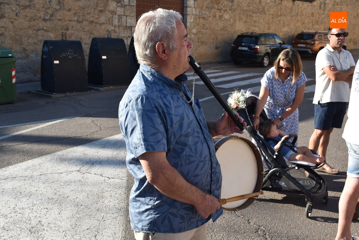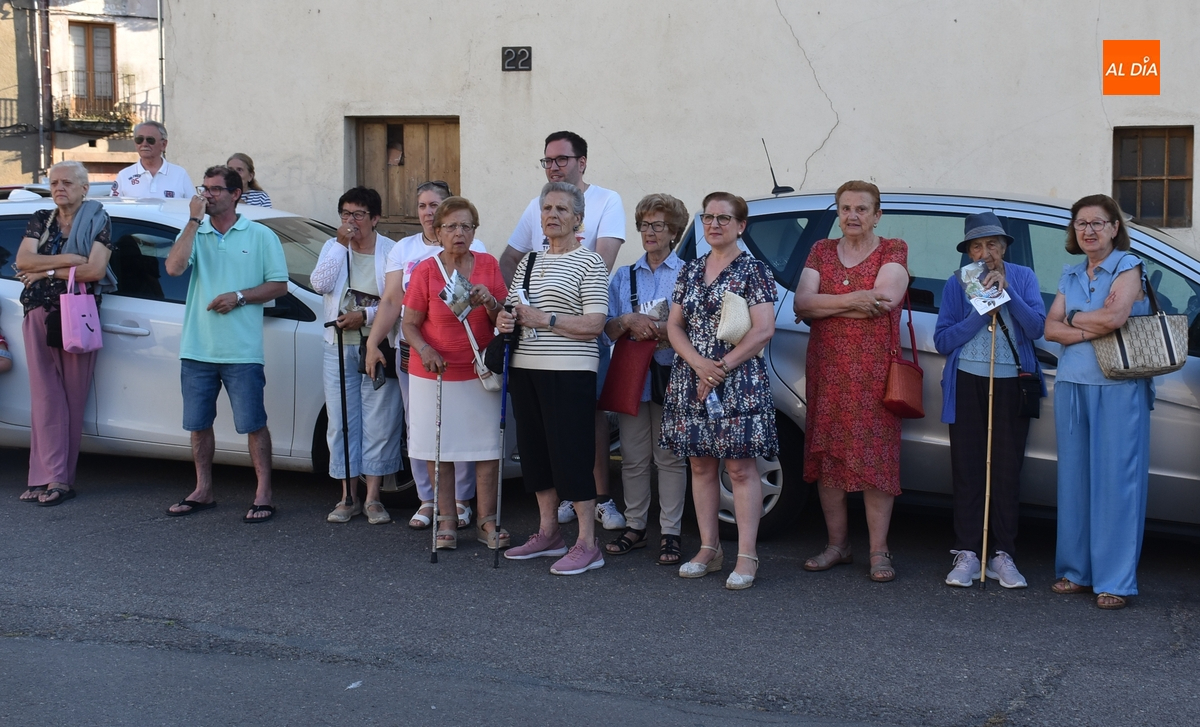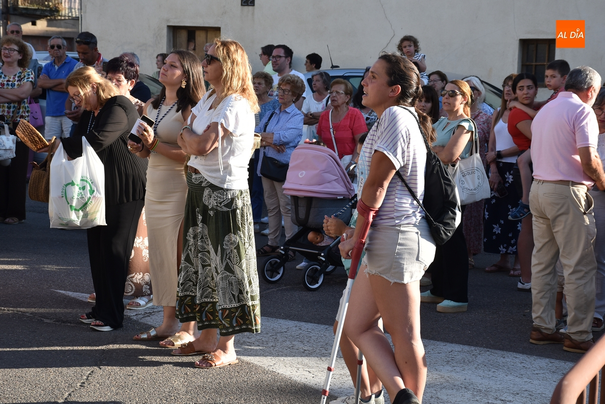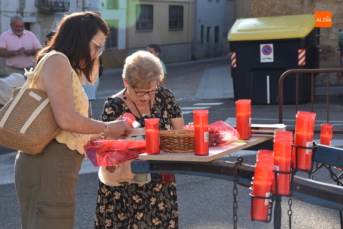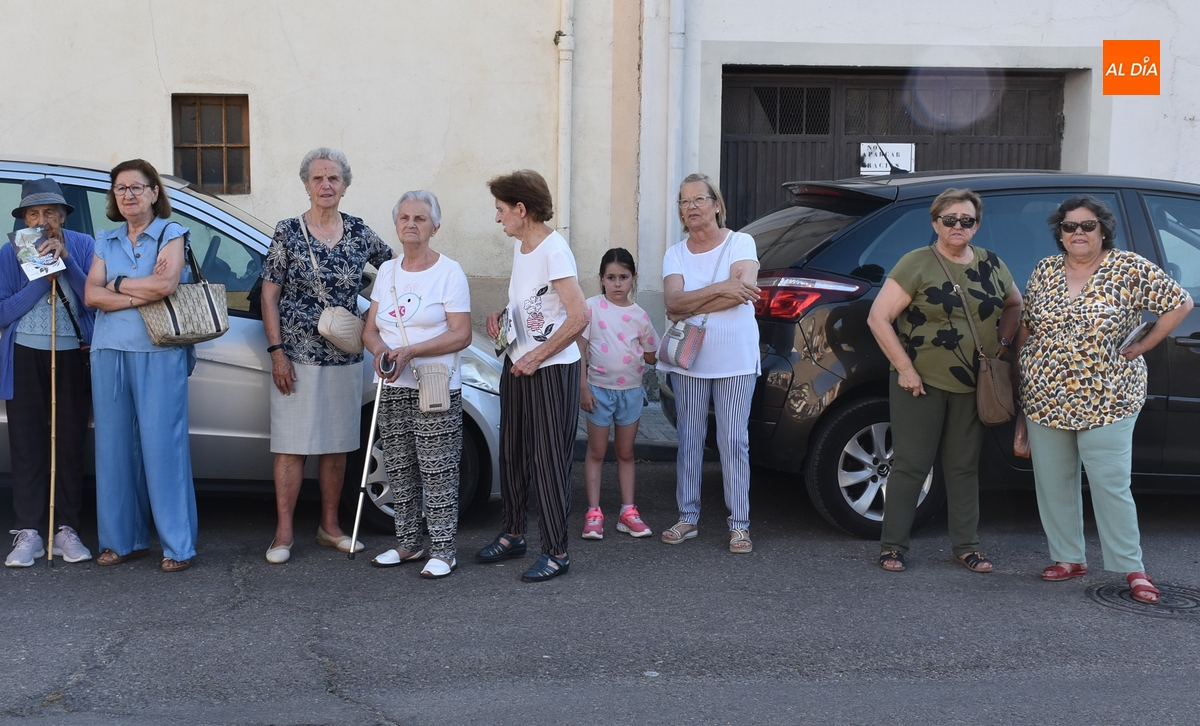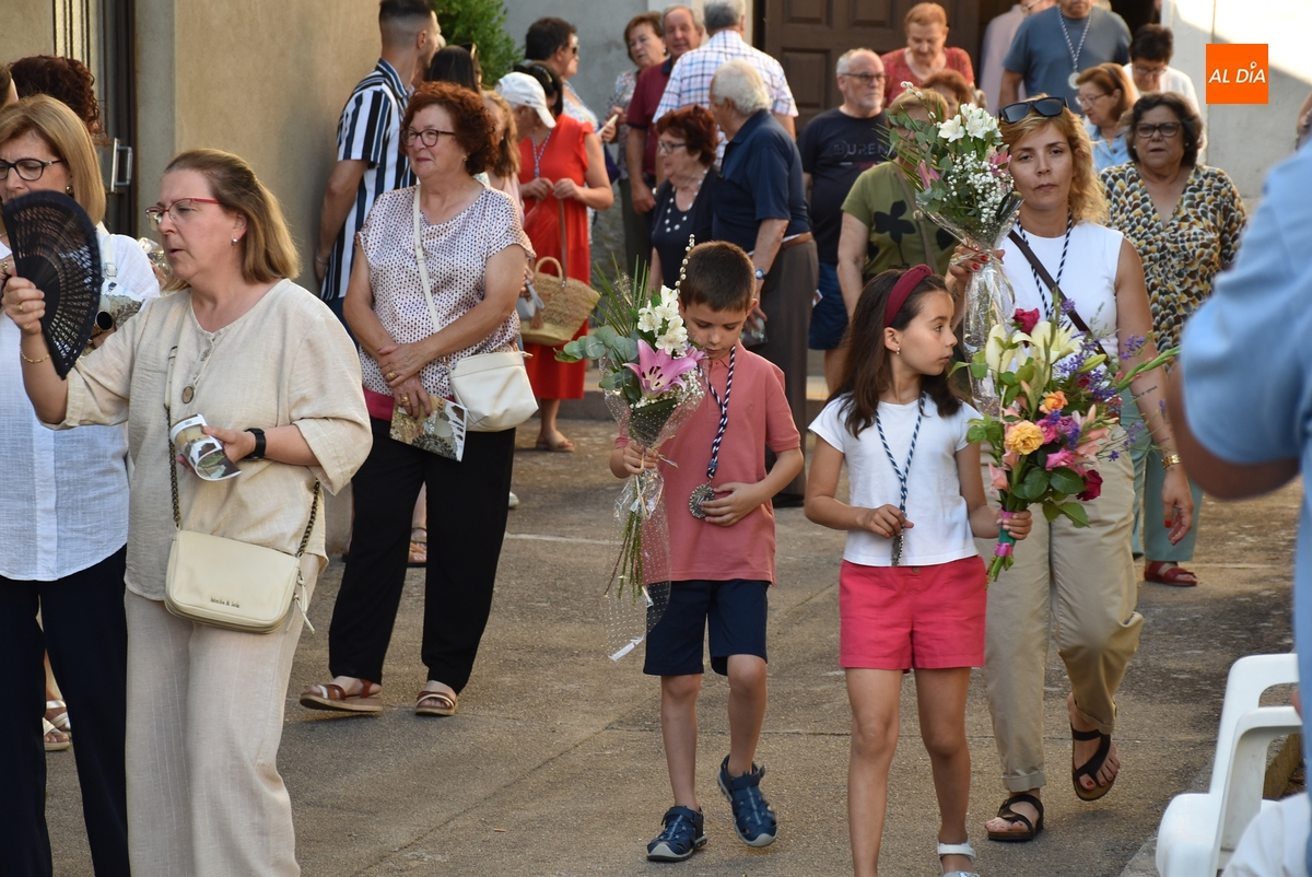 Varias mujeres fueron las encargadas de portar la imagen en el interior del Convento, tomando el relevo varios hombres para proceder a sacarla a la calle y meterla en la misma carreta en la que irá en Romería (que lucía en su parte trasera un capote que ha sido donado por Verónica María Sastre). A partir de ese momento, todos aquellos que quisieron pudieron depositar en torno a la misma las flores que habían llevado (además se pudieron encender velas y recoger las revistas de la Romería de este año).