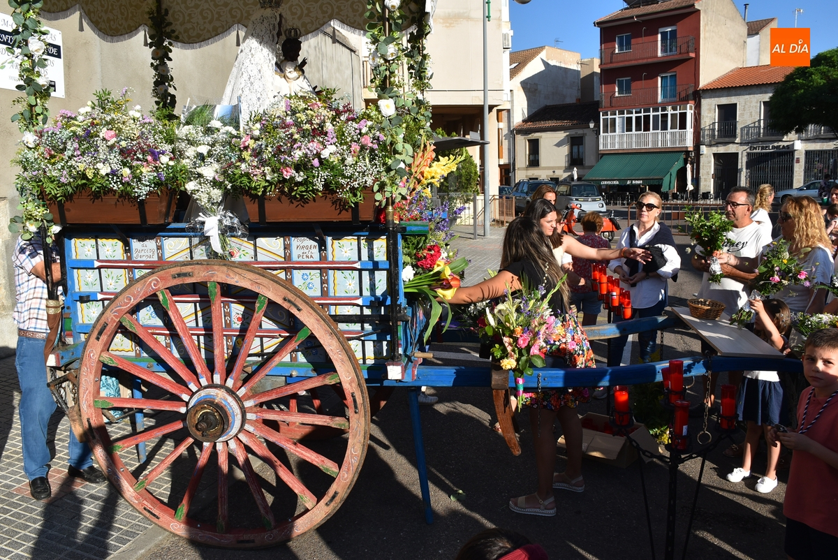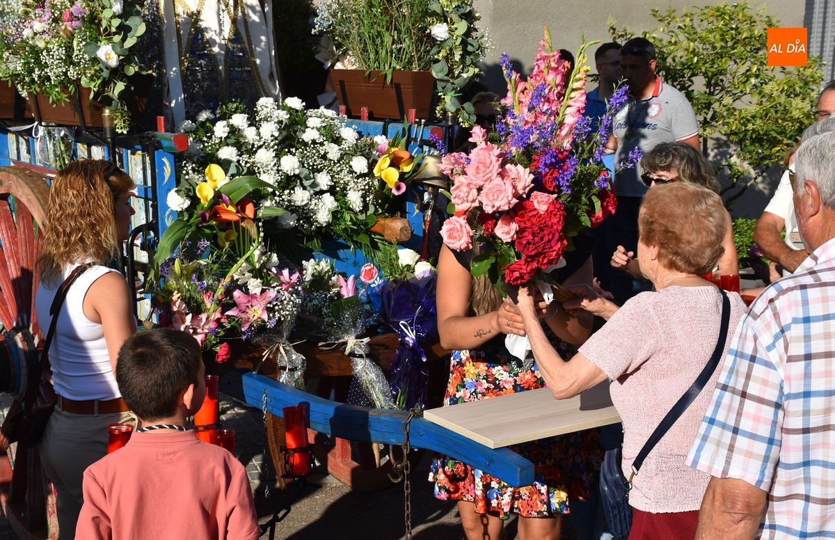 Se depositaron una gran cantidad de flores en la carreta de la Virgen