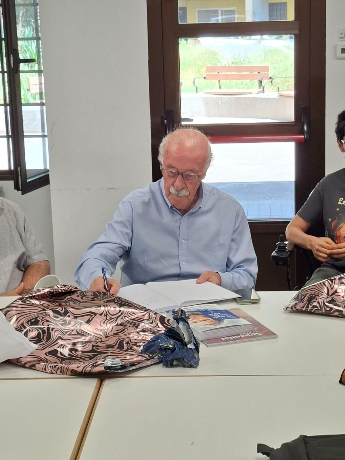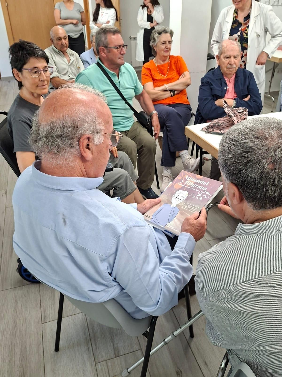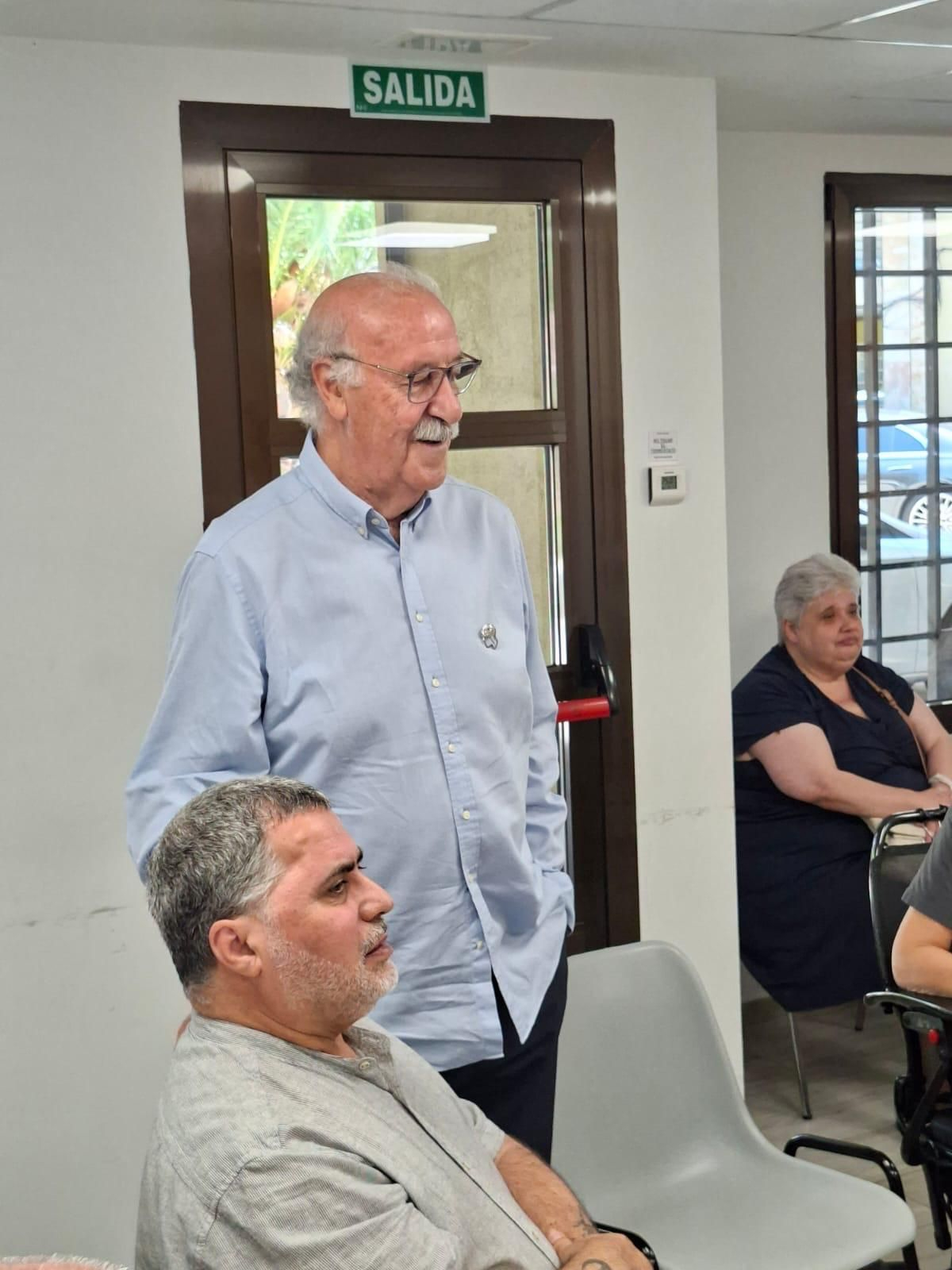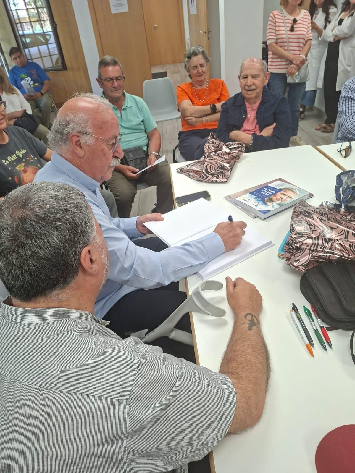 Desde la dirección de la asociación se aprovechó el encuentro para hacerle entrega del libro experiencial 'Yo nací un día azul', de Juan Carlos López, que él prologó.