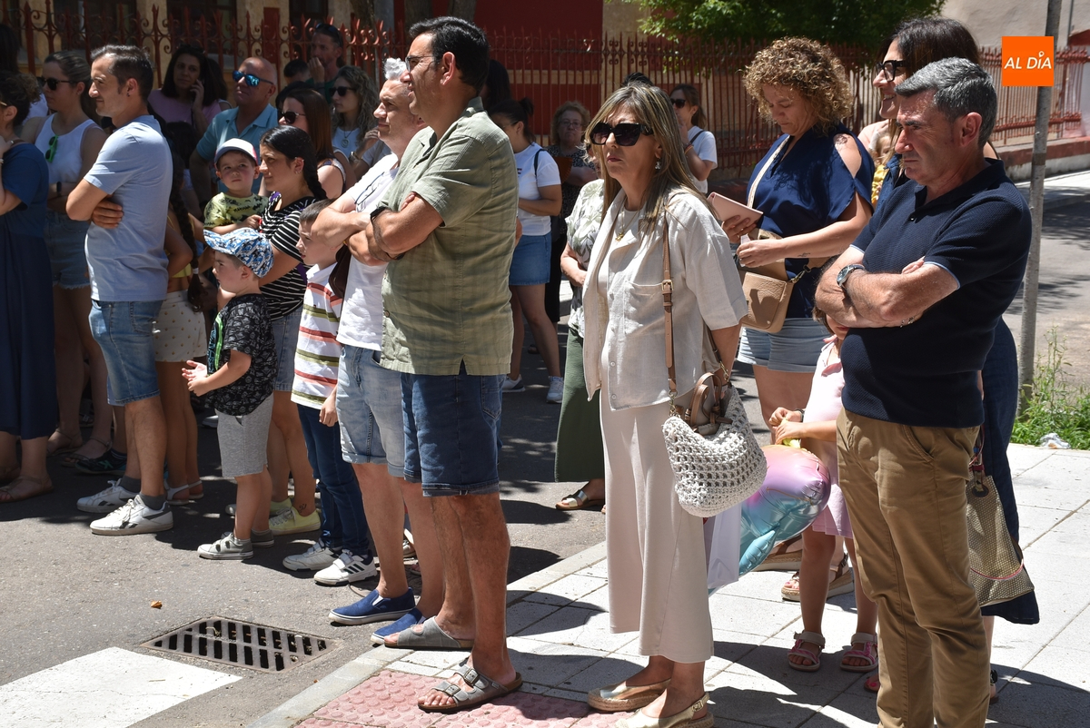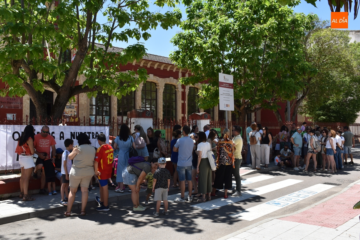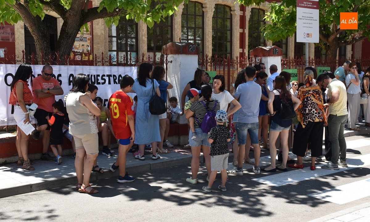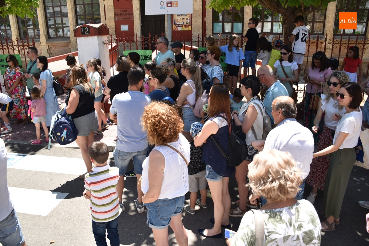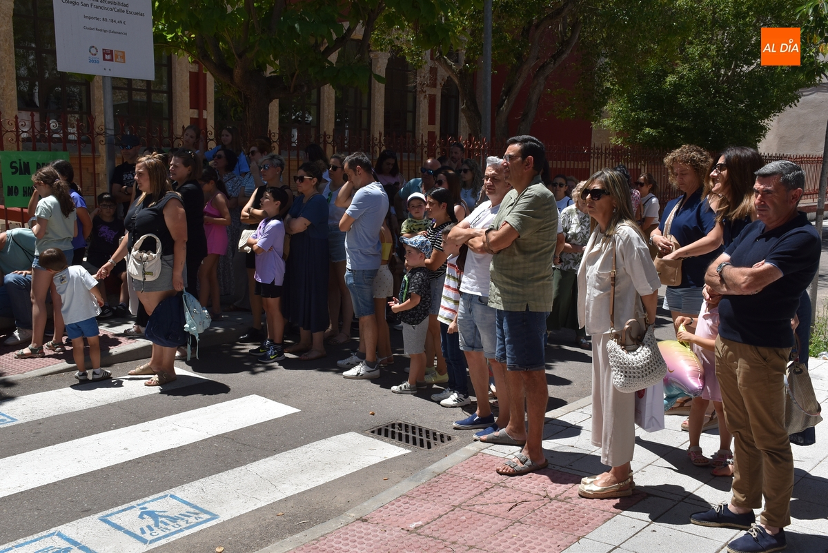 Como ocurre cada día de lunes a viernes durante el curso escolar (salvo en septiembre y junio, cuando las clases acaban una hora antes), la calle Escuelas de Ciudad Rodrigo fue a las 14.00 horas del viernes punto de congregación de alumnos, familiares y profesores, aunque en este caso no con motivo de la finalización de una jornada lectiva en el Colegio San Francisco, sino para reivindicar el mantenimiento de las plazas de maestro de Infantil que la Consejería de Educación quiere suprimir.
