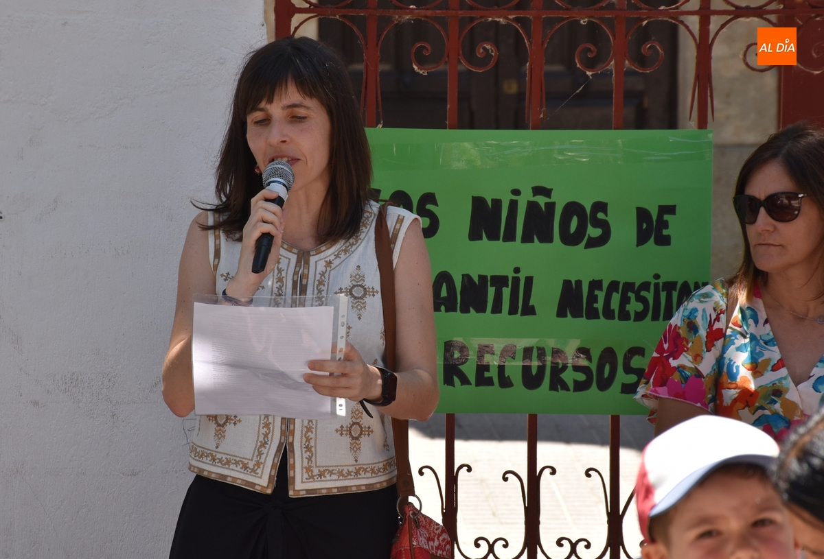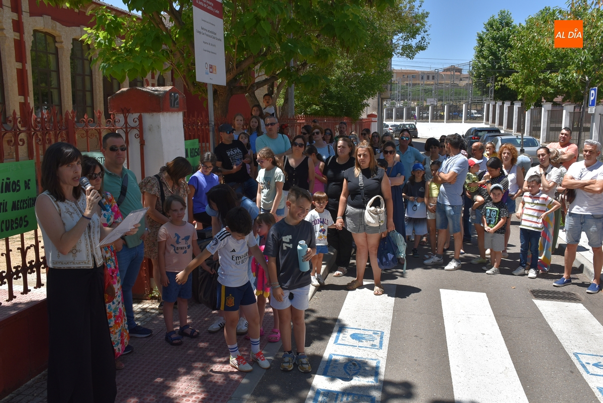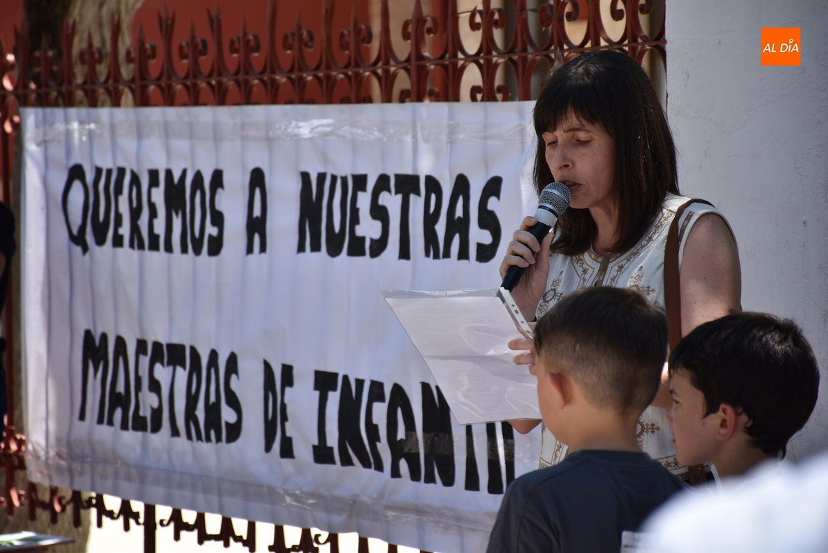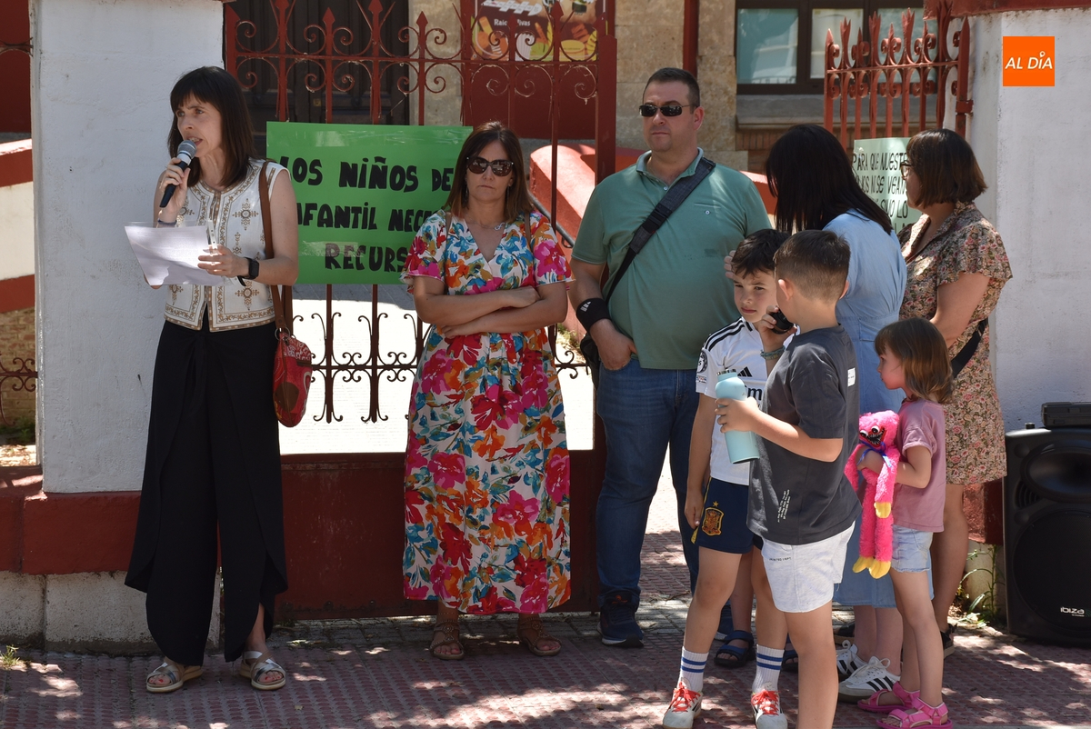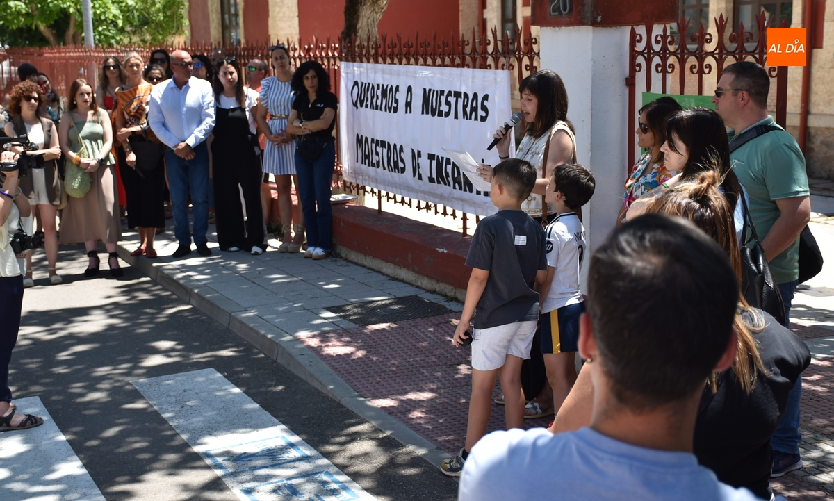 En un tramo horario muy caluroso, todos los presentes escucharon atentamente la lectura de un manifiesto por parte de una de las cabezas visibles de la reivindicación, Nuria Rodríguez, quién explicó que el Colegio San Francisco va a pasar de 6 a 4 maestras de Educación Infantil, cuando además las seis maestras de Infantil que ha habido este curso tenían este centro como destino definitivo.