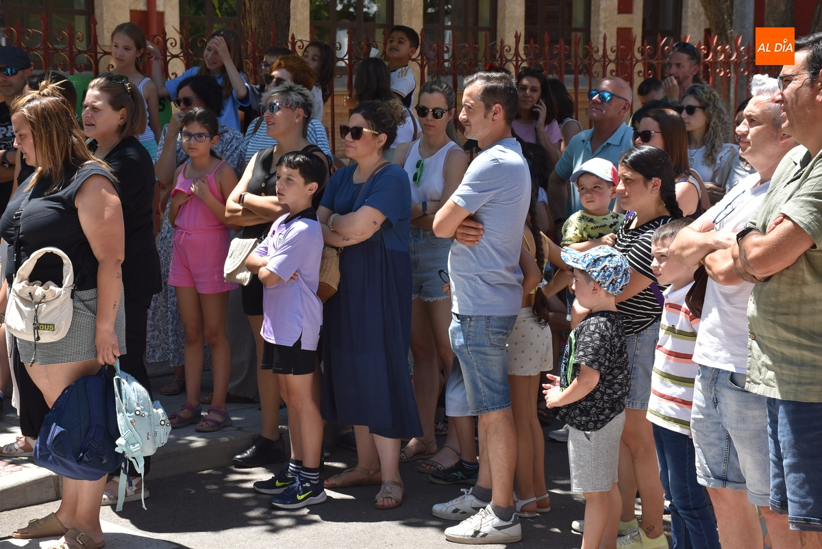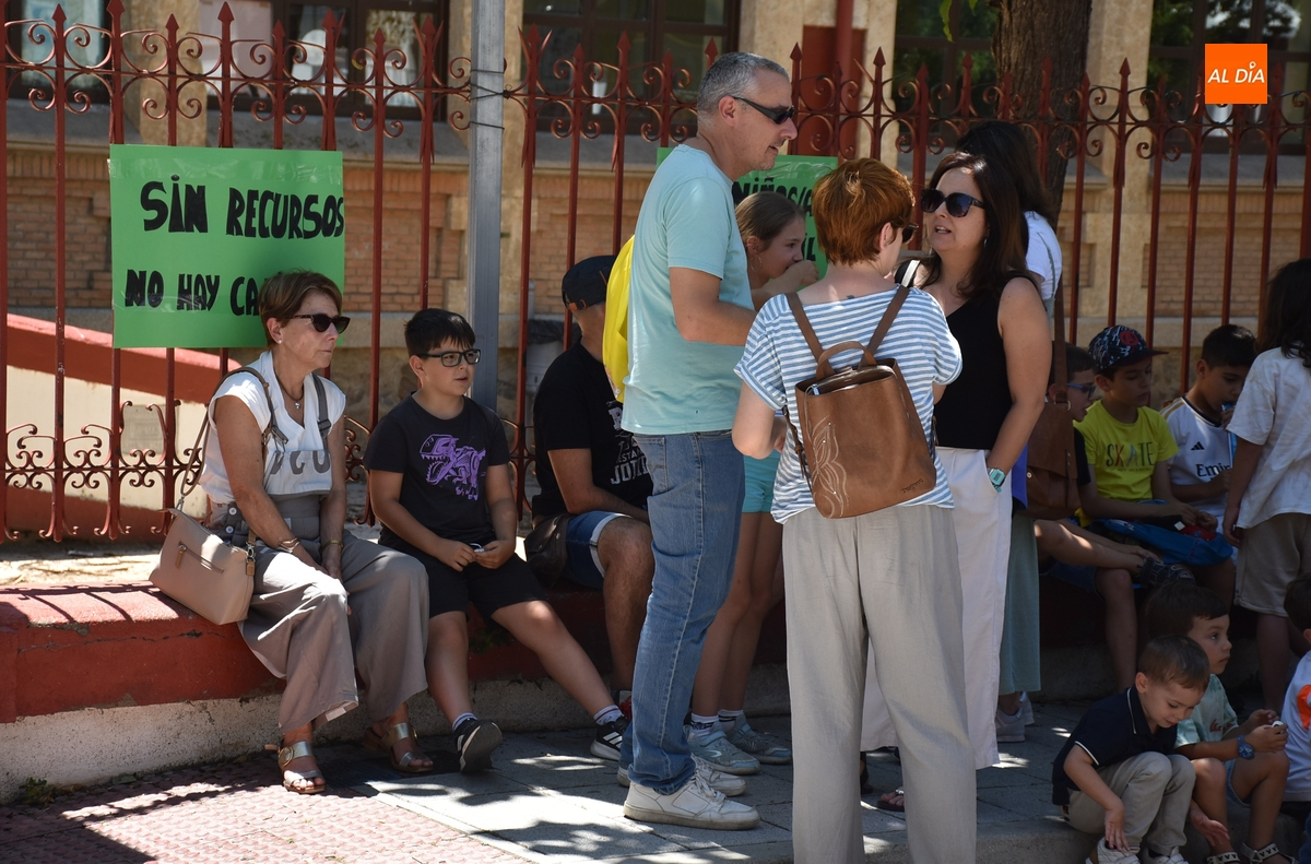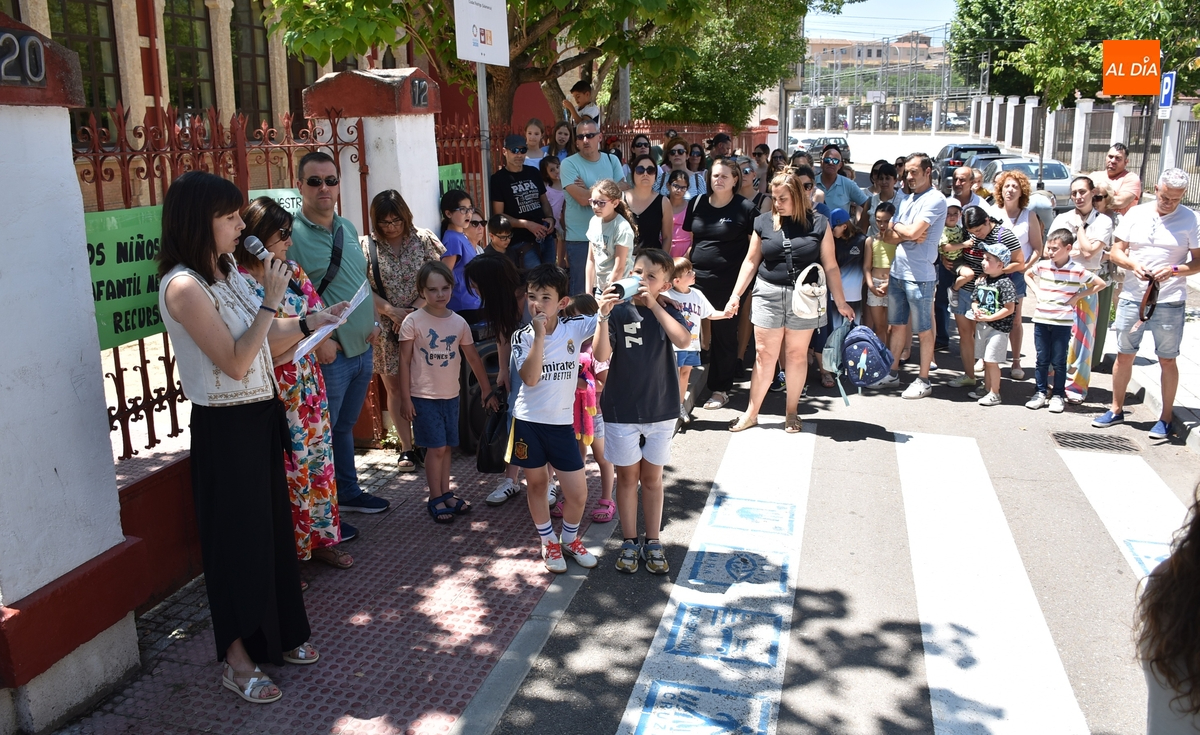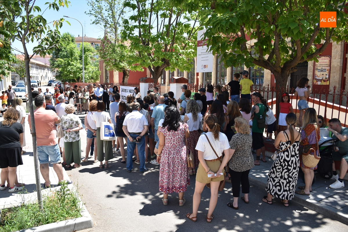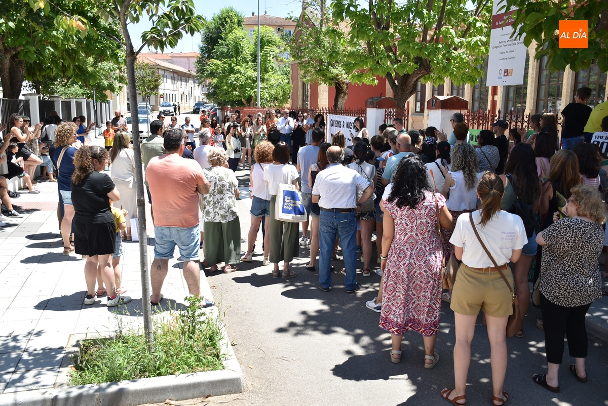 En un tramo horario muy caluroso, todos los presentes escucharon atentamente la lectura de un manifiesto por parte de una de las cabezas visibles de la reivindicación, Nuria Rodríguez, quién explicó que el Colegio San Francisco va a pasar de 6 a 4 maestras de Educación Infantil, cuando además las seis maestras de Infantil que ha habido este curso tenían este centro como destino definitivo.