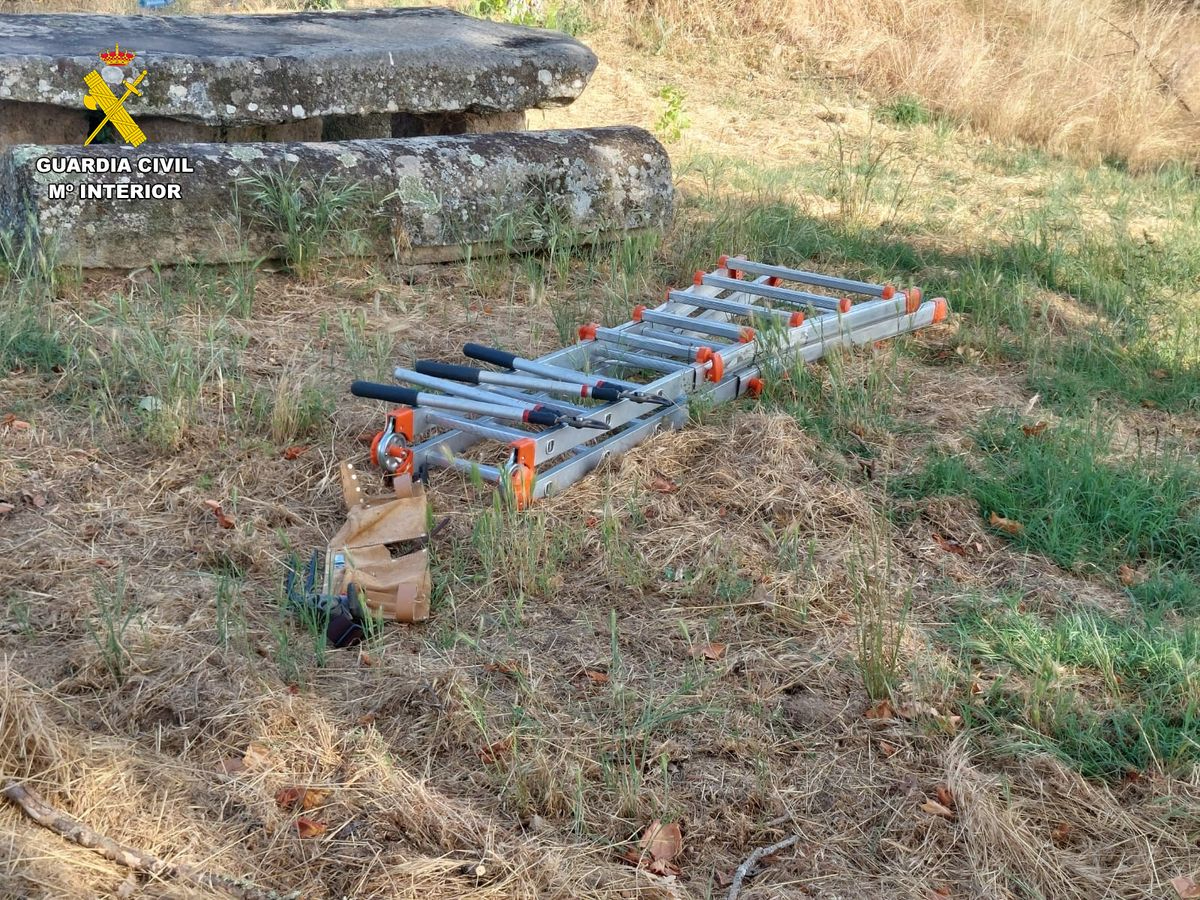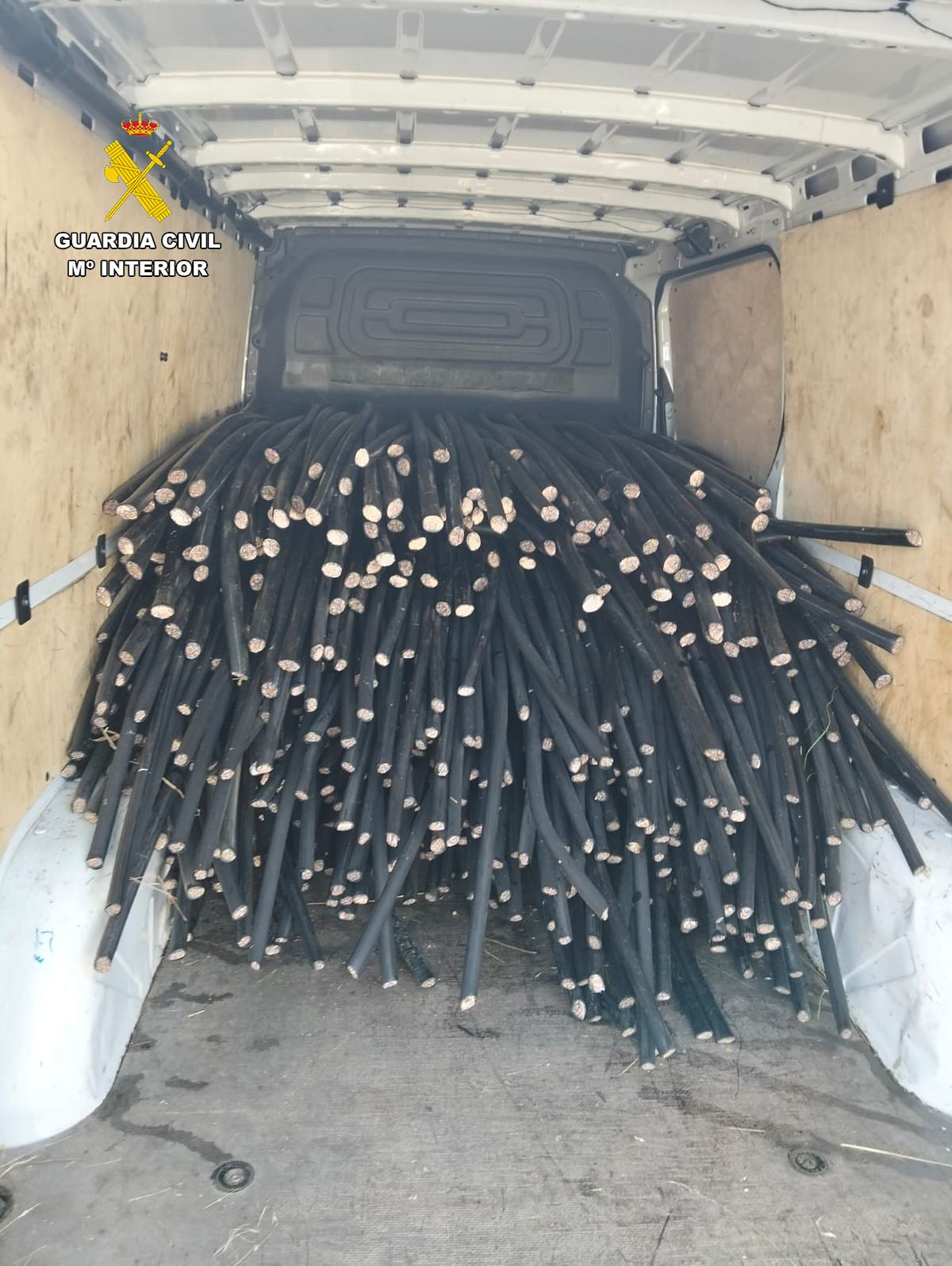 Conociendo el modus operandi habitual de estos grupos delictivos, que suelen cortar y ocultar el material para recogerlo más tarde, los agentes decidieron realizar una batida por los terrenos cercanos para localizar el resto del material sustraído.