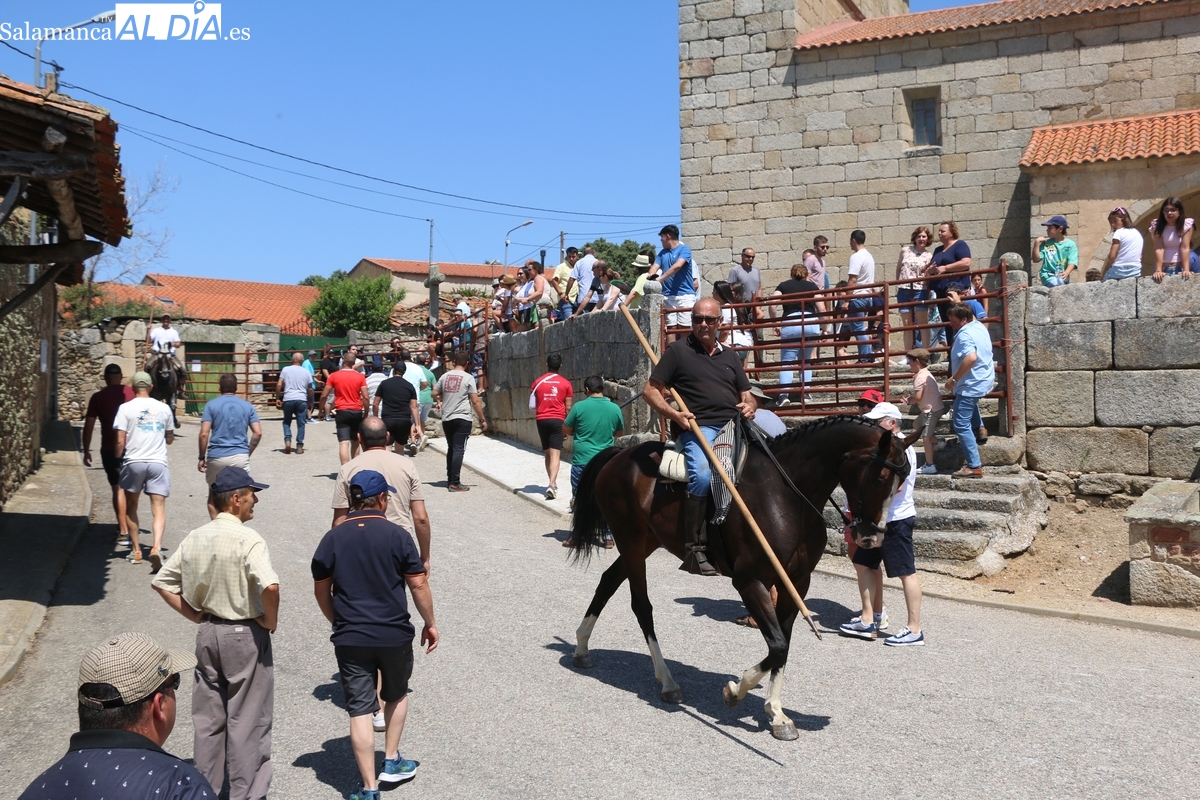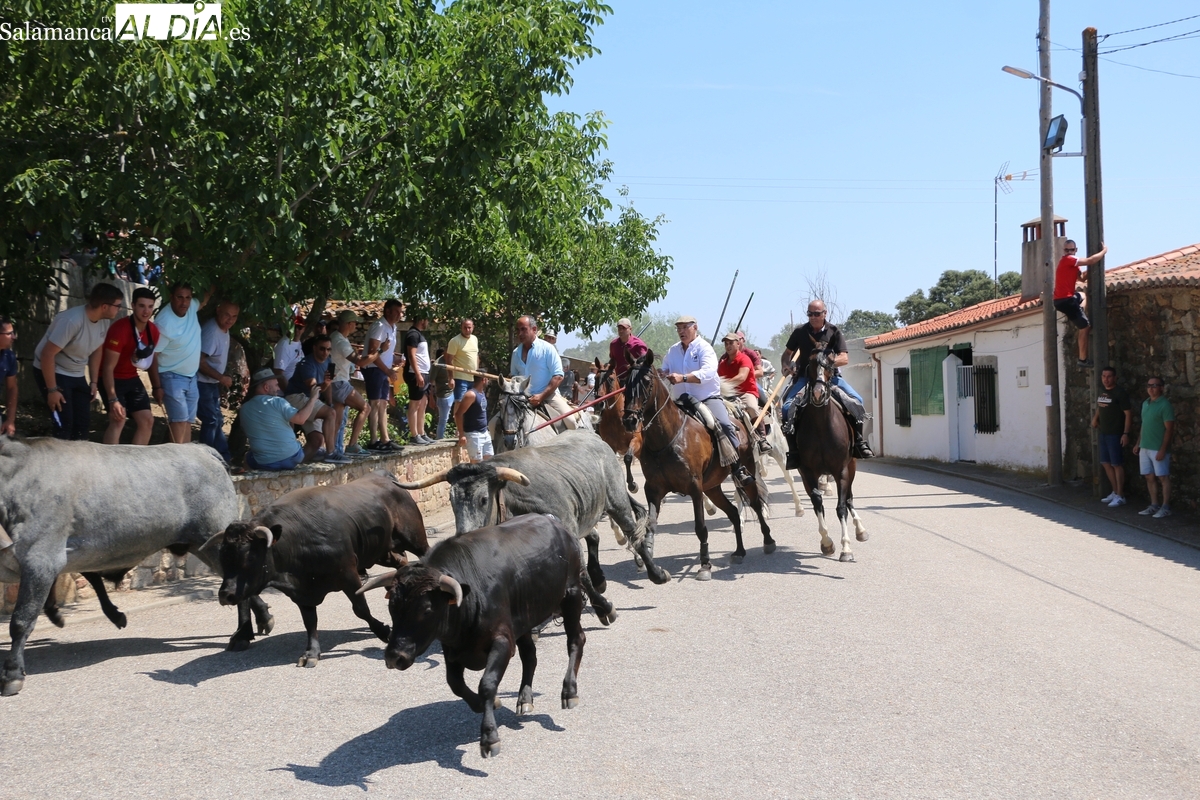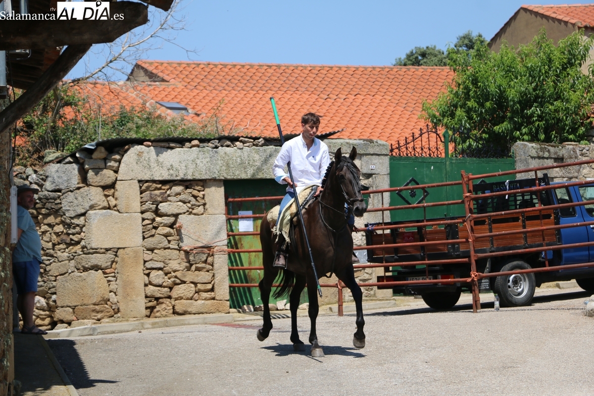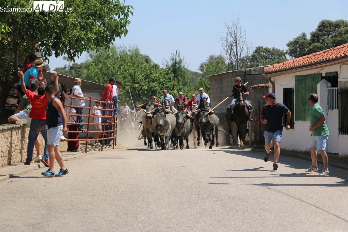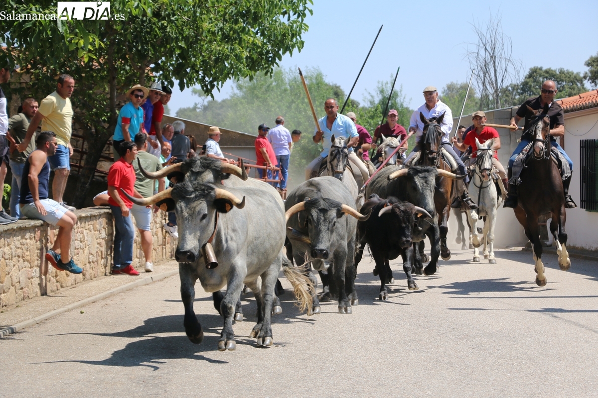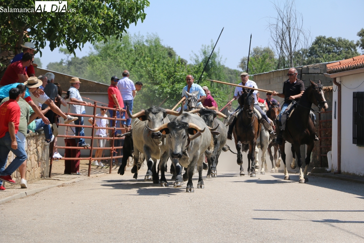 Accidentado encierro a caballo el que ha tenido lugar este sábado en Bogajo con motivo de sus fiestas de San Juan, festejo en el que se encerraron tres añojos de la ganadería de Herederos de Dionisio Rodríguez y que serán lidiados esta tarde en la clase práctica en la que intervendrán alumnos de la Escuela de Tauromaquia de Salamanca.