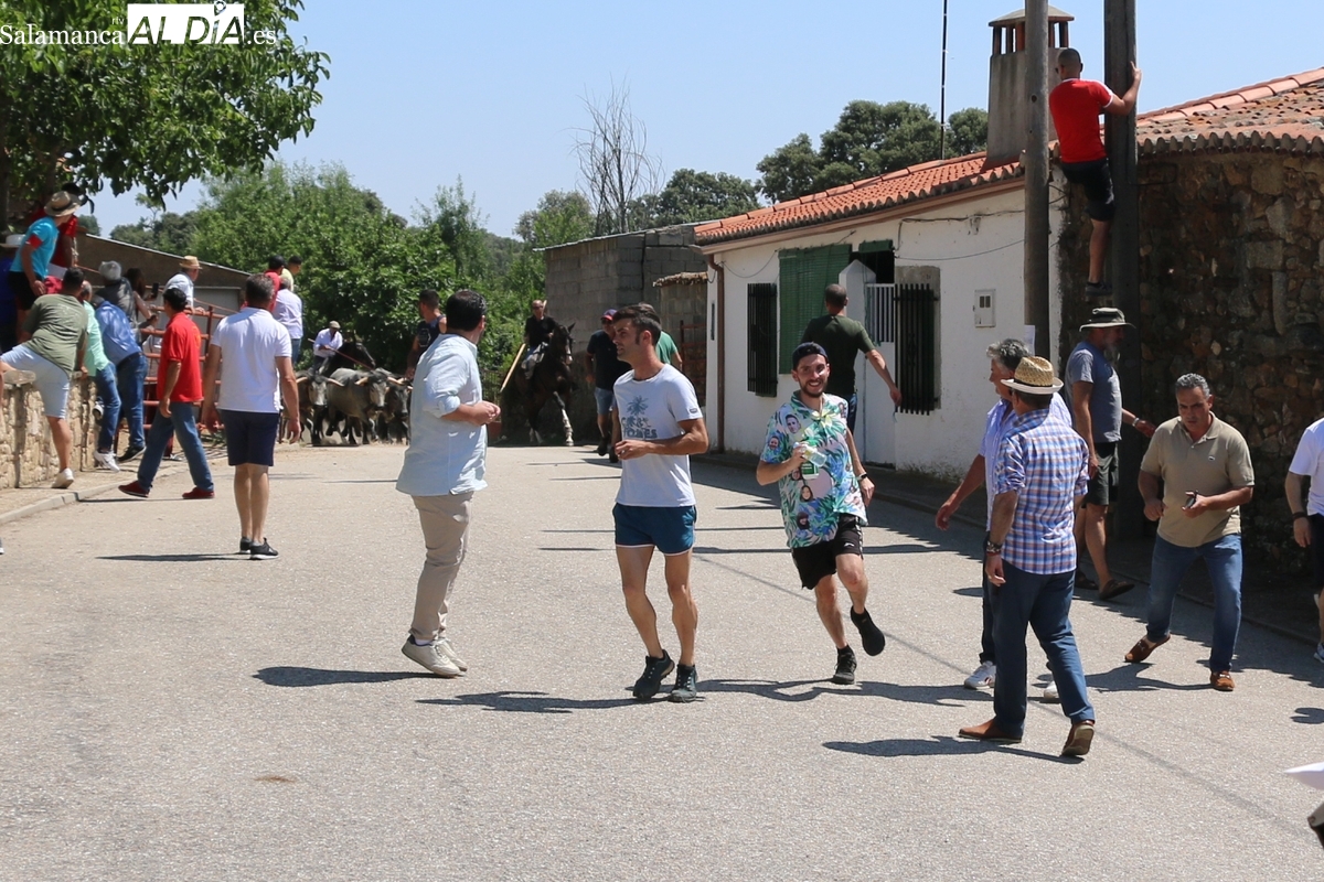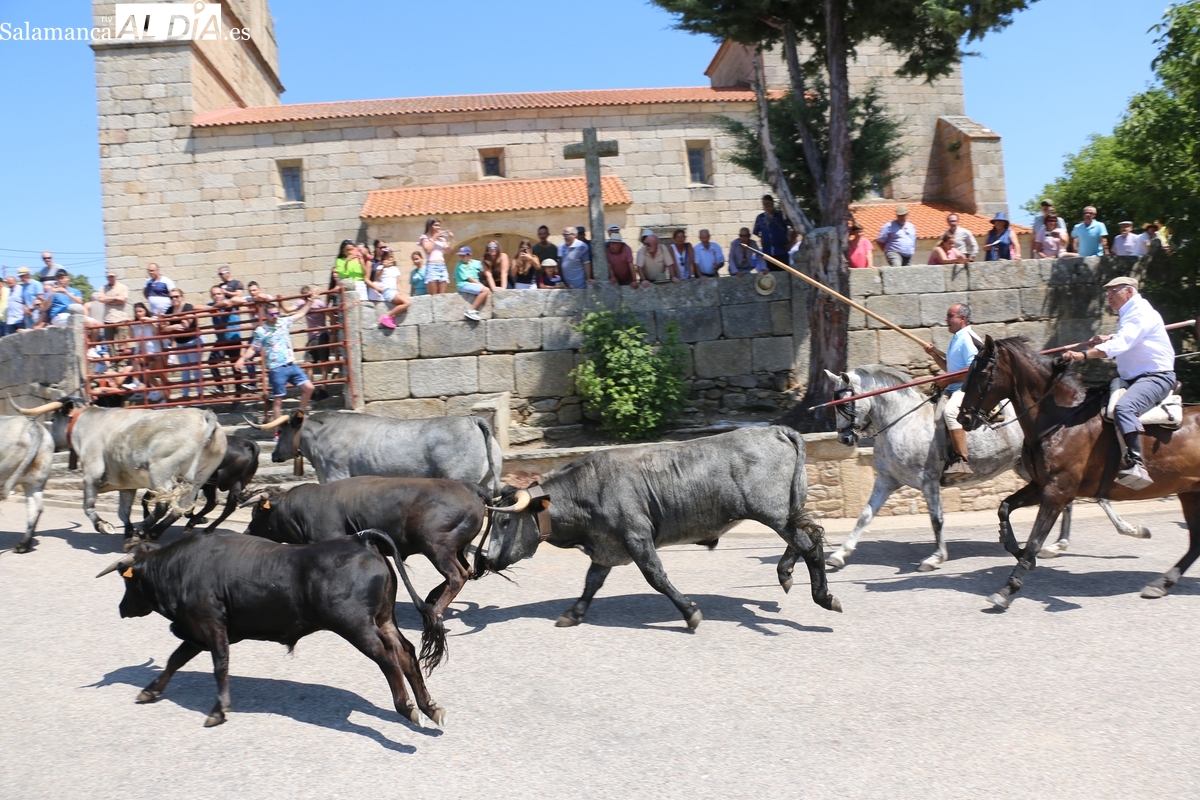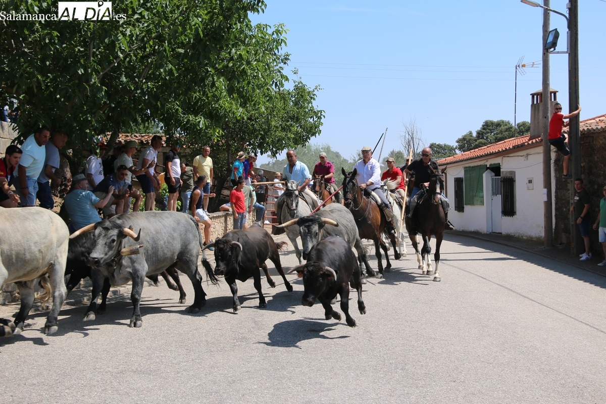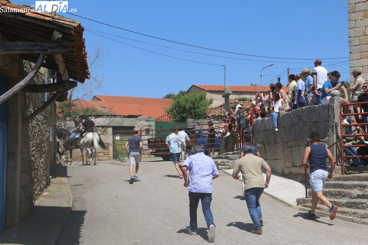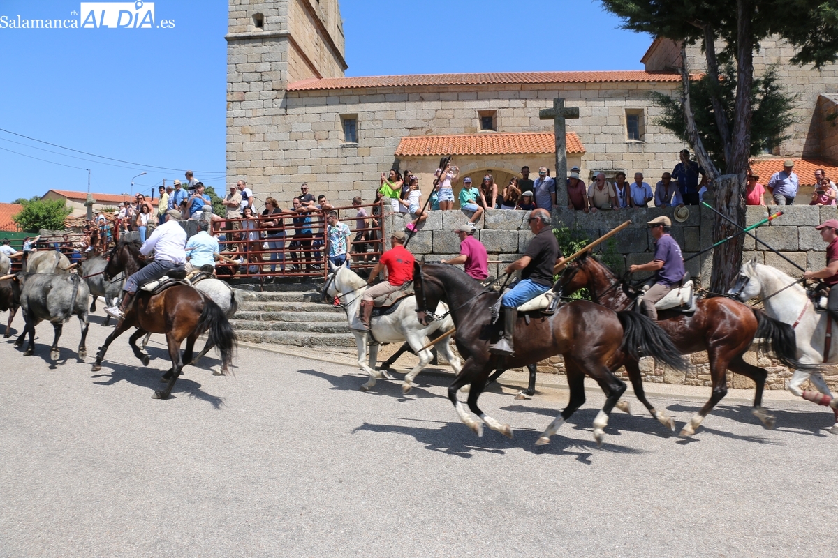 Accidentado encierro a caballo el que ha tenido lugar este sábado en Bogajo con motivo de sus fiestas de San Juan, festejo en el que se encerraron tres añojos de la ganadería de Herederos de Dionisio Rodríguez y que serán lidiados esta tarde en la clase práctica en la que intervendrán alumnos de la Escuela de Tauromaquia de Salamanca.