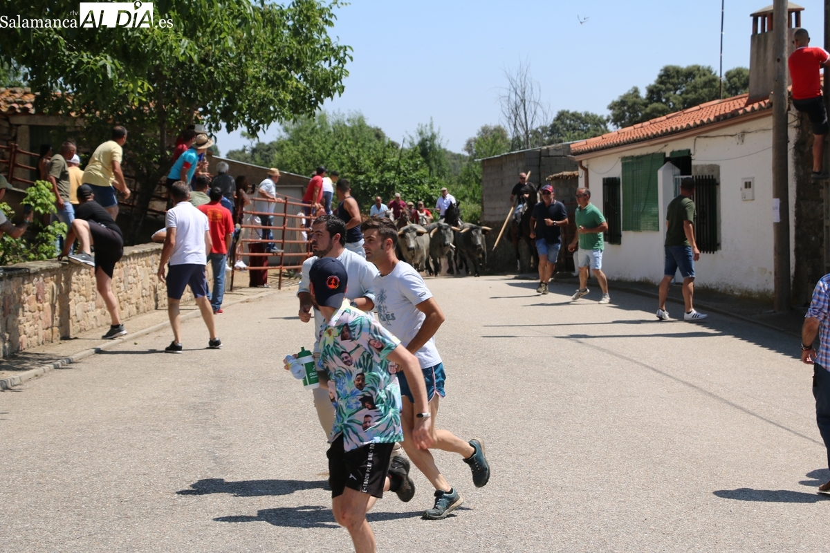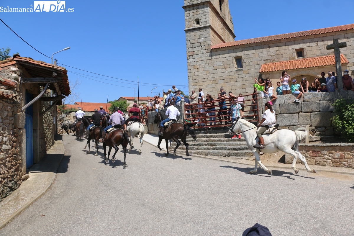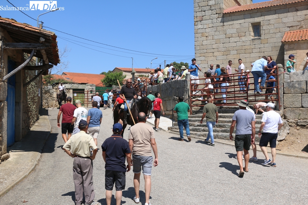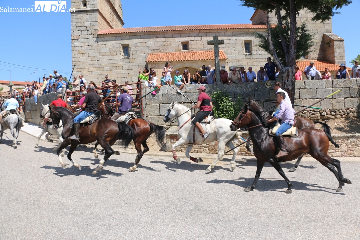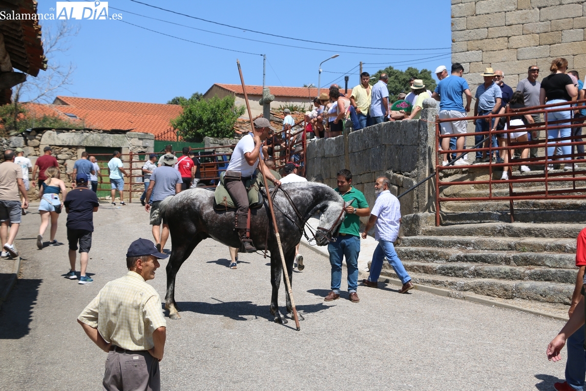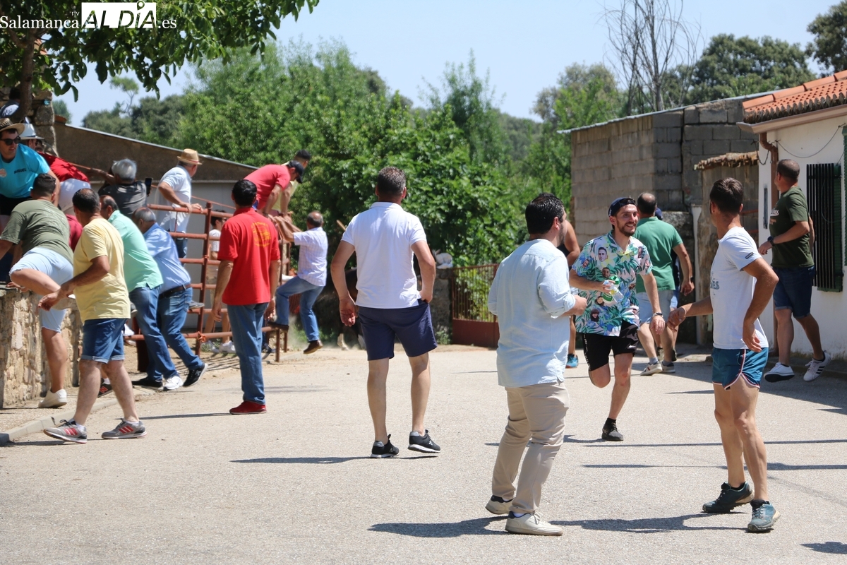 Accidentado encierro a caballo el que ha tenido lugar este sábado en Bogajo con motivo de sus fiestas de San Juan, festejo en el que se encerraron tres añojos de la ganadería de Herederos de Dionisio Rodríguez y que serán lidiados esta tarde en la clase práctica en la que intervendrán alumnos de la Escuela de Tauromaquia de Salamanca.