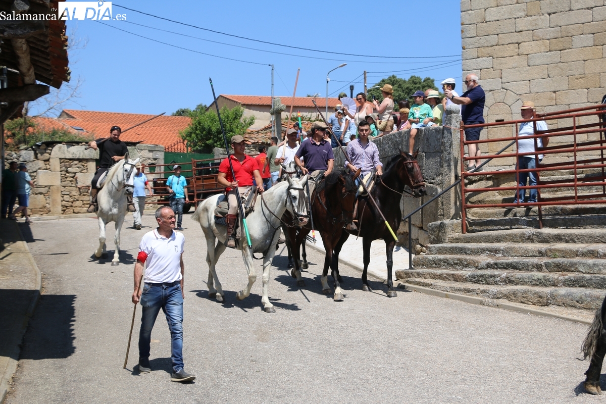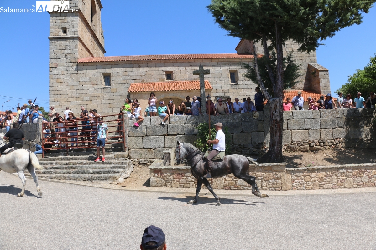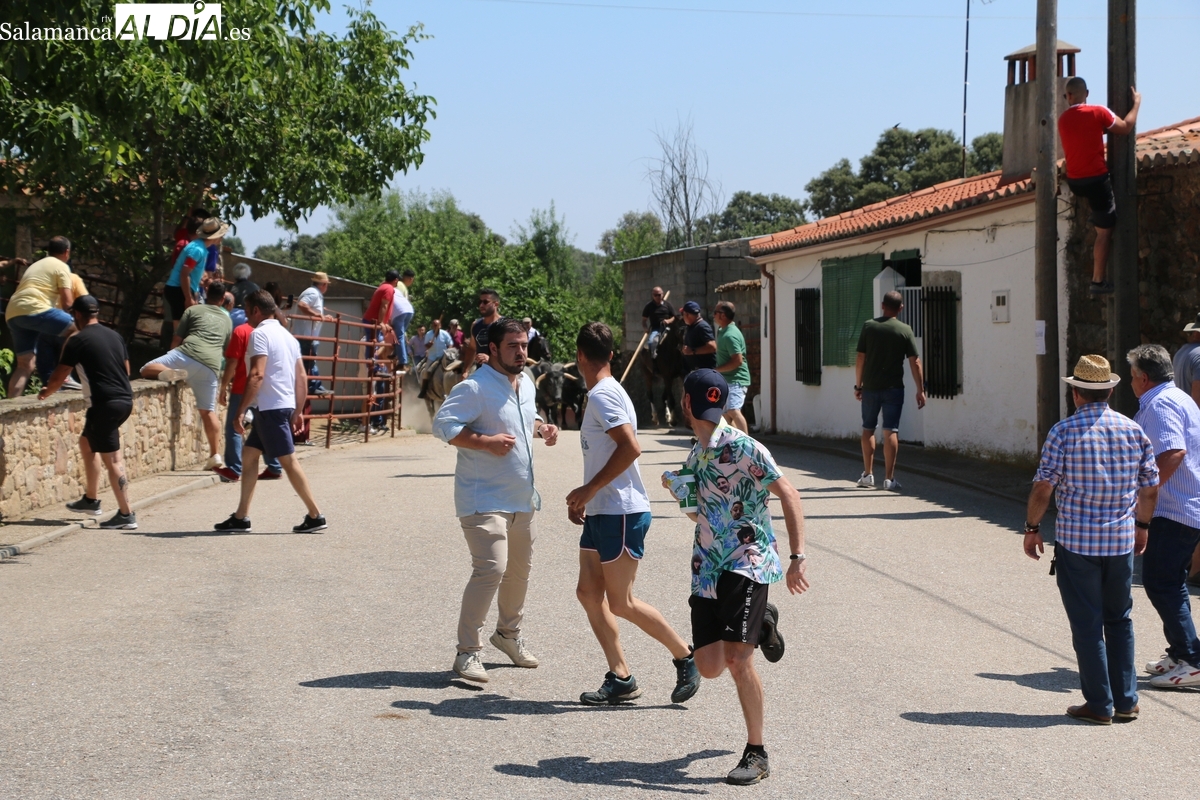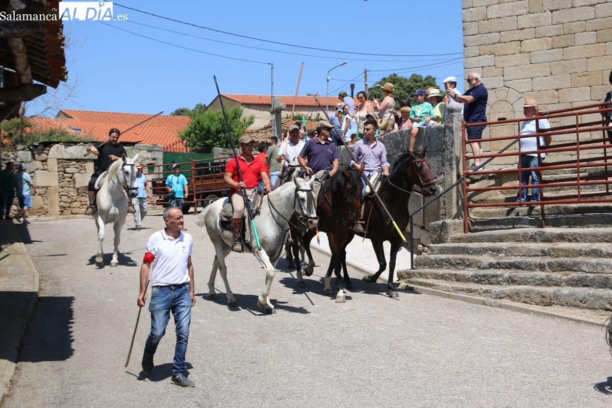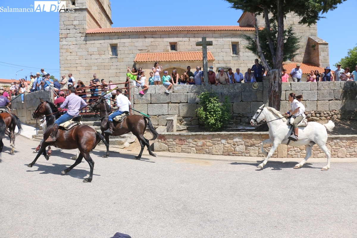 Accidentado encierro a caballo el que ha tenido lugar este sábado en Bogajo con motivo de sus fiestas de San Juan, festejo en el que se encerraron tres añojos de la ganadería de Herederos de Dionisio Rodríguez y que serán lidiados esta tarde en la clase práctica en la que intervendrán alumnos de la Escuela de Tauromaquia de Salamanca.
