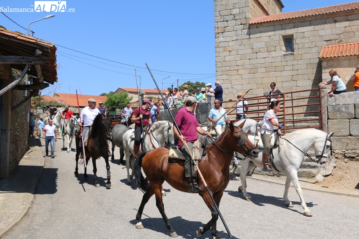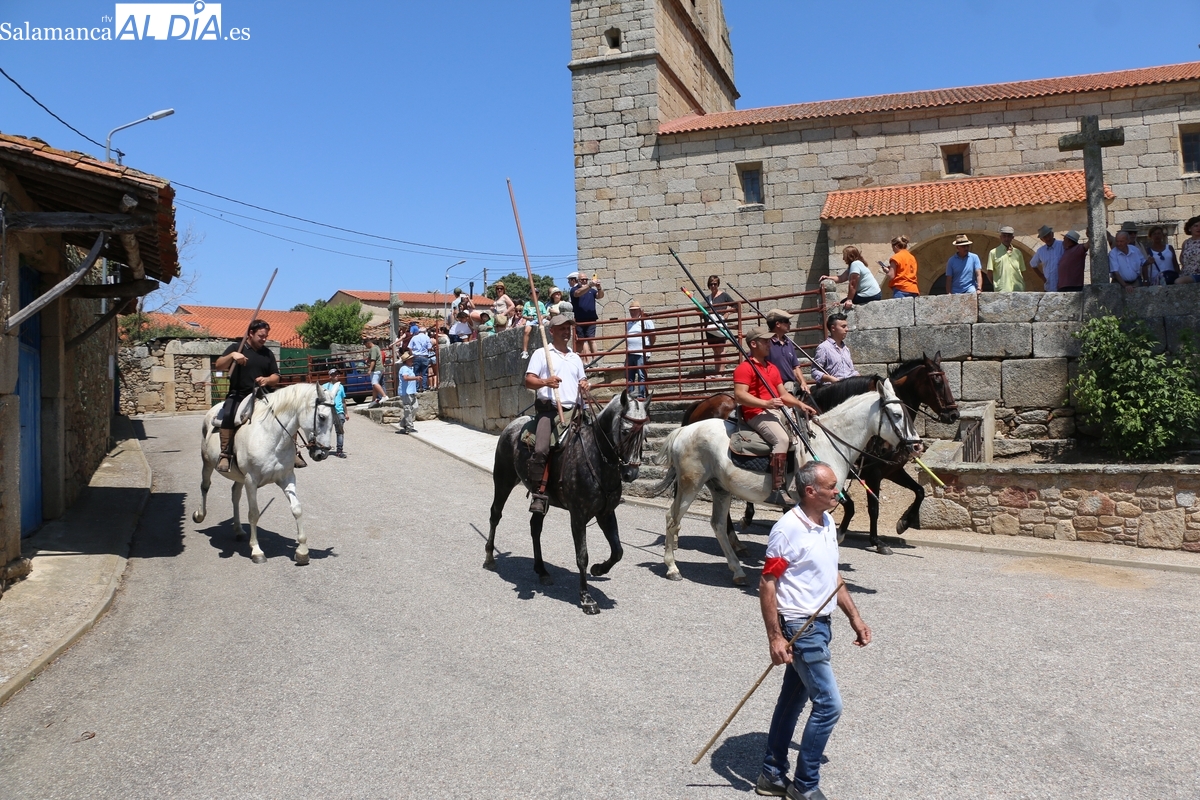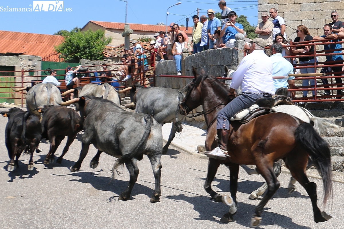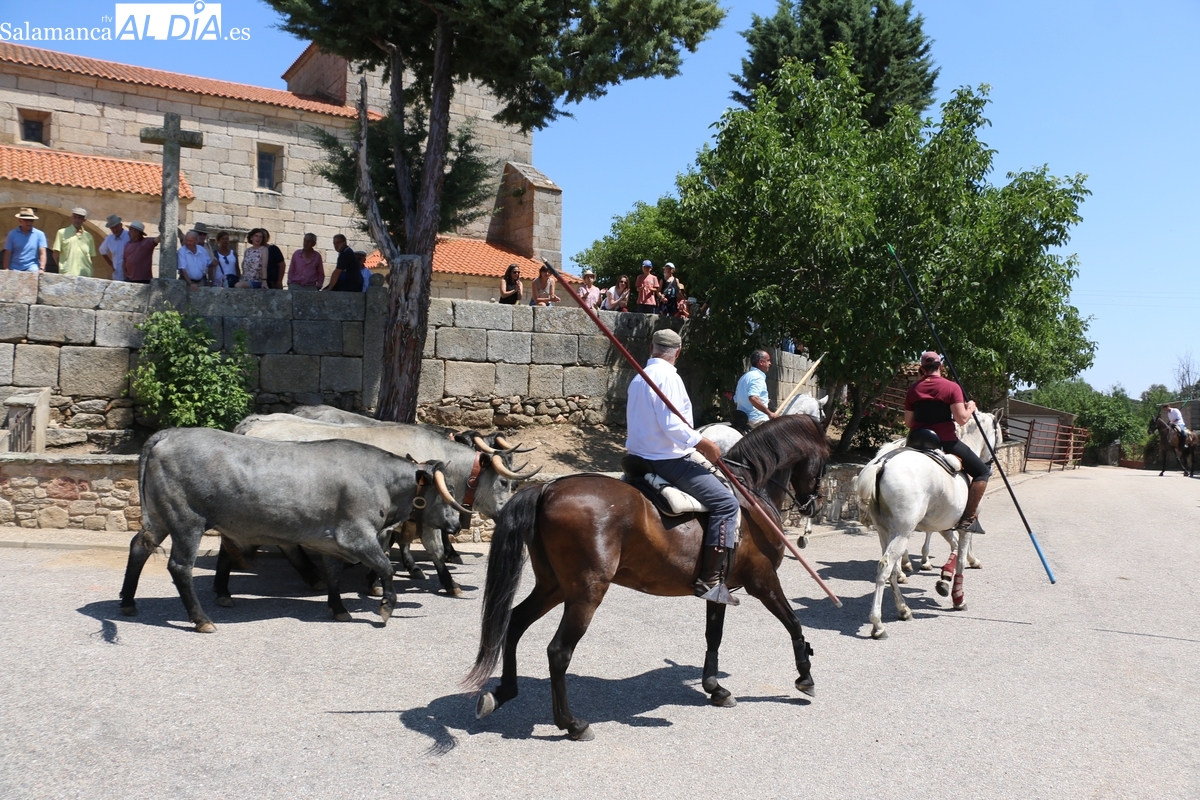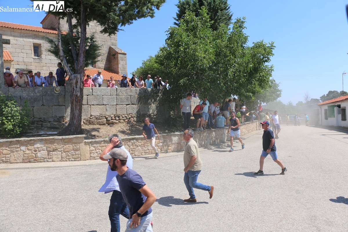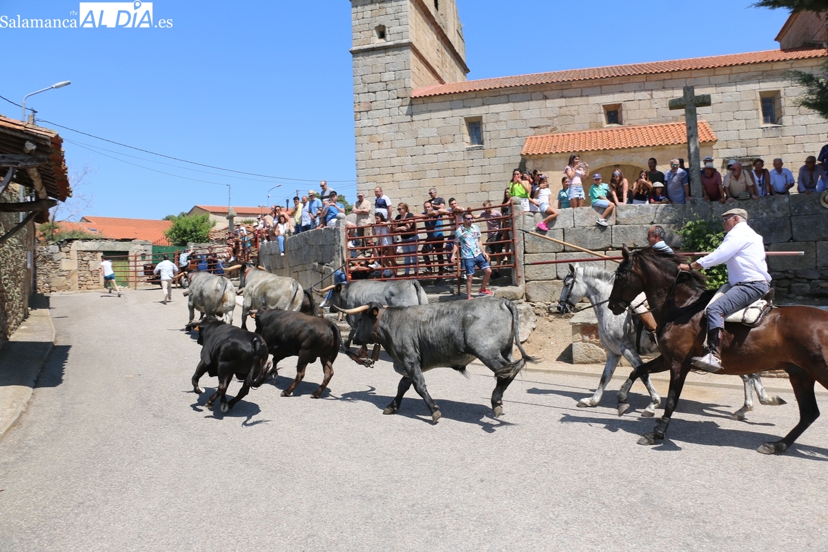 Accidentado encierro a caballo el que ha tenido lugar este sábado en Bogajo con motivo de sus fiestas de San Juan, festejo en el que se encerraron tres añojos de la ganadería de Herederos de Dionisio Rodríguez y que serán lidiados esta tarde en la clase práctica en la que intervendrán alumnos de la Escuela de Tauromaquia de Salamanca.