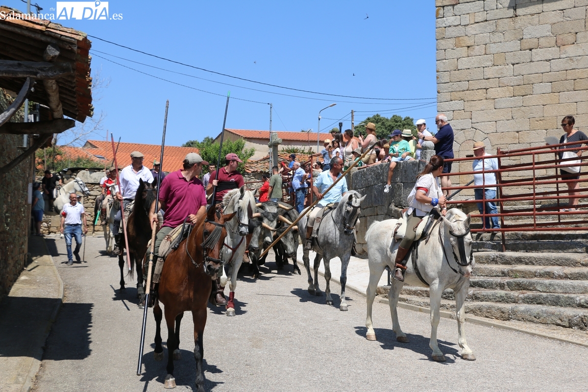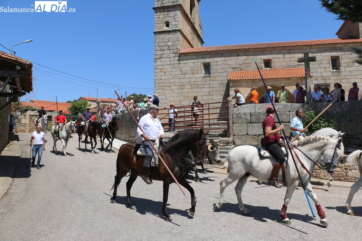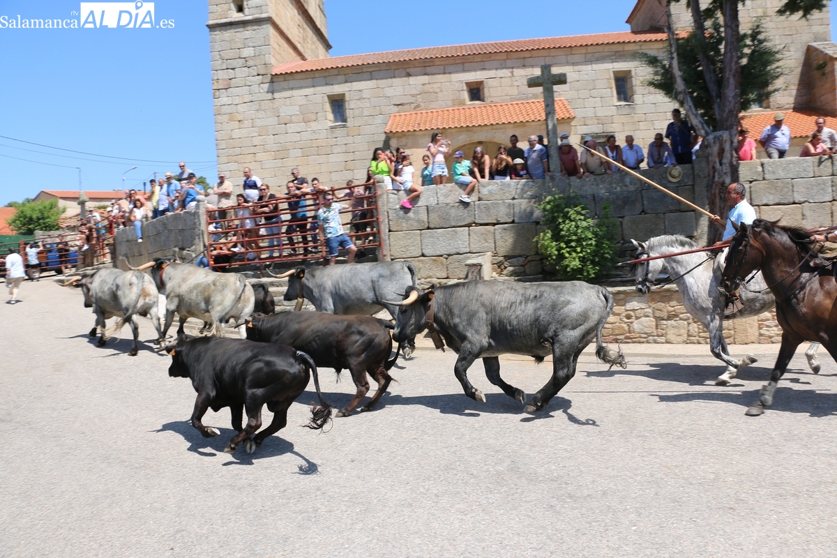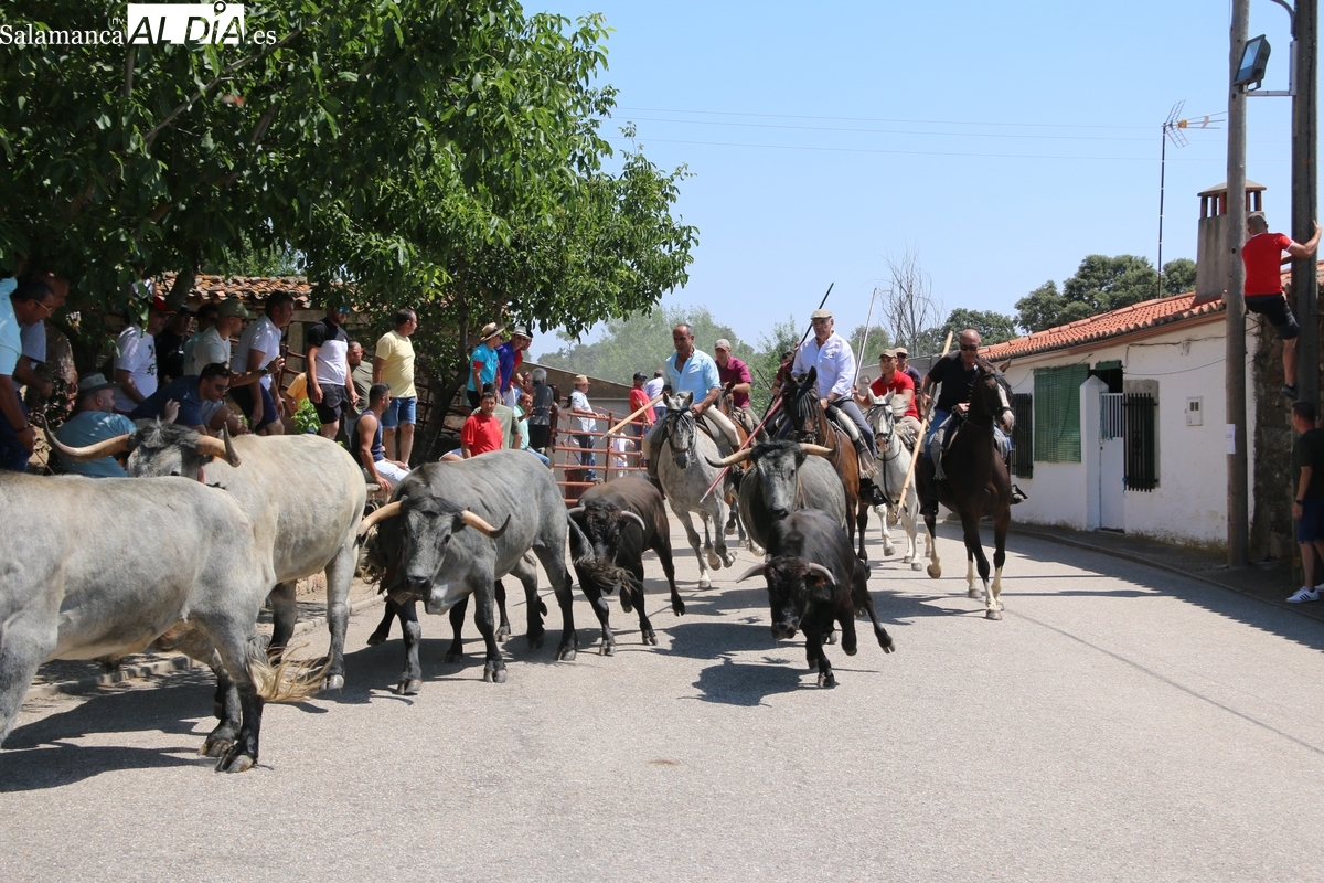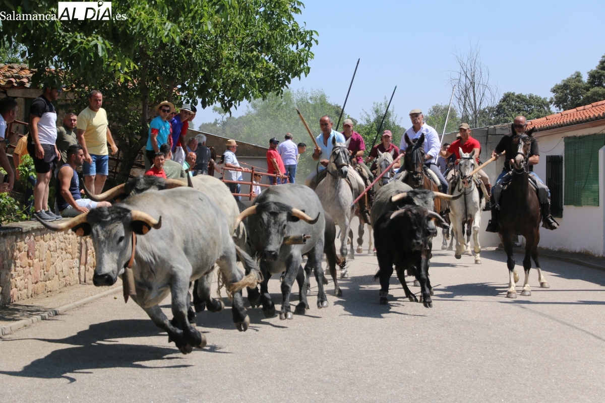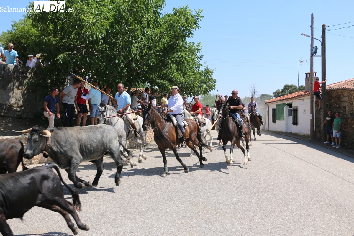 El encierro se desarrolló de manera puntual y en él participaron una docena de caballistas, además de cuatro mansos de la explotación local Ganaderos de Bogajo. Tanto los jinetes como los mansos de los hermanos Castro funcionaron como un equipo, lo que hizo que la manada se mantuviese agrupada a lo largo de todo el recorrido.