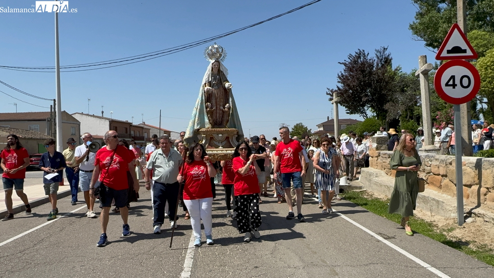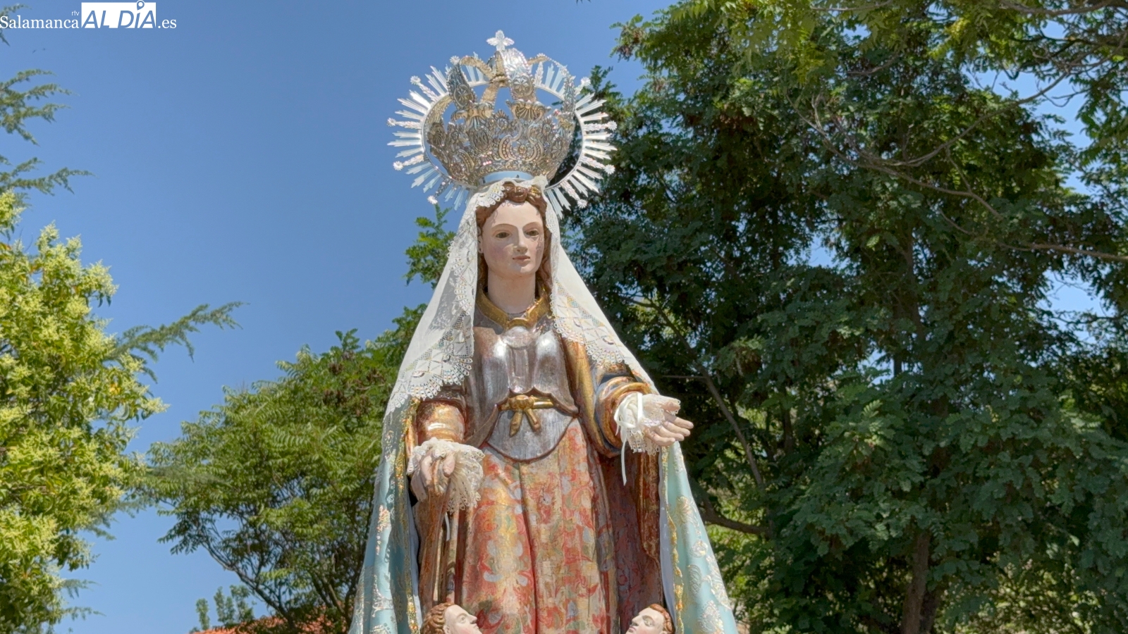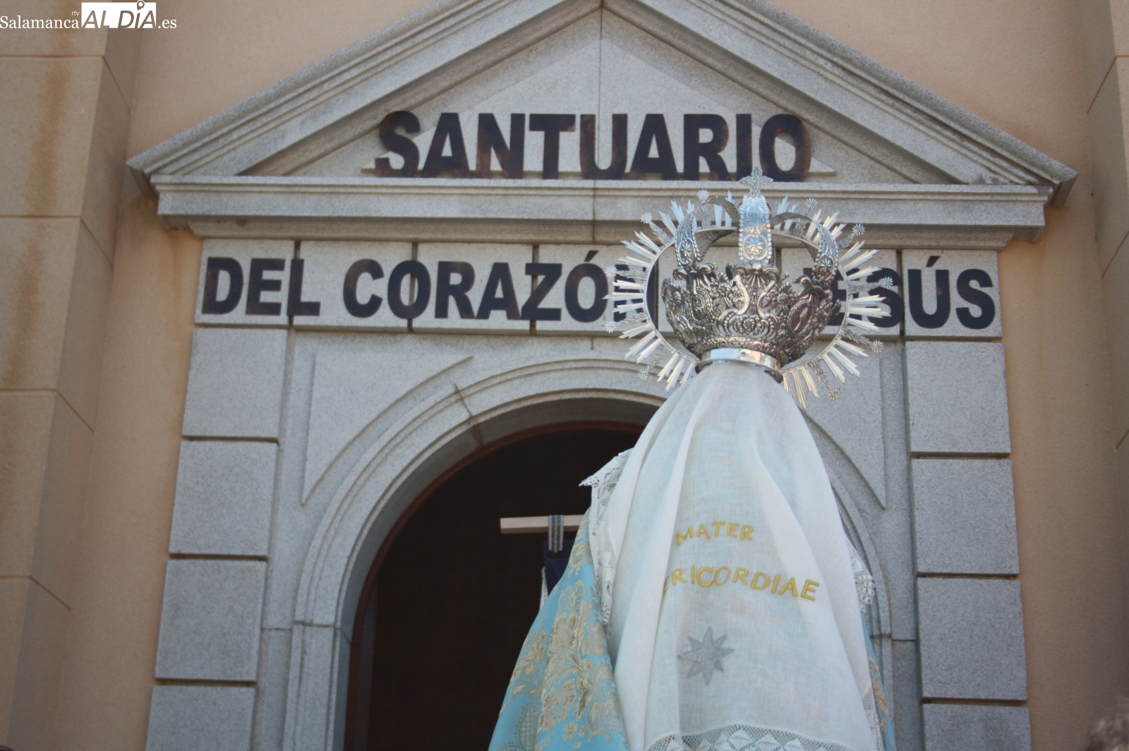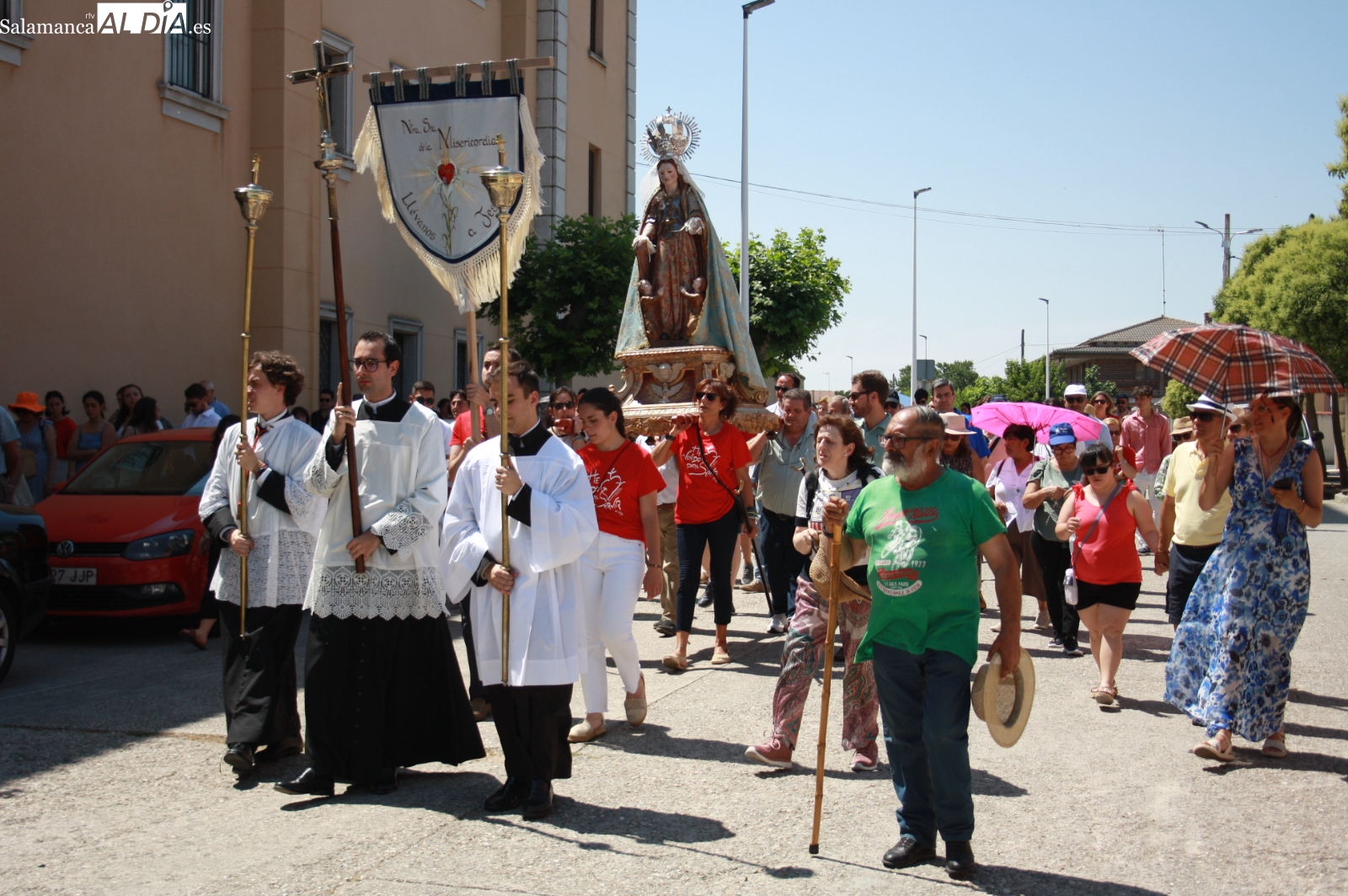 Varios cientos de personas han desafiado al calor en esta mañana de sábado y han participado en la esperada procesión de la Virgen de la Misericordia, patrona de Cantalapiedra, en un recorrido que ha llevado a la querida imagen desde su Ermita y hasta el Santuario del Corazón de Jesús, espacio de oración y gran riqueza artística, que desde este pasado viernes ya es oficialmente una realidad.