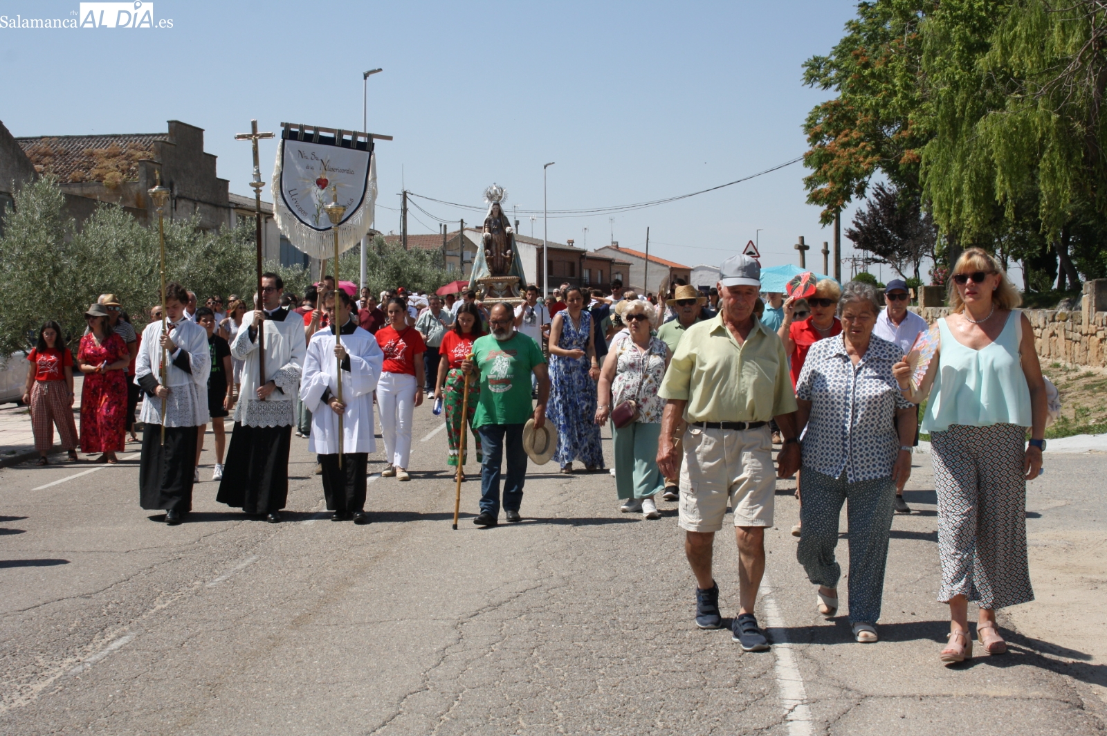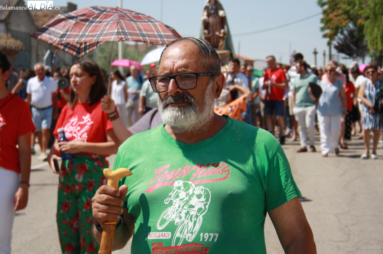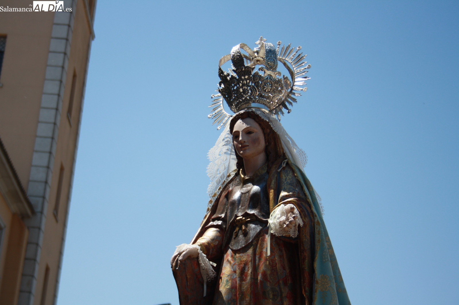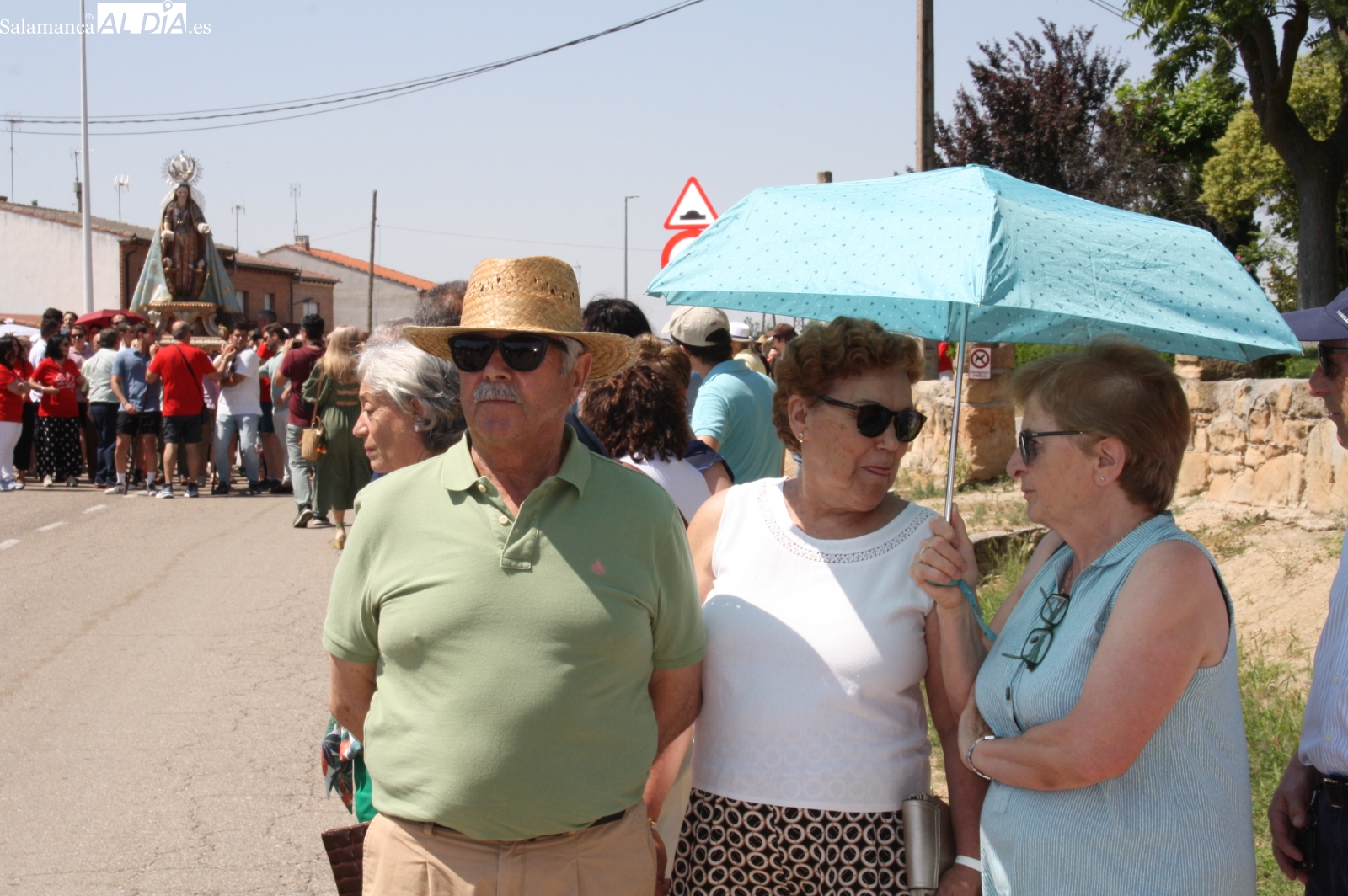 Varios cientos de personas han desafiado al calor en esta mañana de sábado y han participado en la esperada procesión de la Virgen de la Misericordia, patrona de Cantalapiedra, en un recorrido que ha llevado a la querida imagen desde su Ermita y hasta el Santuario del Corazón de Jesús, espacio de oración y gran riqueza artística, que desde este pasado viernes ya es oficialmente una realidad.