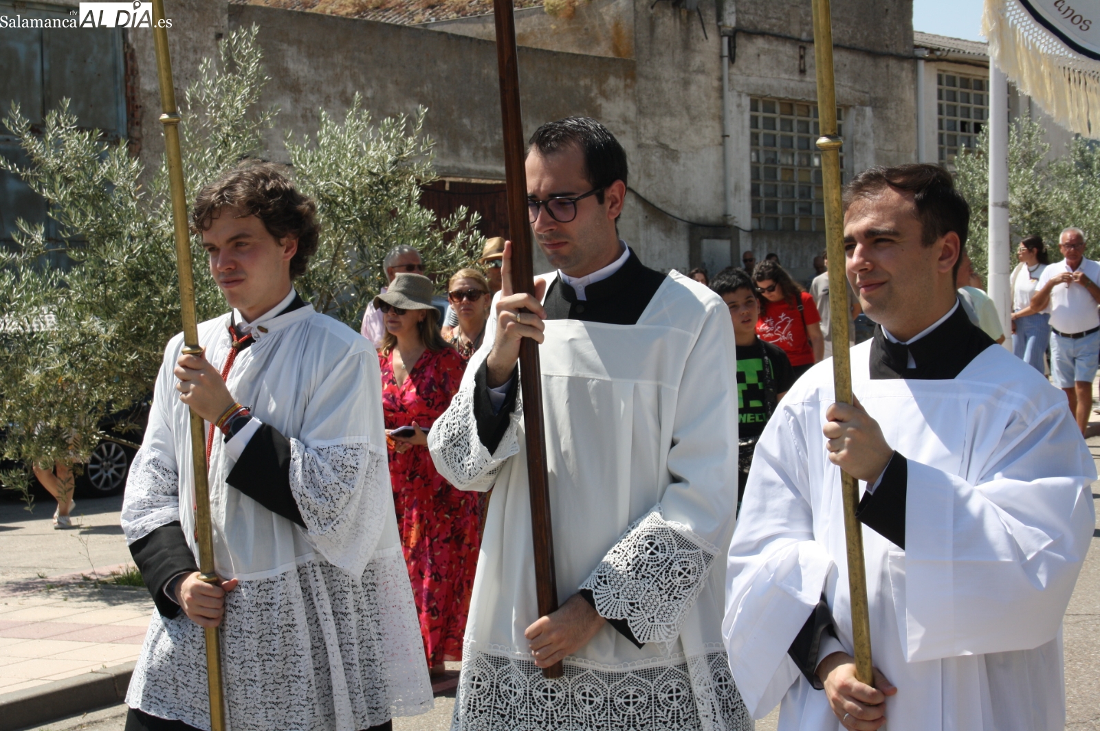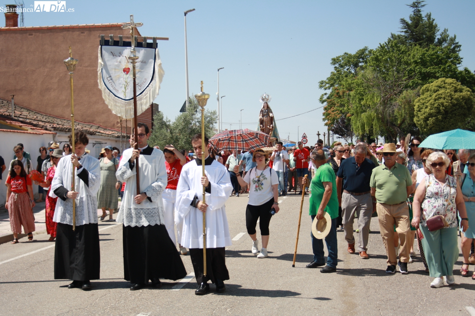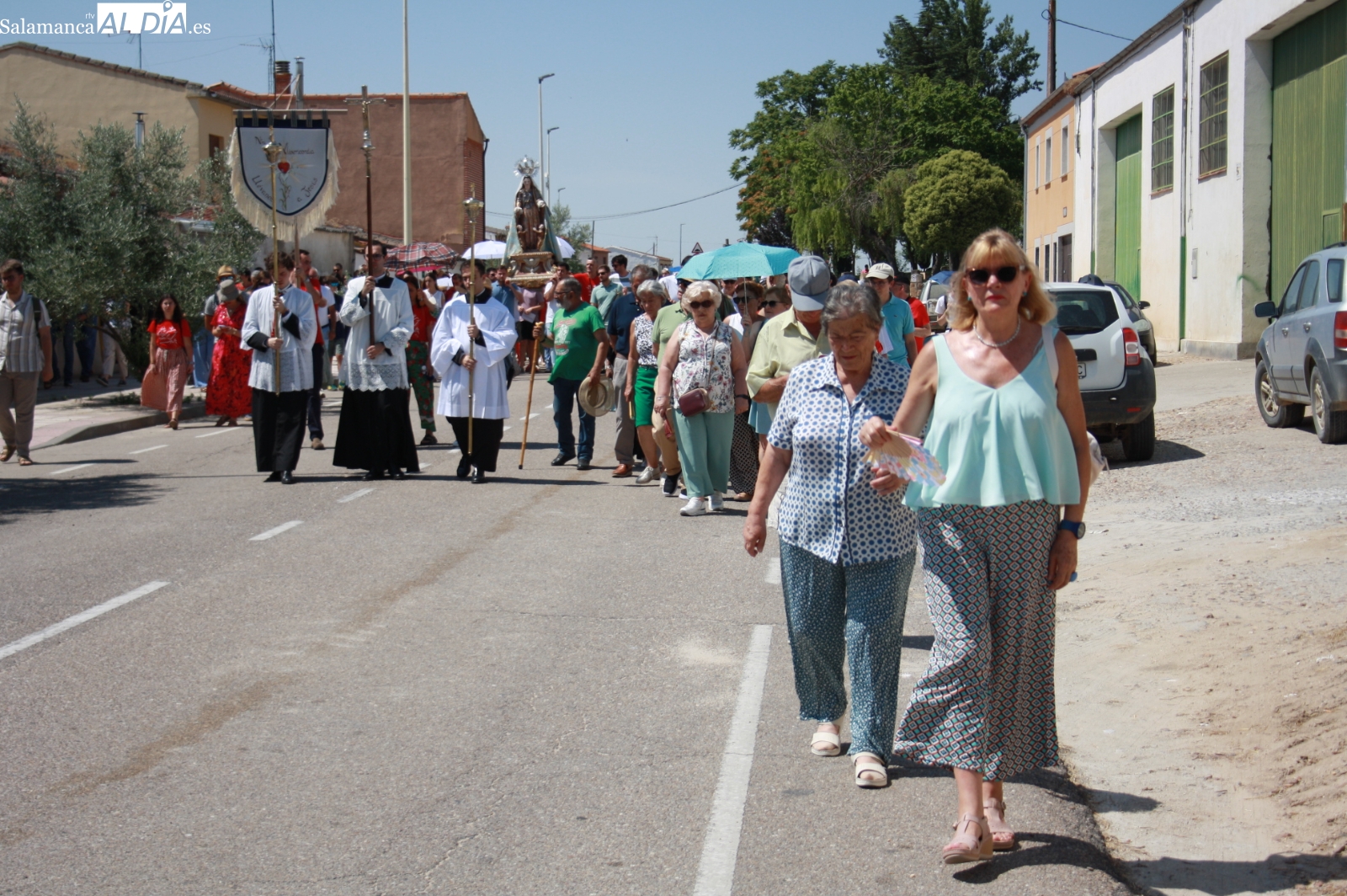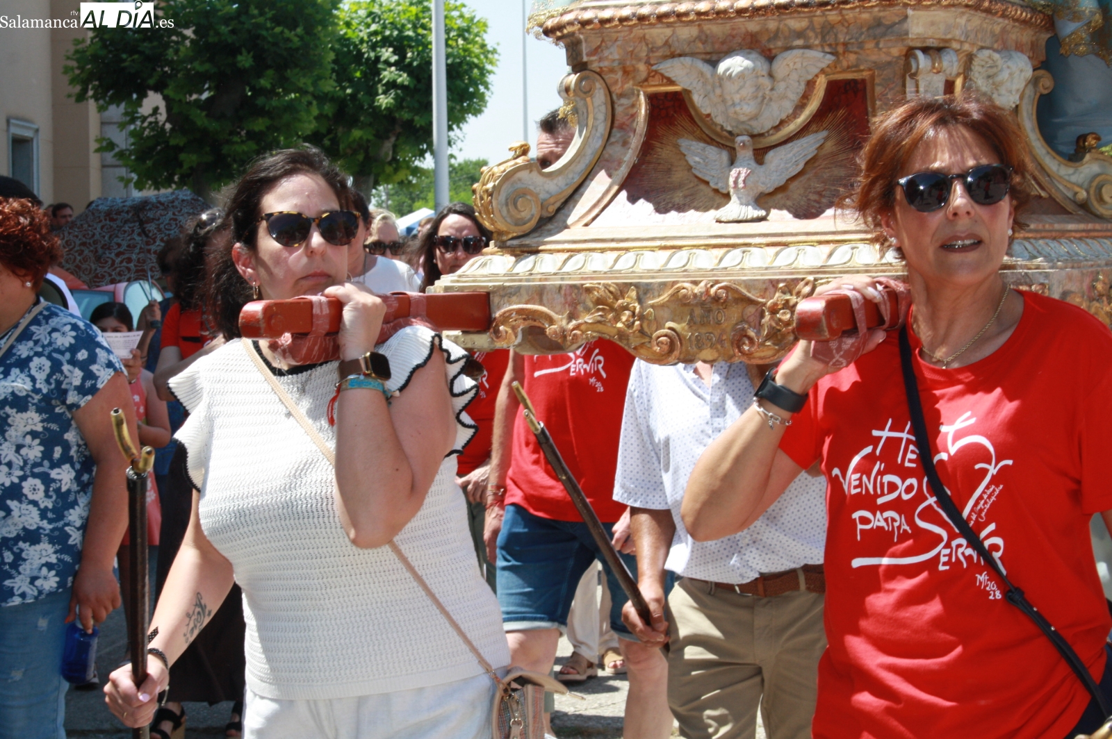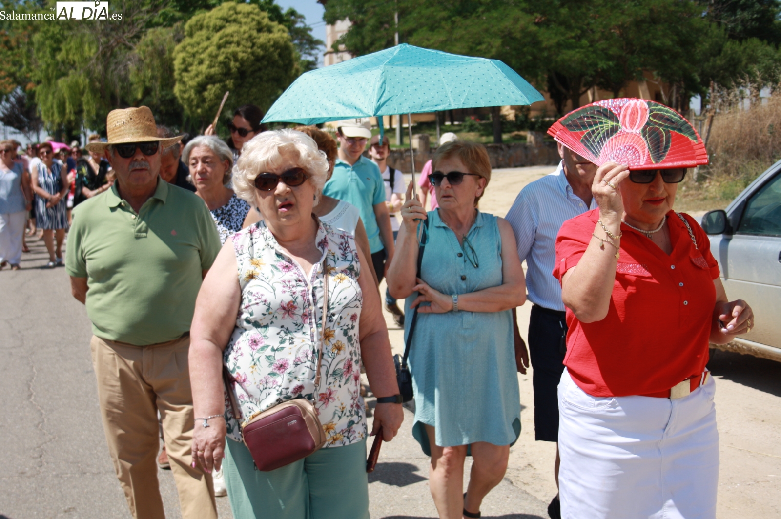 Varios cientos de personas han desafiado al calor en esta mañana de sábado y han participado en la esperada procesión de la Virgen de la Misericordia, patrona de Cantalapiedra, en un recorrido que ha llevado a la querida imagen desde su Ermita y hasta el Santuario del Corazón de Jesús, espacio de oración y gran riqueza artística, que desde este pasado viernes ya es oficialmente una realidad.