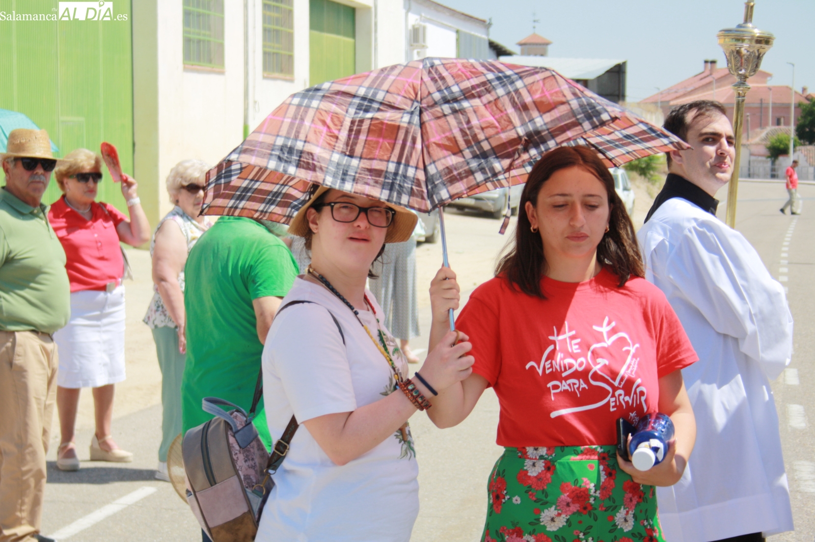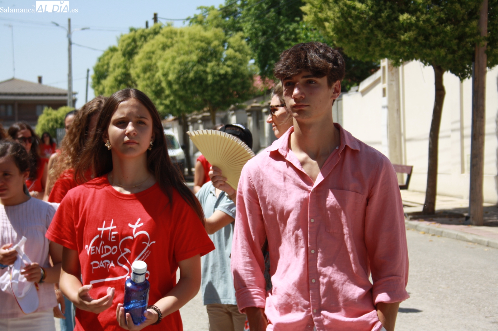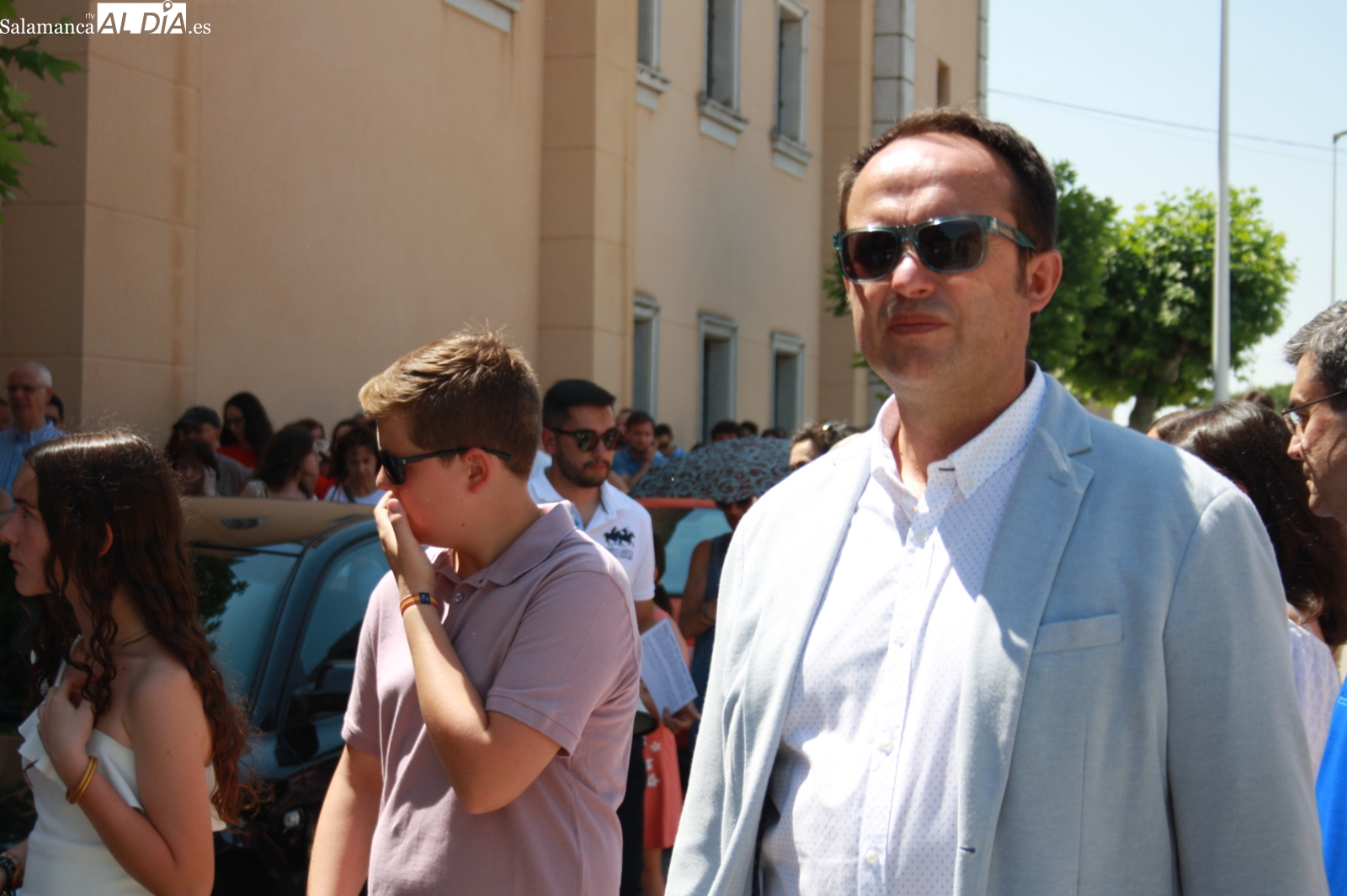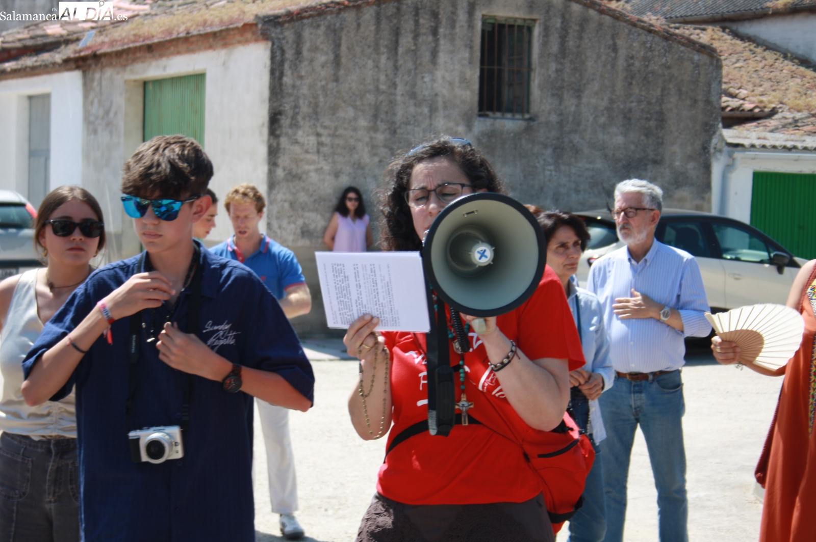 Varios cientos de personas han desafiado al calor en esta mañana de sábado y han participado en la esperada procesión de la Virgen de la Misericordia, patrona de Cantalapiedra, en un recorrido que ha llevado a la querida imagen desde su Ermita y hasta el Santuario del Corazón de Jesús, espacio de oración y gran riqueza artística, que desde este pasado viernes ya es oficialmente una realidad.